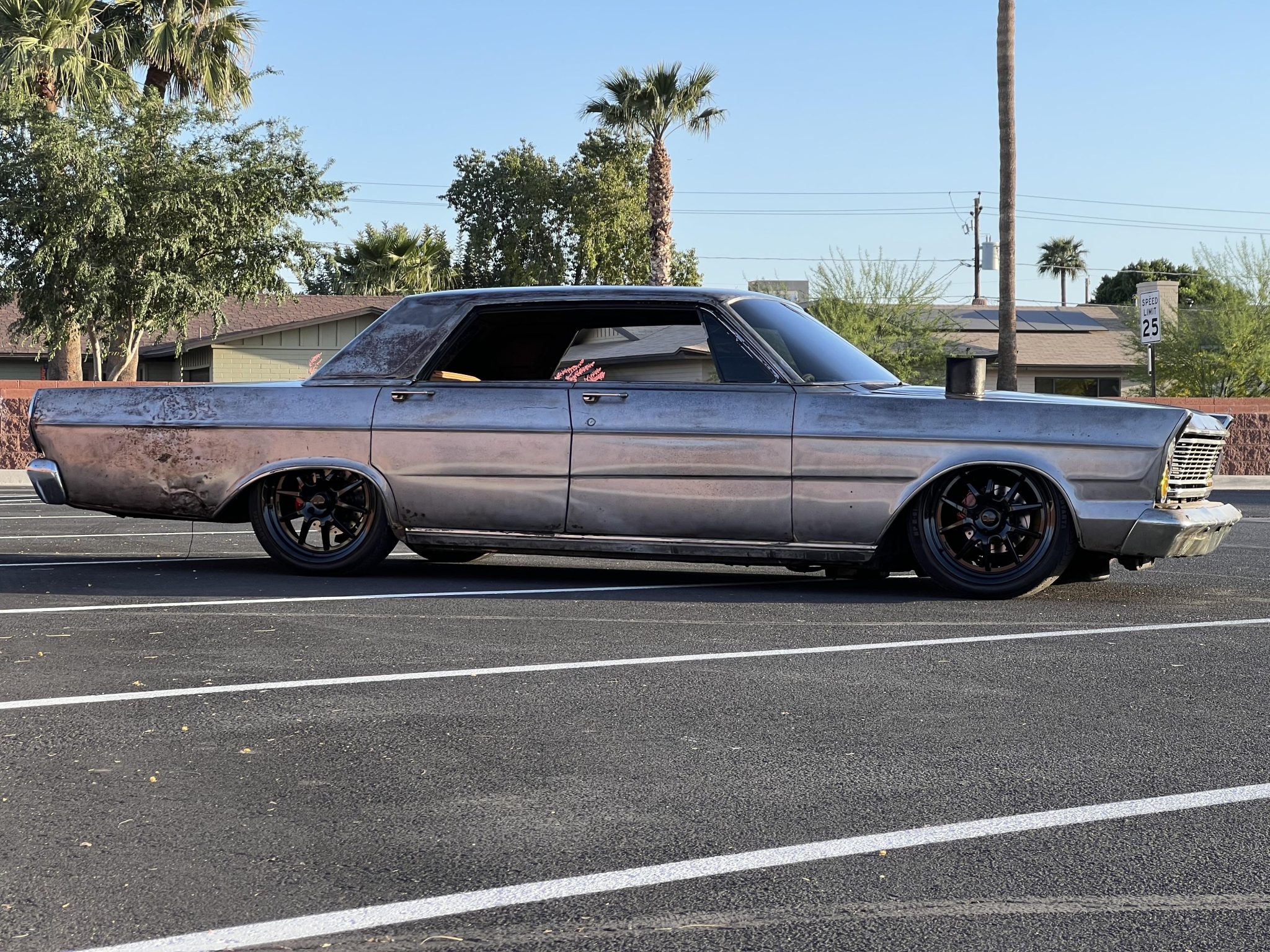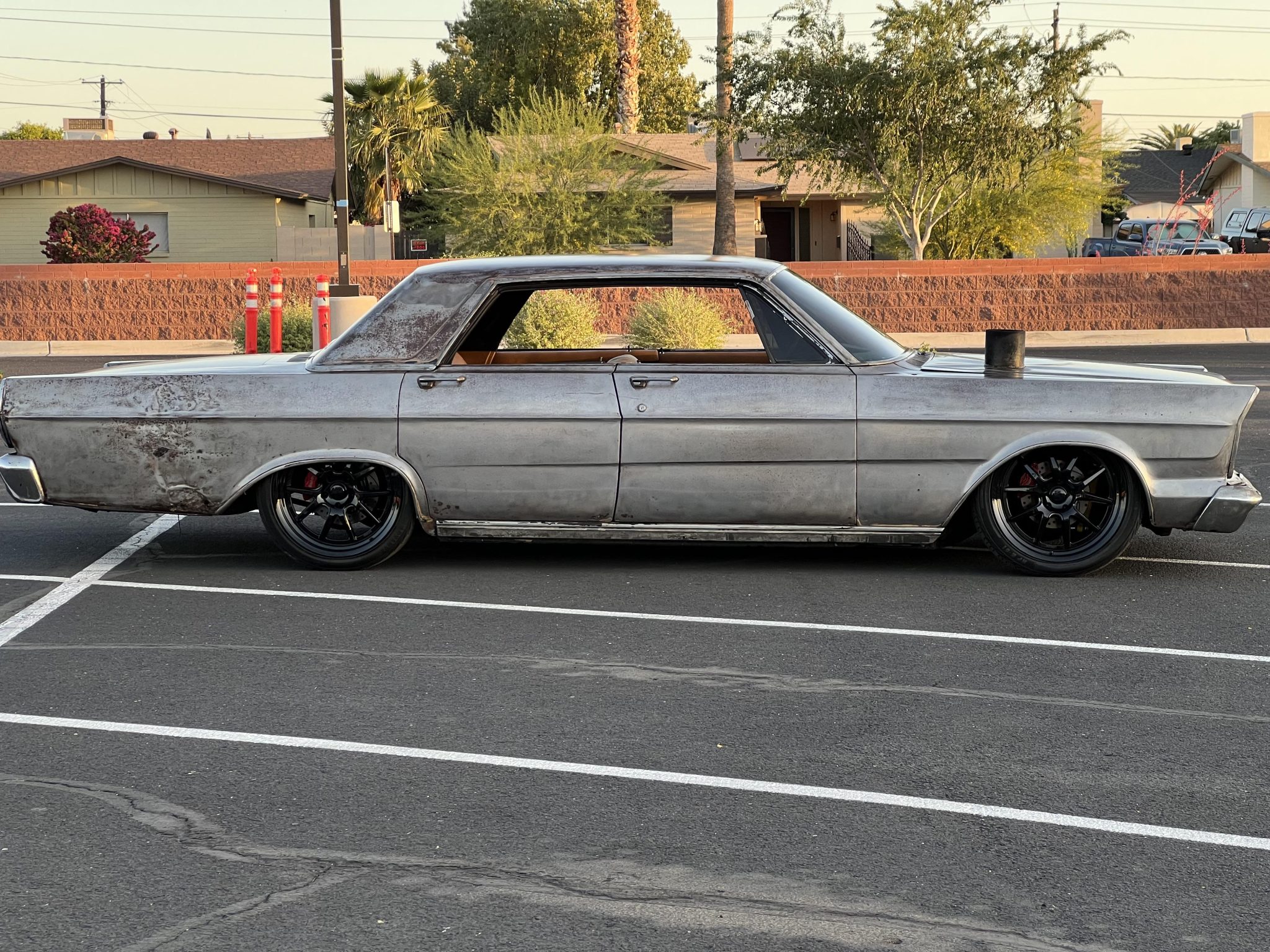 Black-finished 20″ Rocket Racing wheels are mounted with 245/40 Advanta HPZ-01 tires and are said to have been installed under current ownership. Equipment includes Wilwood disc brakes with red-finished calipers and crossed-drilled and slotted rotors at all four corners. An Air Lift air suspension works in conjunction with Hotchkis upper and lower front control arms, three-way-adjustable Competition Engineering rear shocks, and a TRZ Motorsports anti-roll bar.