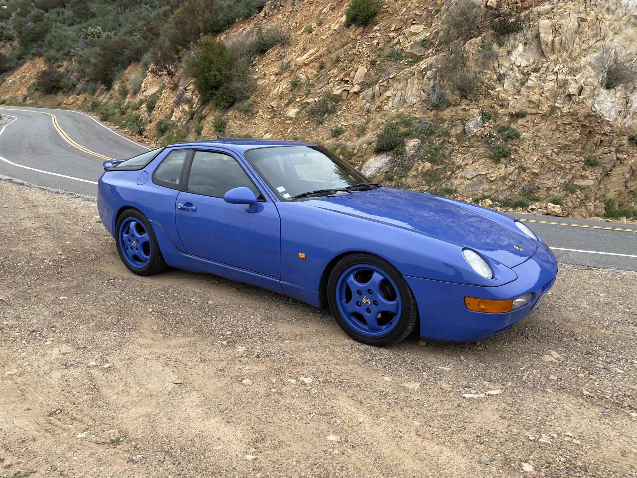 Body-color 17″ Cup wheels are mounted with 225/45 Bridgestone S001 front and 255/40 Bridgestone S-02A rear tires. KW adjustable coilovers were installed under previous ownership. Stopping power is provided by four-wheel disc brakes with black Porsche-branded calipers at each corner.