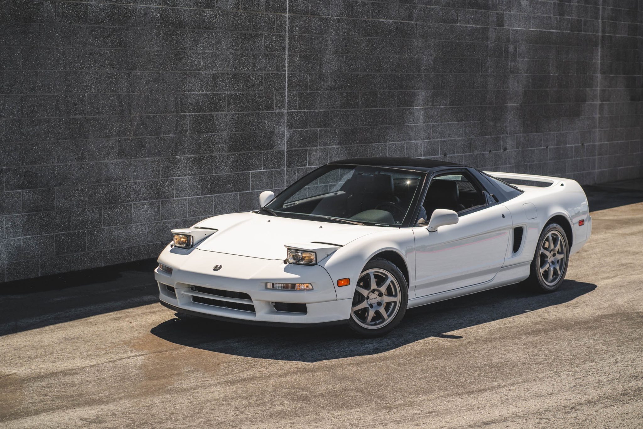 Staggered-diameter 16” and 17” seven-spoke aluminum wheels are mounted with BFGoodrich g-Force Rival tires showing 2017 and 2018 date codes and measuring 215/45 up front and 245/40 at the rear. The car features a four-wheel double-wishbone suspension with front and rear stabilizer bars, and braking is handled by NSX-branded calipers over vented rotors at each corner. Replacement clutch hydraulic cylinders were fitted in June 2021. The seller notes the spare tire is missing.