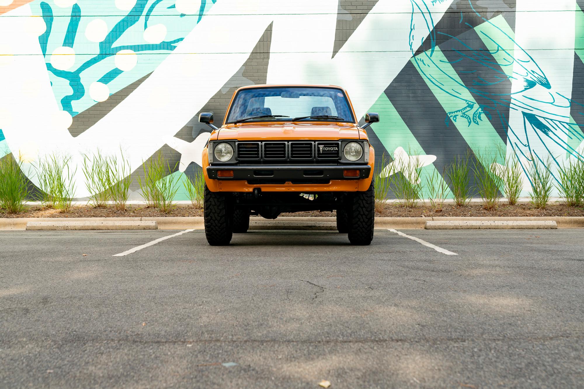 Alloy 16″ wheels are mounted with 235/85 Toyo Open Country M/T tires. The truck is equipped with manually locking front hubs, and stopping power is provided by front disc and rear drum brakes.