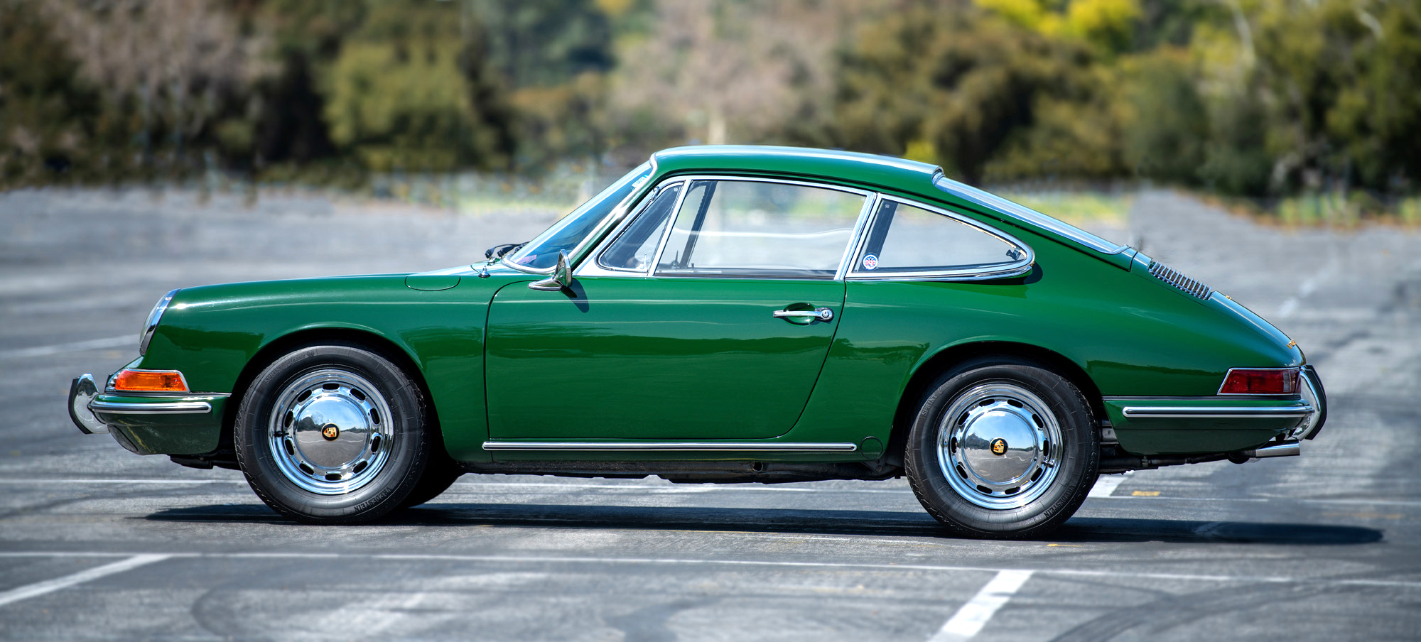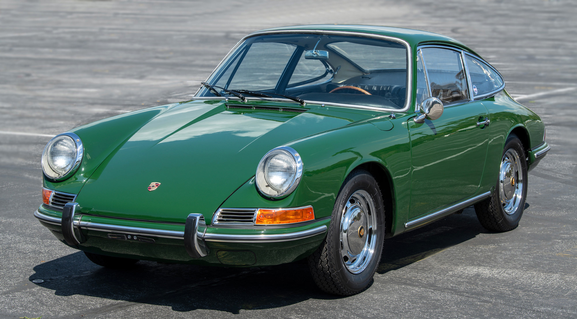 Chrome 15″ steel wheels wear hubcaps with Porsche crests and are mounted with 165-width Vredestein Sprint Classic tires. Braking is handled by four-wheel discs, which were serviced approximately 2k miles ago in 2007. The control arm bushings were reportedly replaced within the past year.