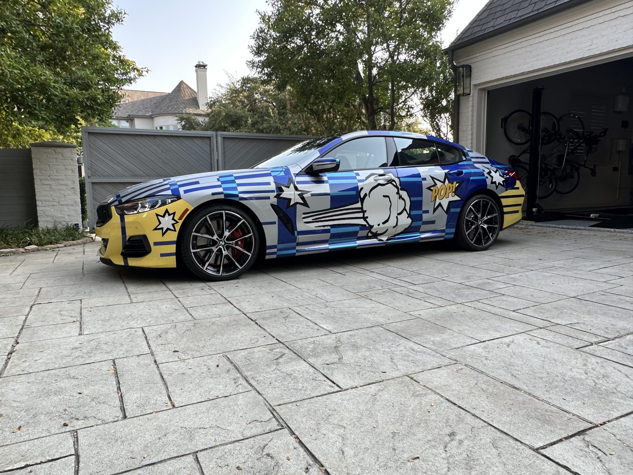 Style 728M 20″ V-spoke wheels are mounted with 245/35 front and 275/30 rear Pirelli P Zero tires. Braking is from four-wheel ventilated discs with red calipers, Dynamic Brake Control, and Cornering Brake Control. The car’s Adaptive M Suspension Pro features Active Roll Stabilization, and additional driving aids include stability and traction control.