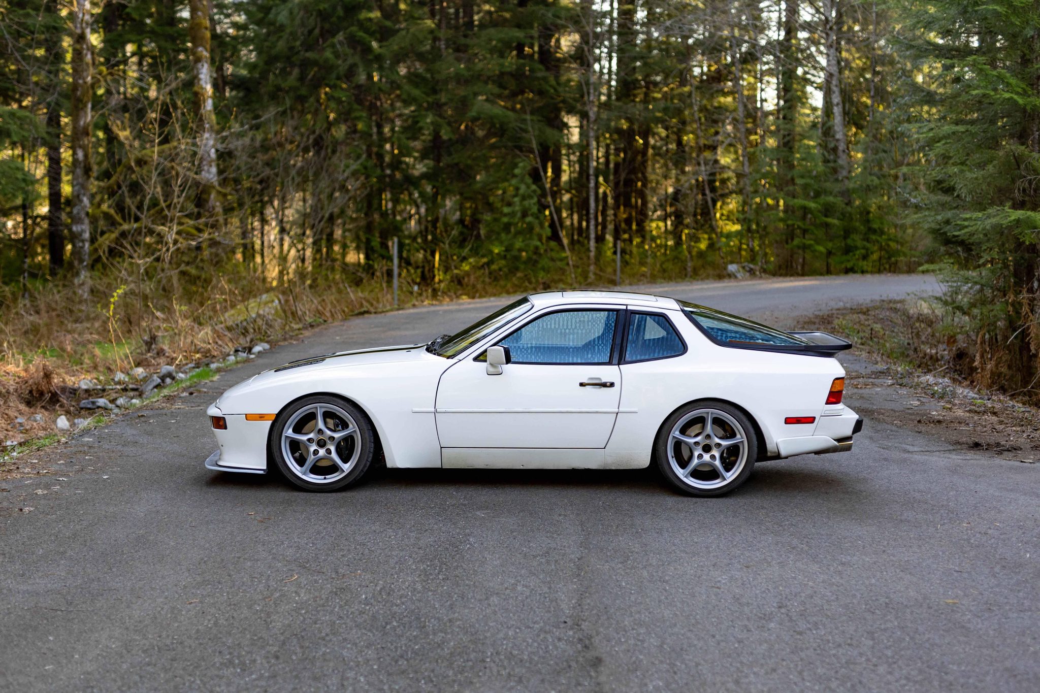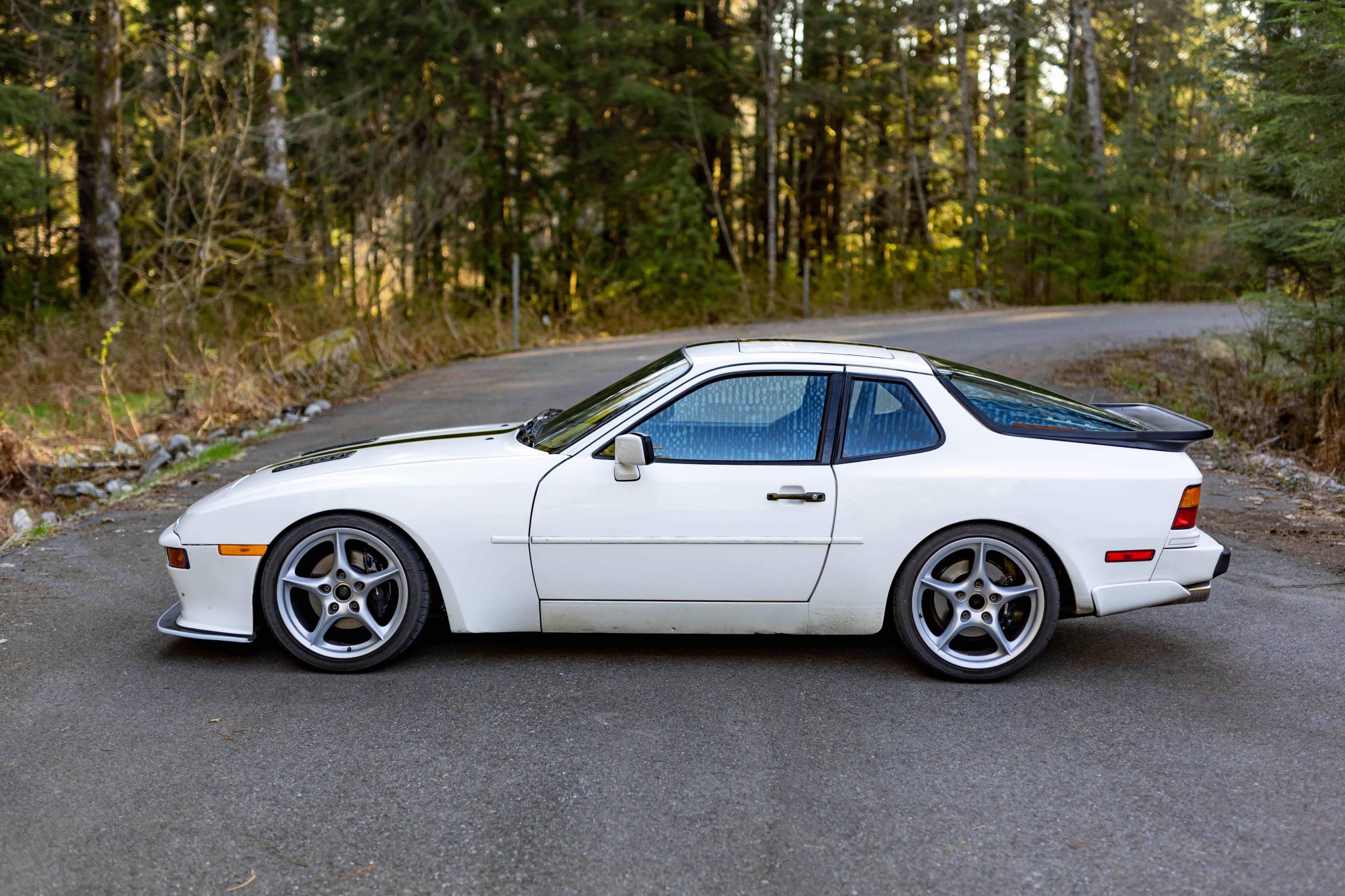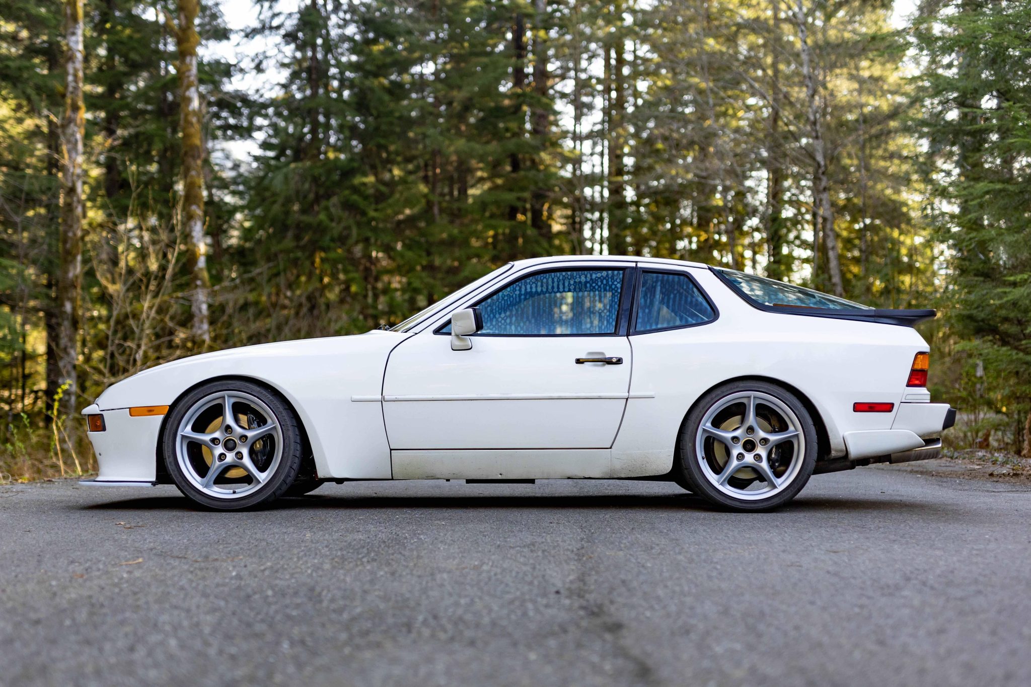 Silver-finished 18″ Carrera II wheels show curb rash and corrosion and are mounted with 225/40 front and 285/30 rear Bridgestone Potenza RE-11 tires. Stopping power is from four-wheel disc brakes that have been fitted with Carbotech brake pads. The steering rack was overhauled in 2021, and suspension modifications include the following components:
