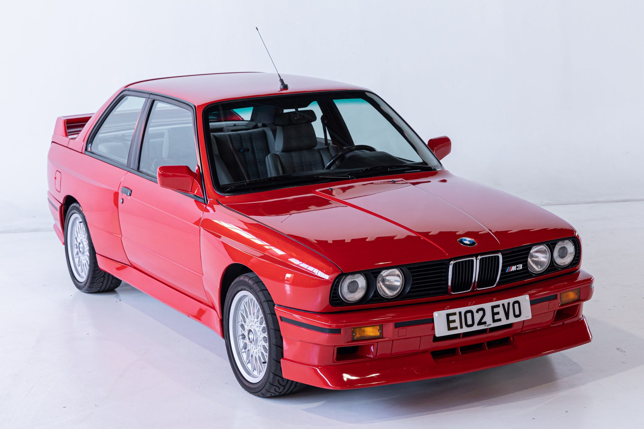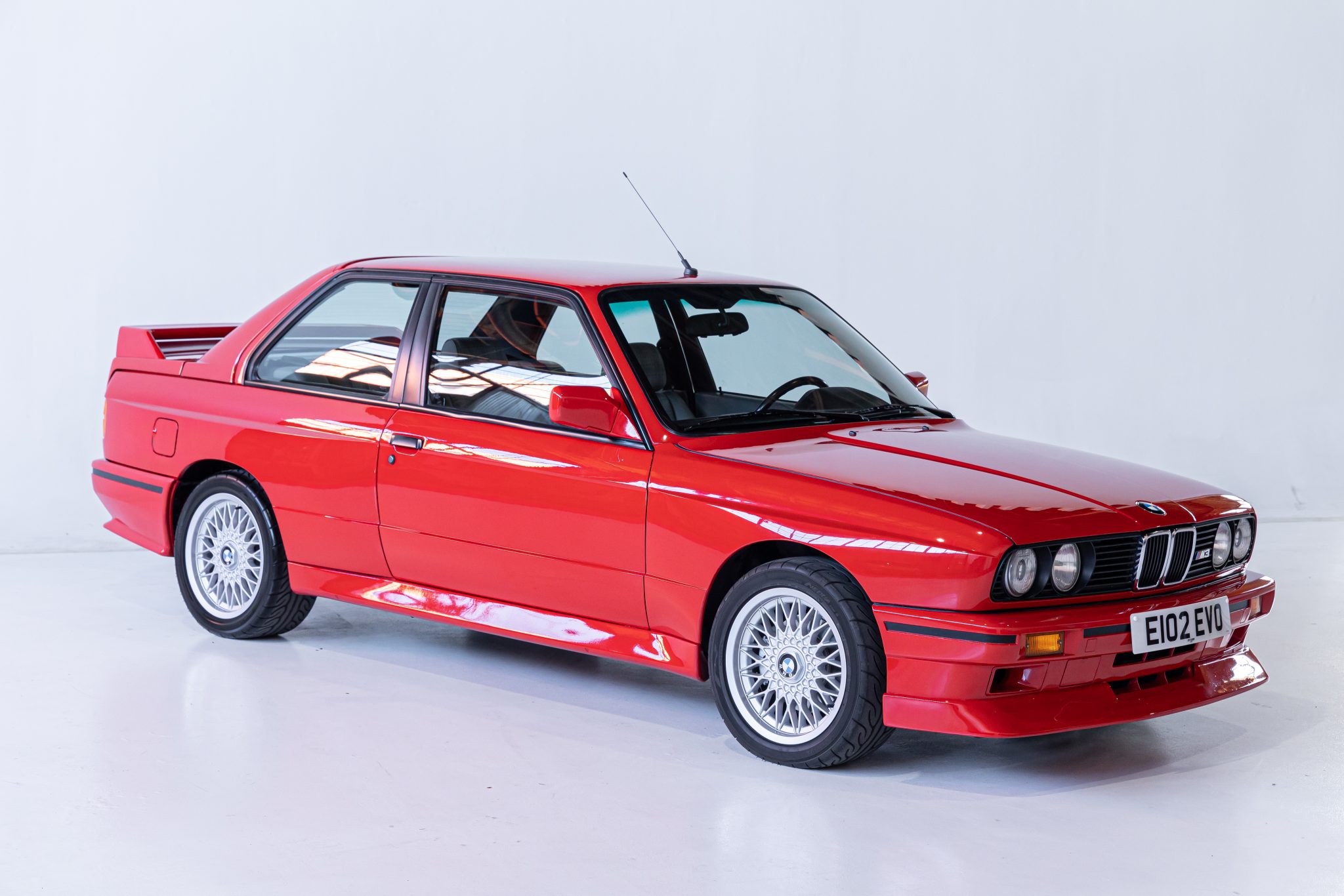 The 16″ basketweave wheels feature BMW-roundel center caps and are mounted with 225/45 Yokohama Neova tires. Factory equipment included sport springs, thicker anti-roll bars, and a revised steering caster angle versus the contemporary E30. The four-wheel disc brakes were overhauled prior to importation with rebuilt calipers and replacement discs and pads, according to the selling dealer.
