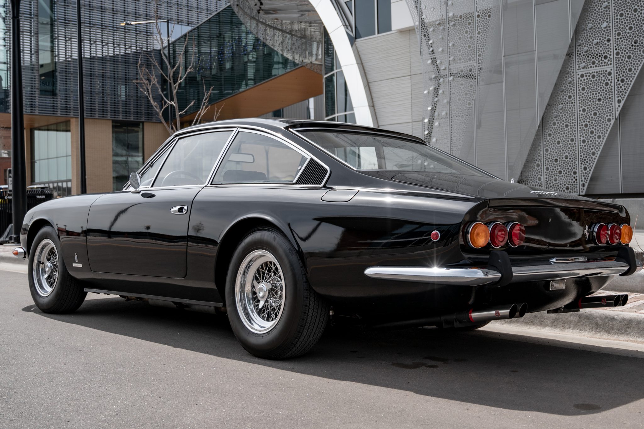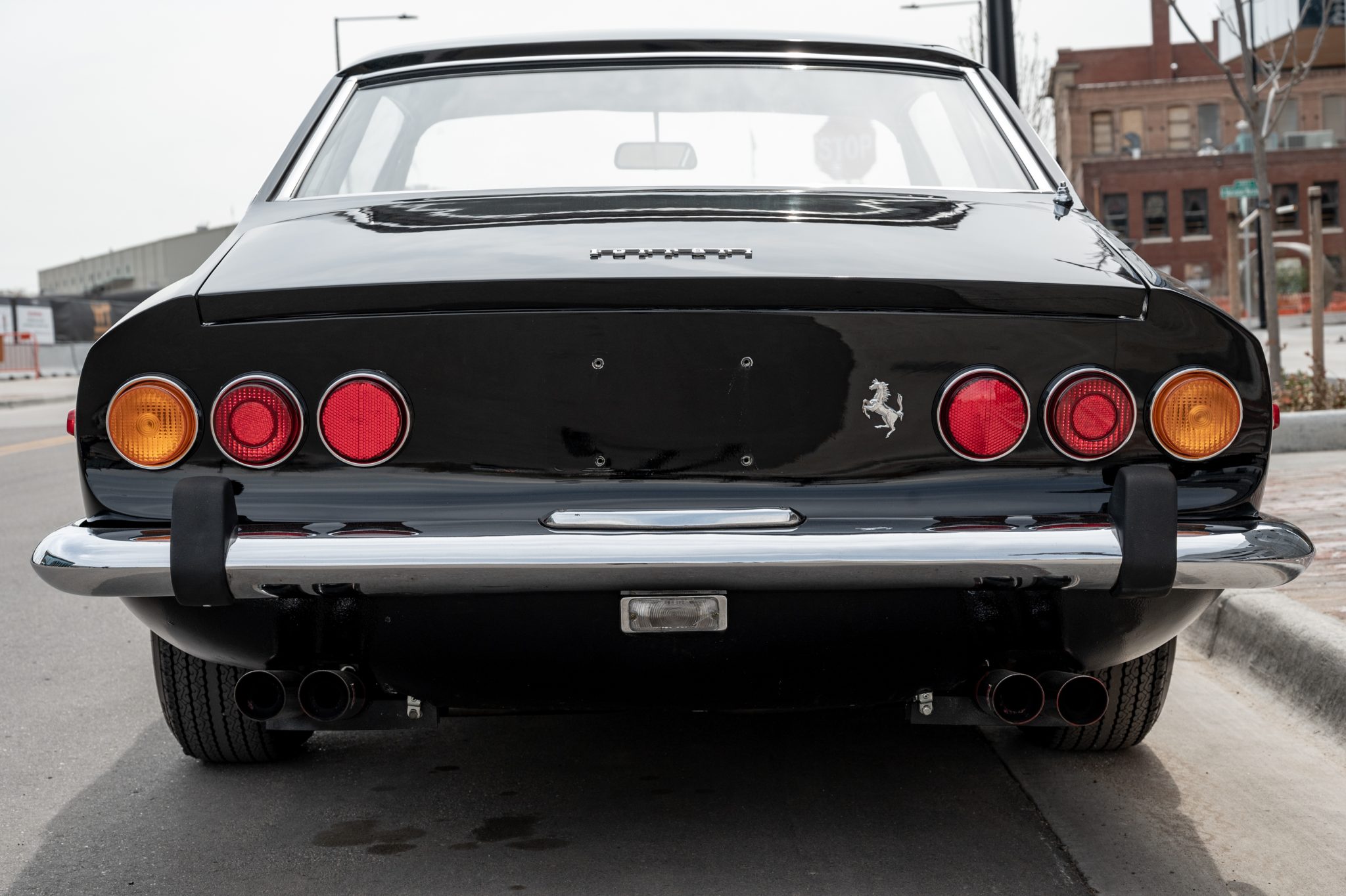 The rectangular taillight bezels were deleted during the work by Brian Moore Restorations, and the rear panel was modified to allow the rear lighting to be mounted directly into the bodywork. Chrome brightwork was re-plated and aluminum and stainless-steel trim was straightened and polished by Classic Chrome in Sacramento during the project.