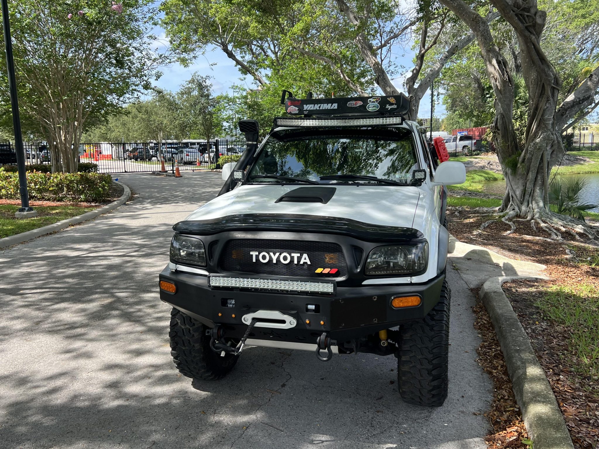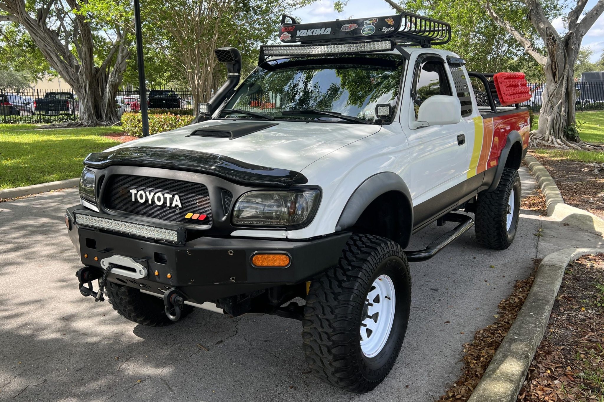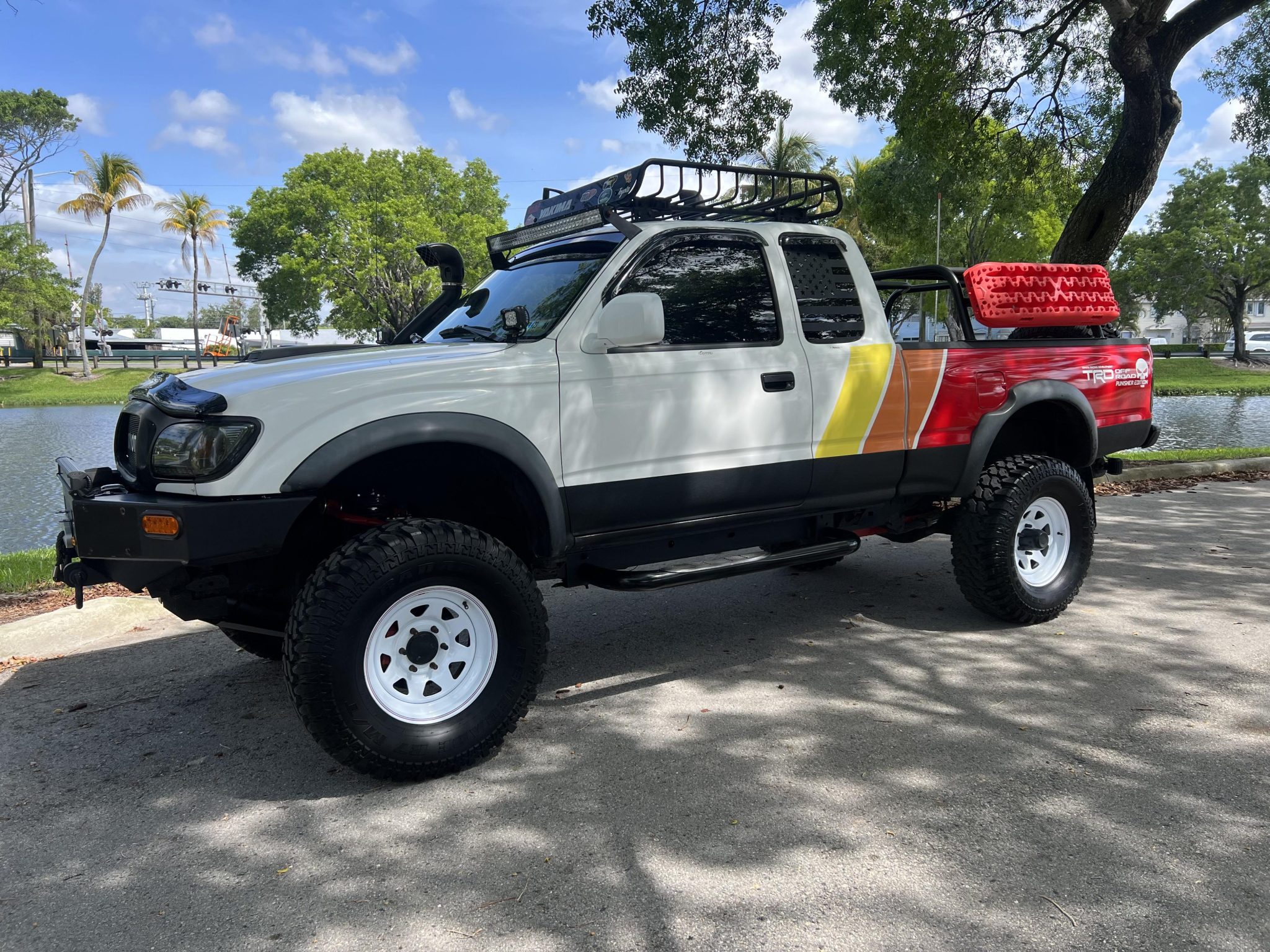 White-finished 16” steel wheels wear 285/75 Radar Renegade R7 M/T tires, and a matching spare is mounted to a rear carrier. Braking is handled by front discs and rear drums. The truck is equipped with a 3″ body lift and rides on an Old Man Emu 3″ suspension lift kit featuring Skyjacker shocks in addition to JBA front upper control arms.
