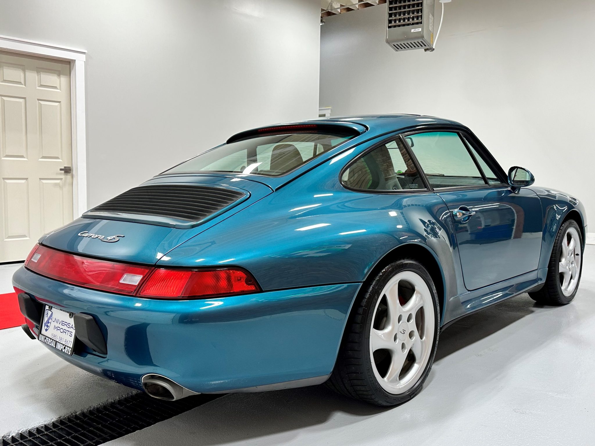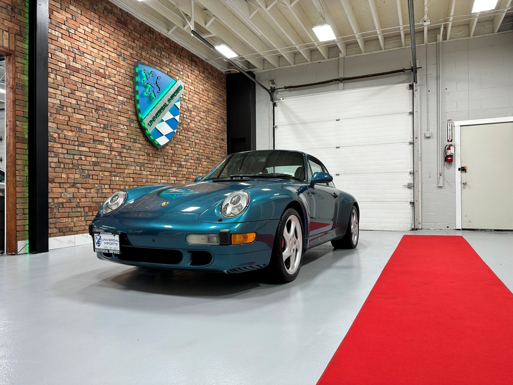 The 18″ Turbo Twist wheels are mounted with Michelin Pilot Sport A/S 3+ tires up front and Michelin Pilot Sport N3 tires out back. The car features an Automatic Brake Differential (ABD), and the 993 was the first 911 to feature multi-link rear suspension. Braking is handled by red-finished Porsche-branded calipers over cross-drilled rotors at all four corners.