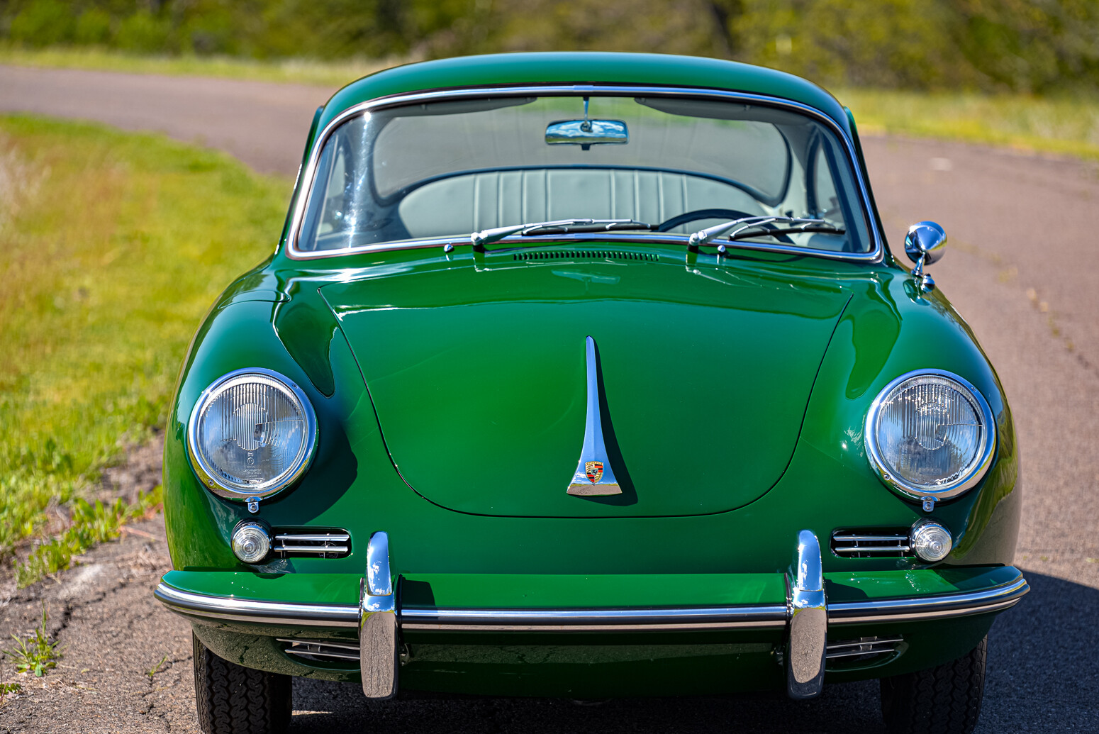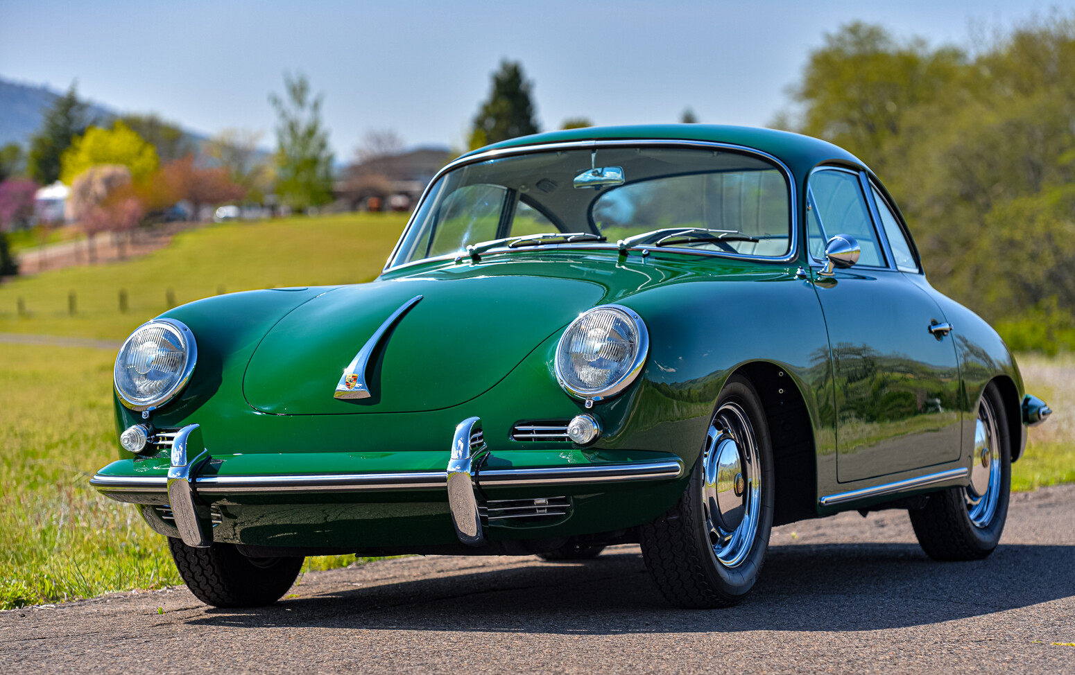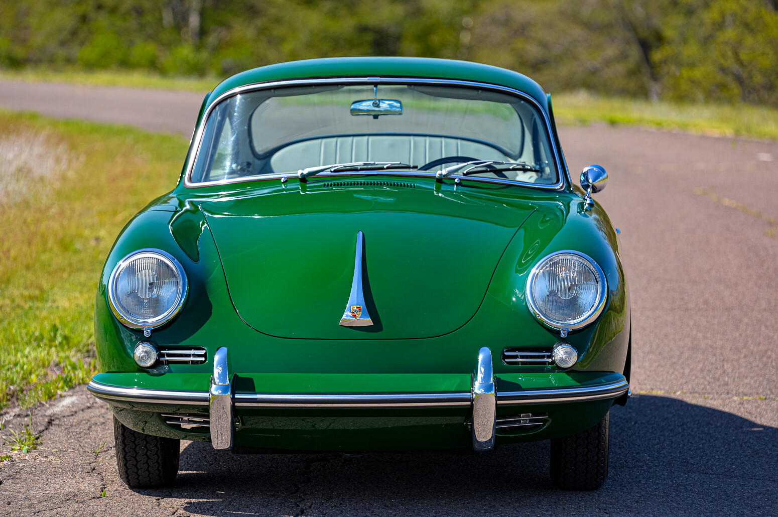 Chrome-finished 15″ steel wheels wear bright hubcaps and are mounted with 165-series Vredestein Sprint Classic tires. Braking is handled by four-wheel discs, and braking components were reportedly replaced during the refurbishment completed under prior ownership. The car has been fitted with Sachs dampers.