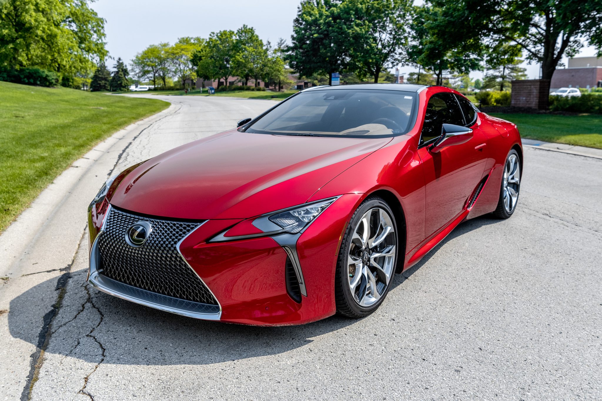 Optional 21″ forged wheels are mounted with Pirelli Winter Sottozero 3 tires that measure 245/40 up front and 275/35 out back. The LC500 rides on a multilink Adaptive Variable Suspension with selectable drive modes, and this example was optioned with active rear steering and Variable Gear Ratio Steering. The brakes are equipped with six-piston front and four-piston rear Lexus-branded calipers. The brake fluid was flushed in July 2022.
