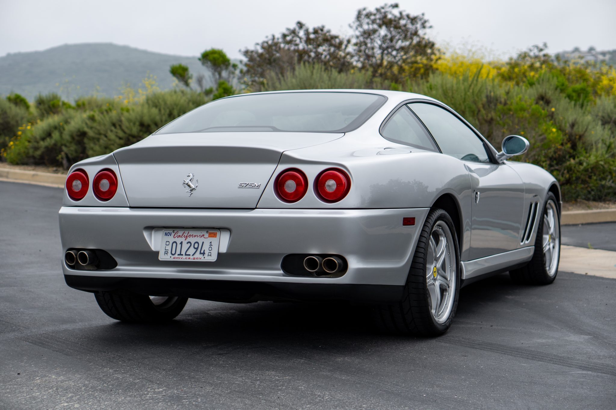 The 19″ multi-piece alloy wheels are mounted with Pirelli P Zero tires. Braking is handled by red-finished Ferrari-branded calipers over cross-drilled and ventilated rotors at all four corners. The 575M featured a Skyhook suspension system with adaptive dampers.