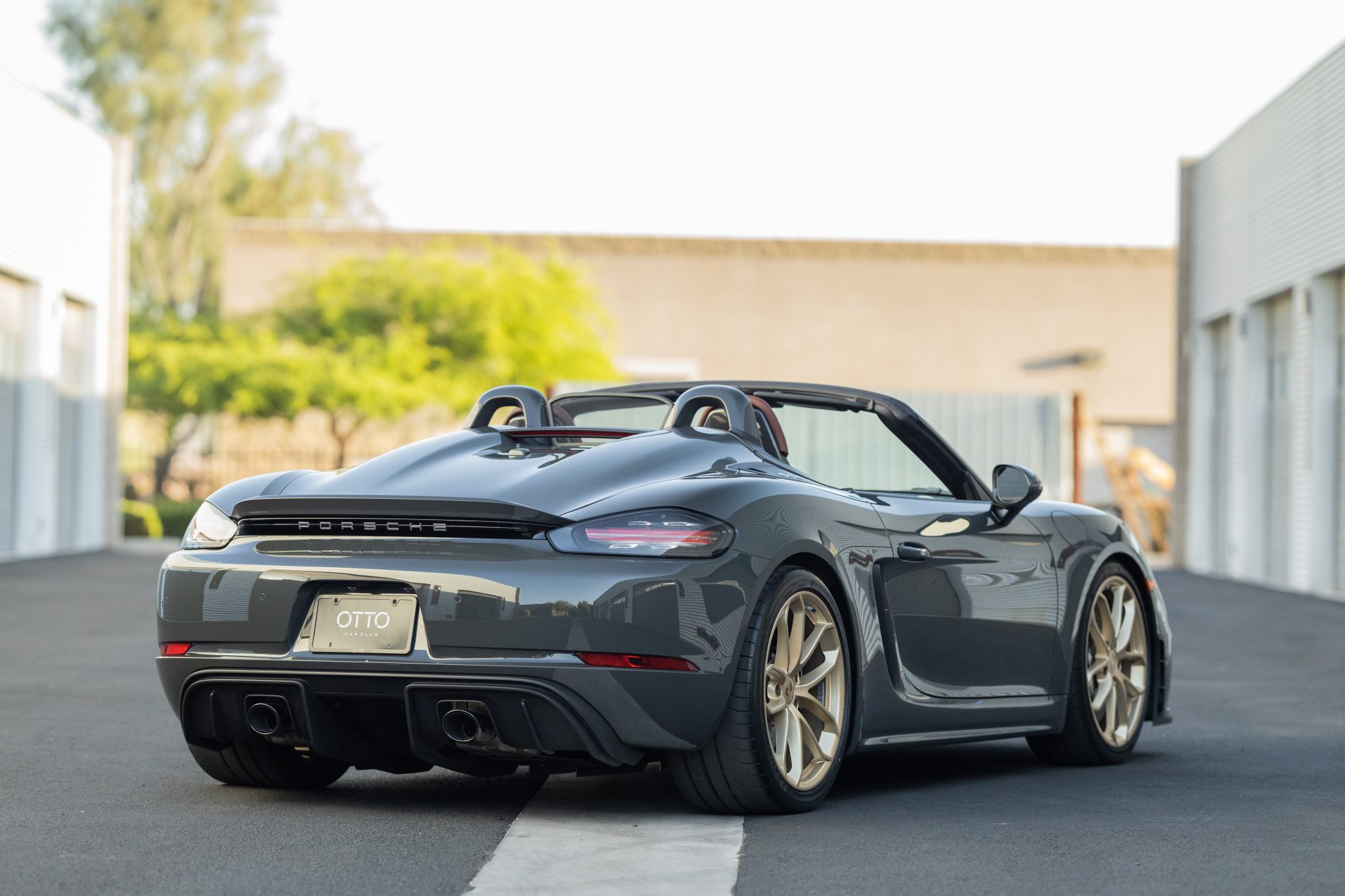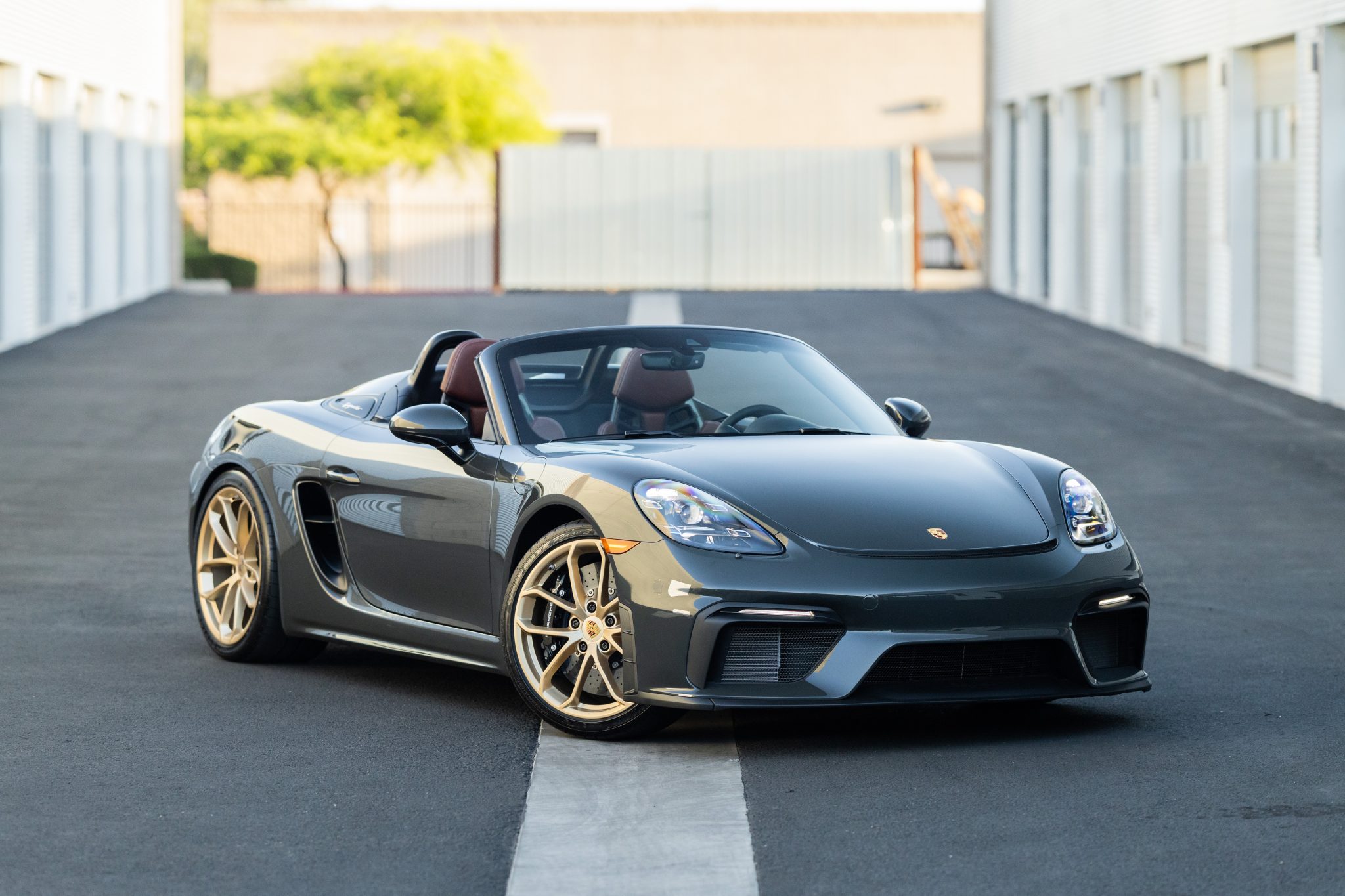 The 20″ Spyder wheels were reportedly painted in gold at the time of the owner’s acquisition and are mounted with Dunlop Sport Maxx Race 2 tires measuring 245/35 up front and 295/30 out back. Stopping power is provided by Porsche Ceramic-Composite Brakes (PCCB) with gloss black calipers. The car is equipped with Porsche Active Suspension Management (PASM).