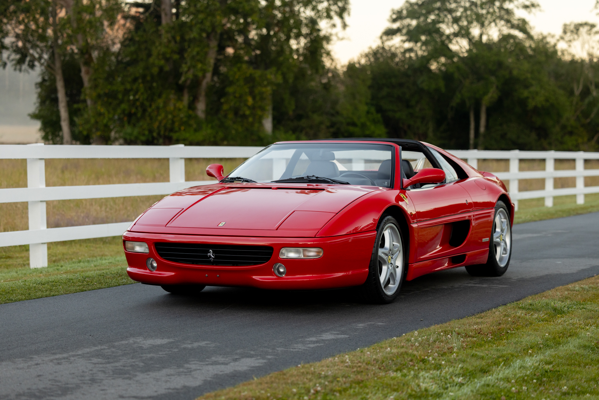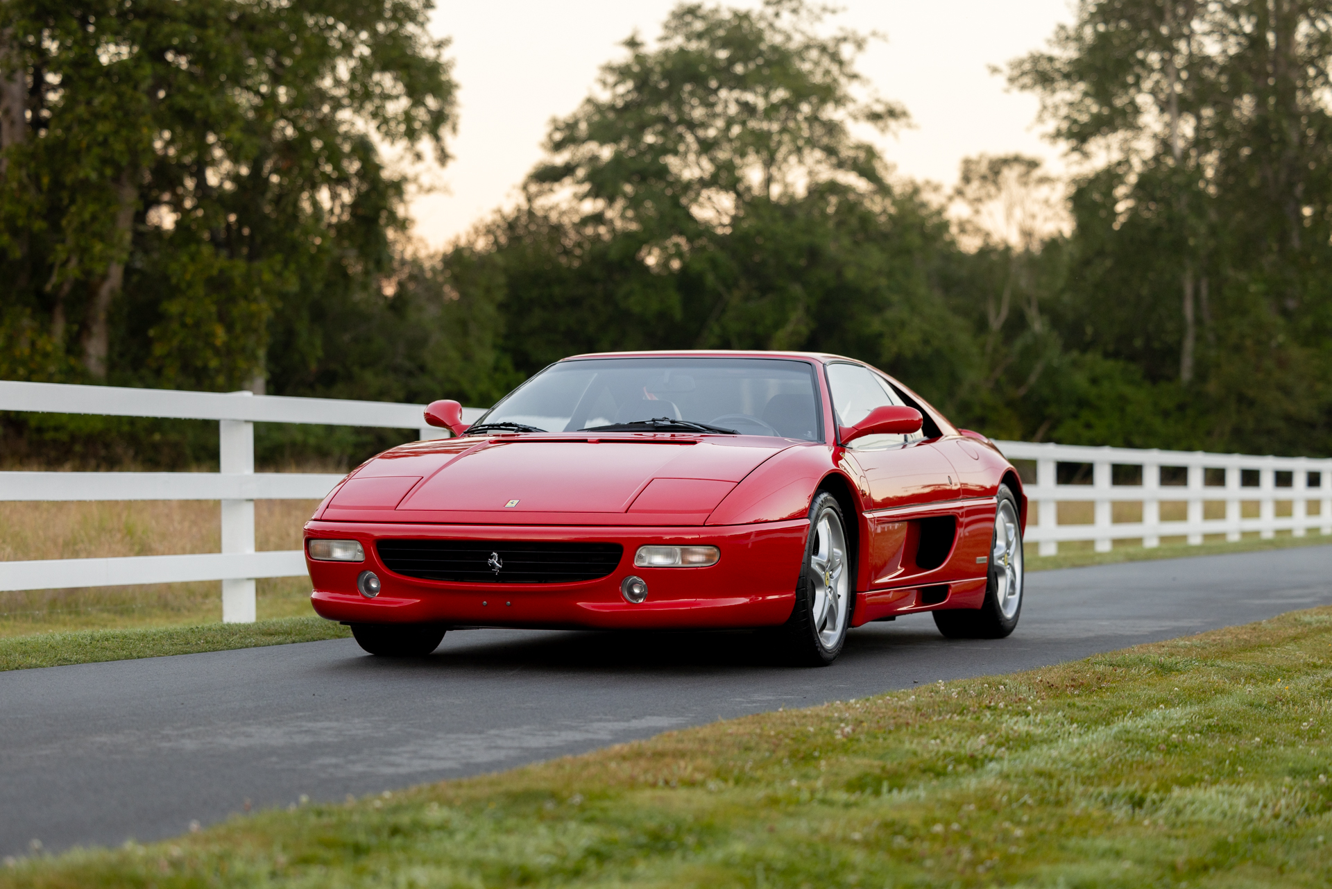 The 18″ five-spoke magnesium wheels are mounted with Michelin Pilot Super Sport tires that show date codes from 2021. Ferrari-branded brake calipers are mounted over ventilated discs at each corner.