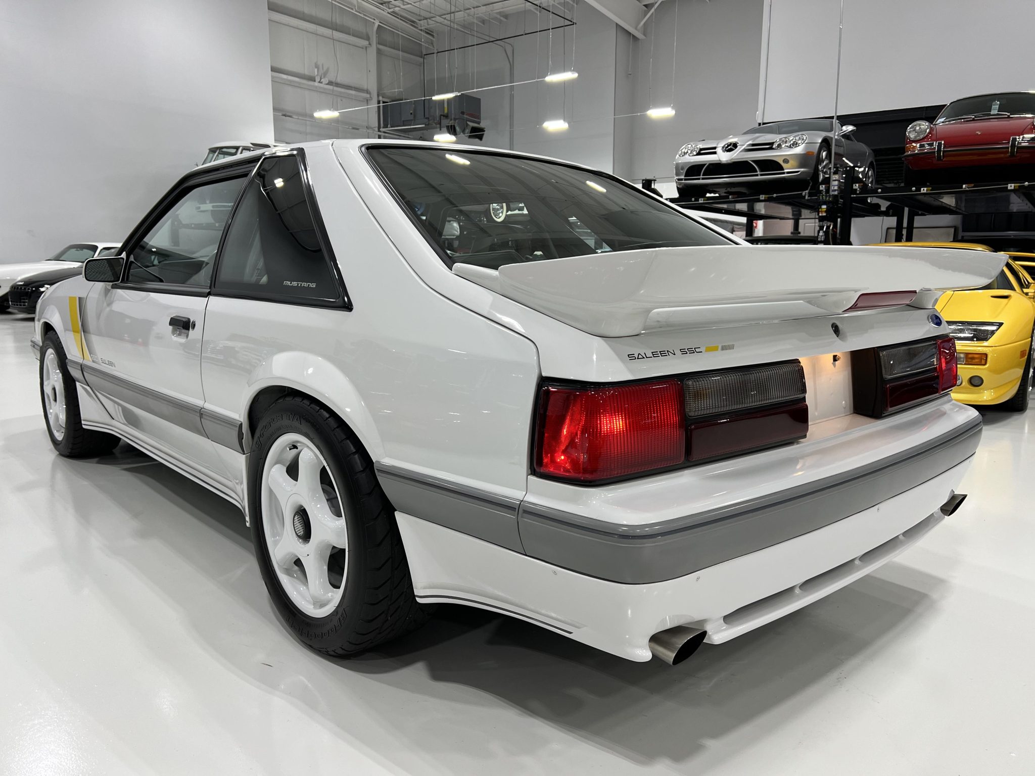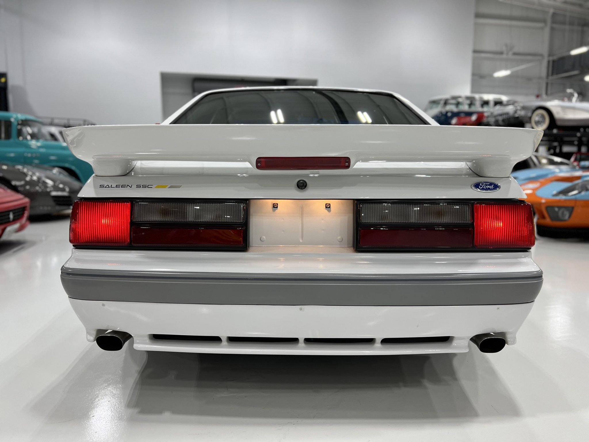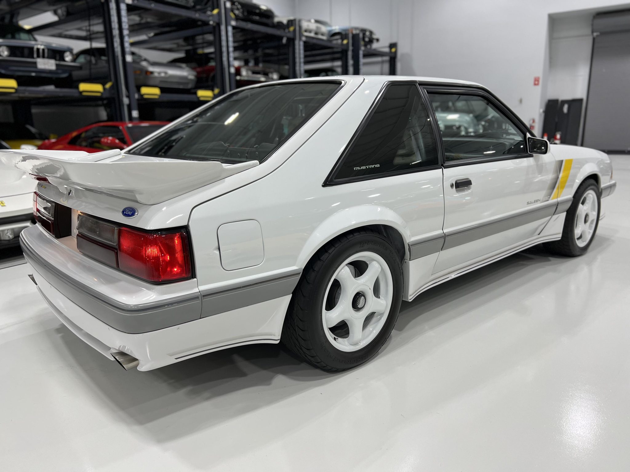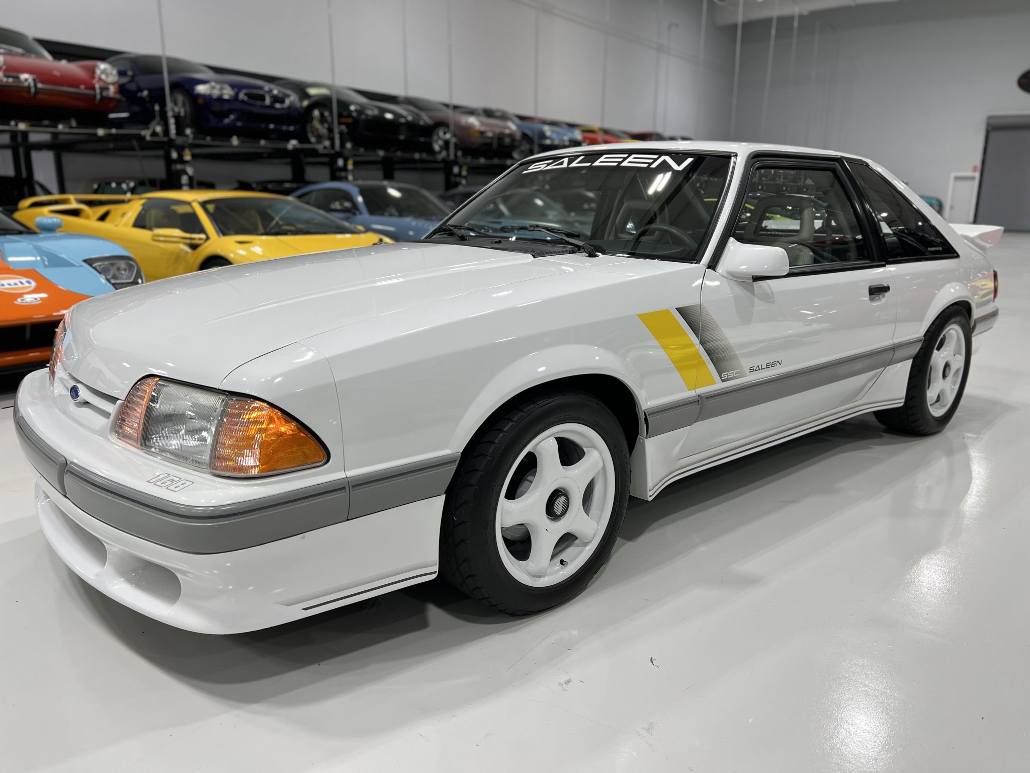 Oxford White 16″ five-spoke alloy wheels with Saleen logo center caps wear BFGoodrich g-Force tires sized 225/50 up front and 245/50 out back. The braking system is equipped with grooved rotors on all four corners. The car came equipped with Monroe Formula GP electronically adjustable shocks and struts.