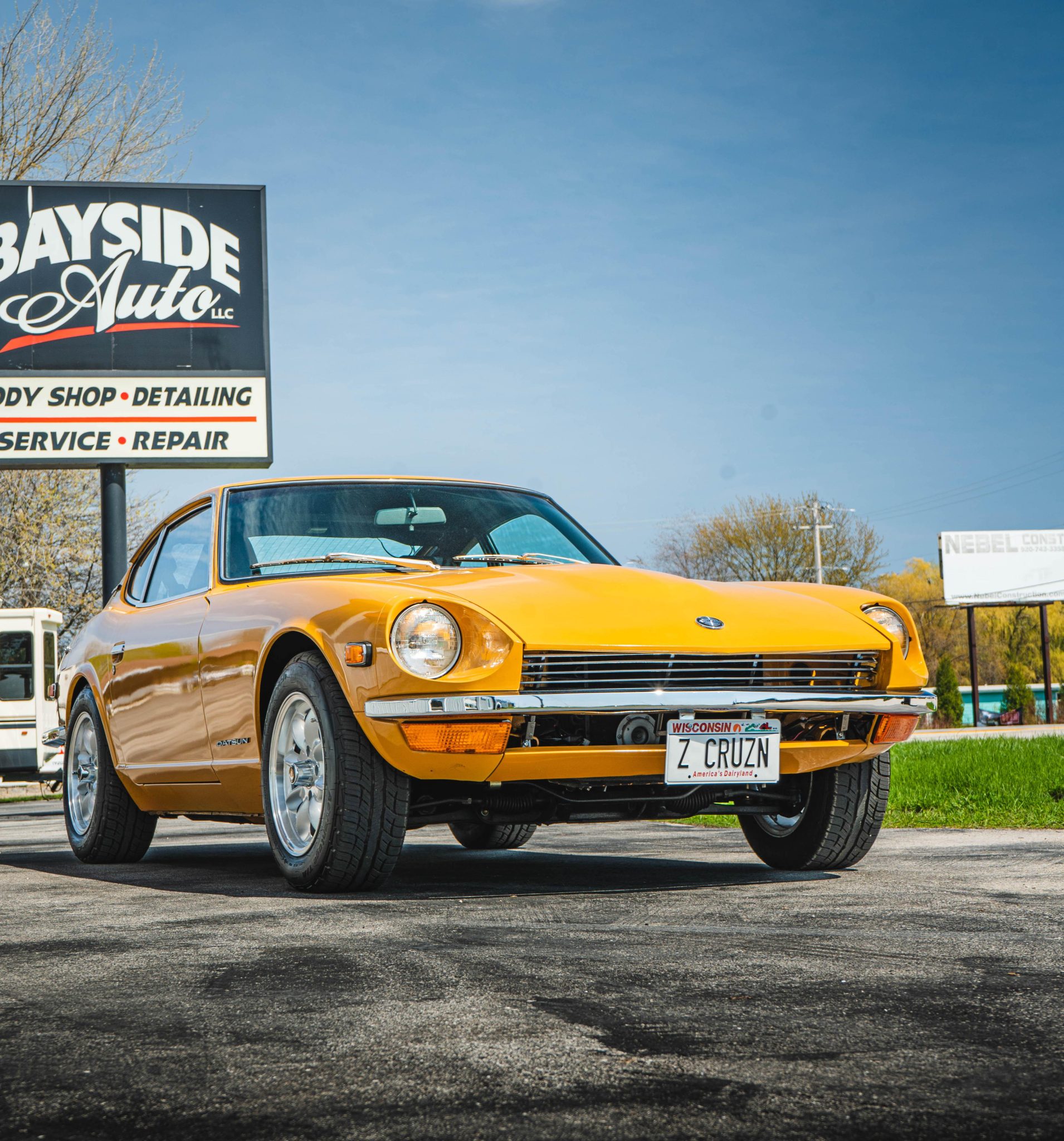 Aftermarket 15″ VTO Classic 8 wheels are mounted with 205/60 BFGoodrich Advantage T/A Sport tires. The suspension is fitted with Eibach progressive springs, KYB struts, rear spindle pins, and polyurethane and rubber bushings. Stopping power is provided by power-assisted front discs and rear drums with an aftermarket 7” power brake booster.
