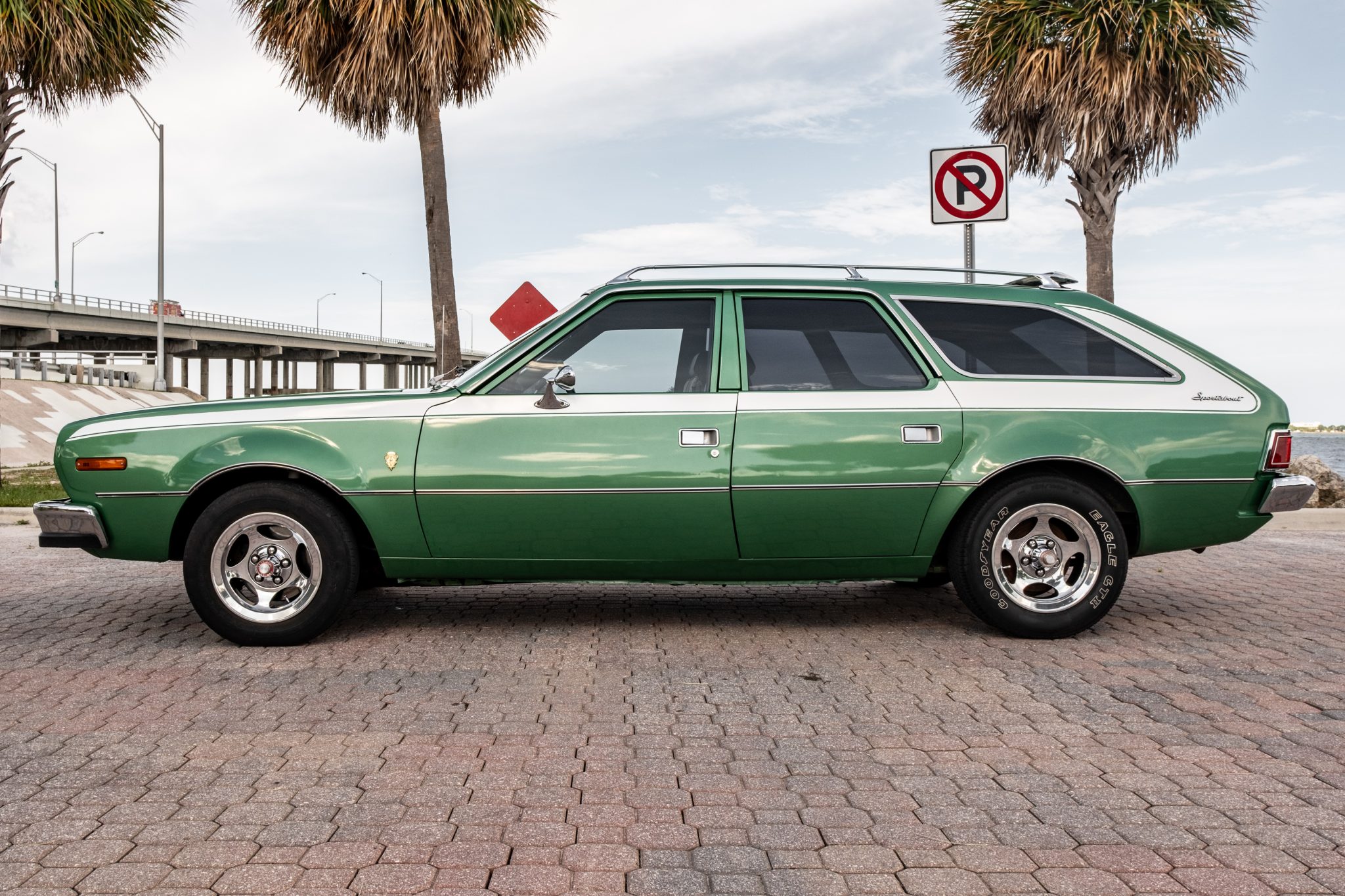 Polished 14″ five-spoke wheels are mounted with 185/70 BFGoodrich Advantage T/A tires up front and older 215/60 Goodyear Eagle GT II rubber out back. Power steering is fitted, and braking is handled by power-assisted front discs and rear drums.