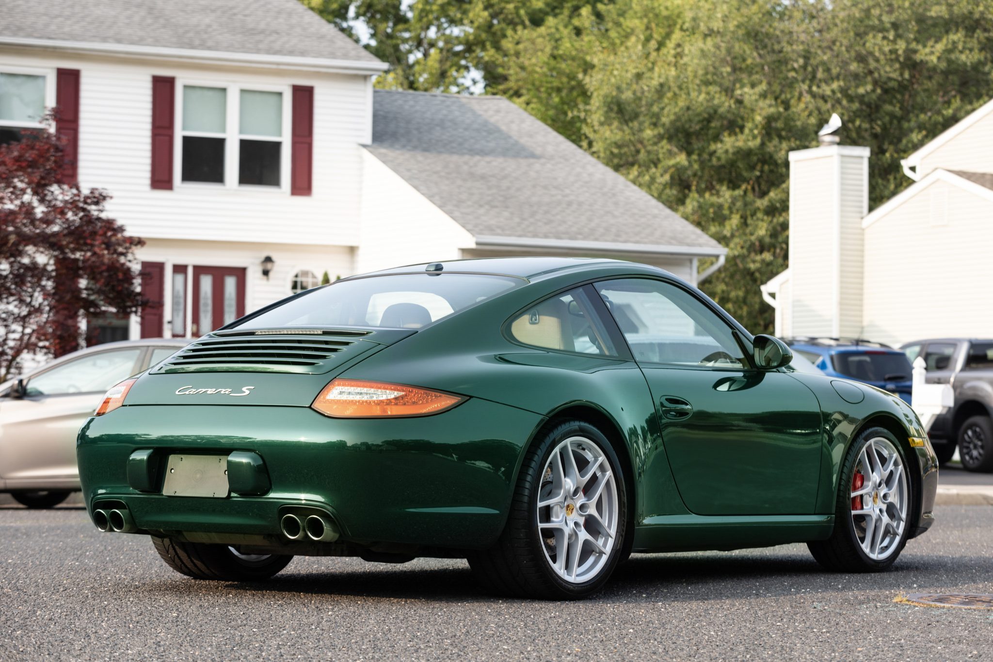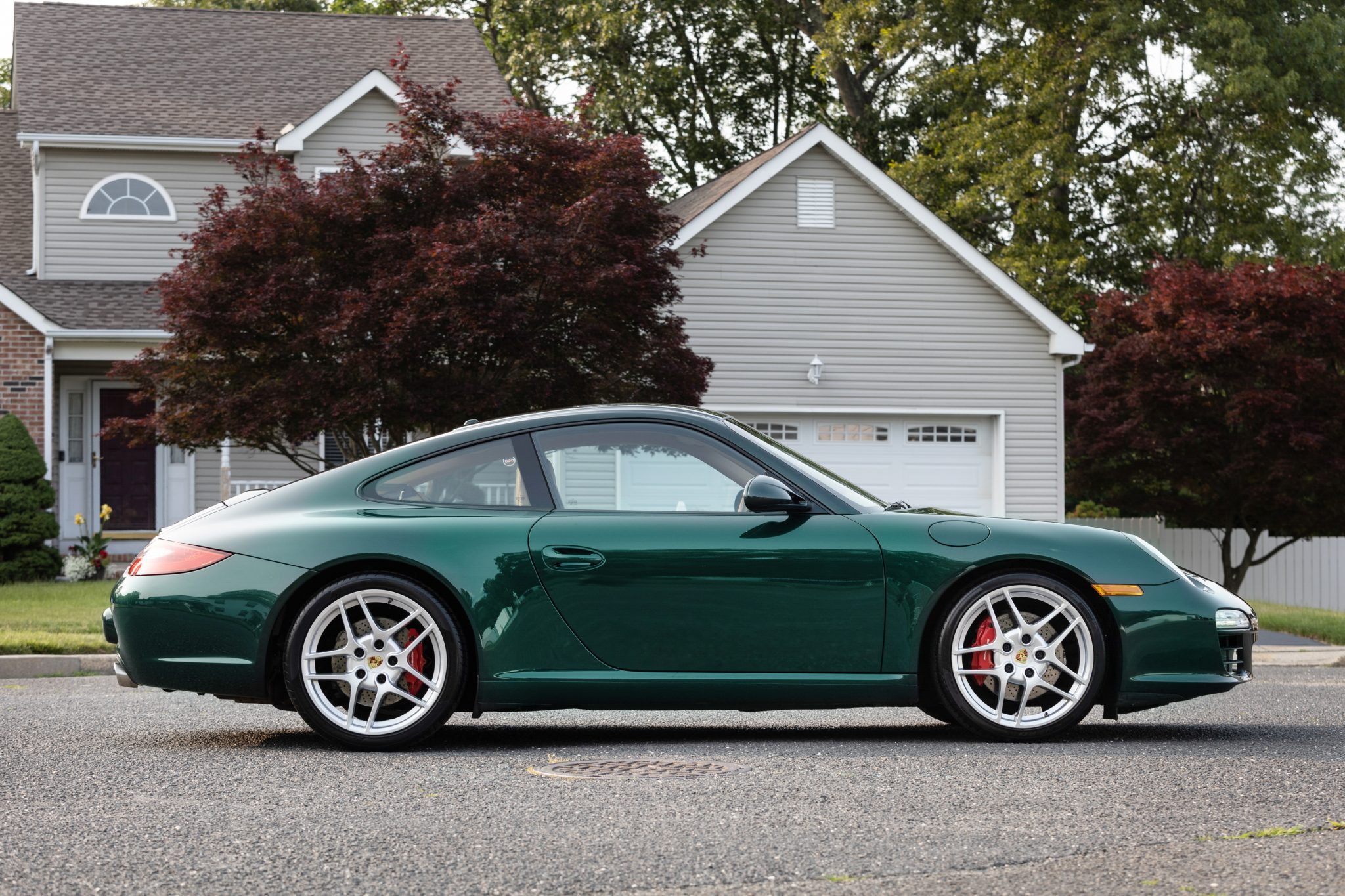 The 19” Carrera S II wheels are mounted with 235/35 front and 295/30 rear Pirelli P Zero tires. Braking is handled by red Porsche-branded multi-piston brake calipers fitted over cross-drilled and vented rotors at all four corners. The car is equipped with Porsche Stability Management (PSM), an active brake differential (ABD), and Anti-Slip Regulation (ASR).