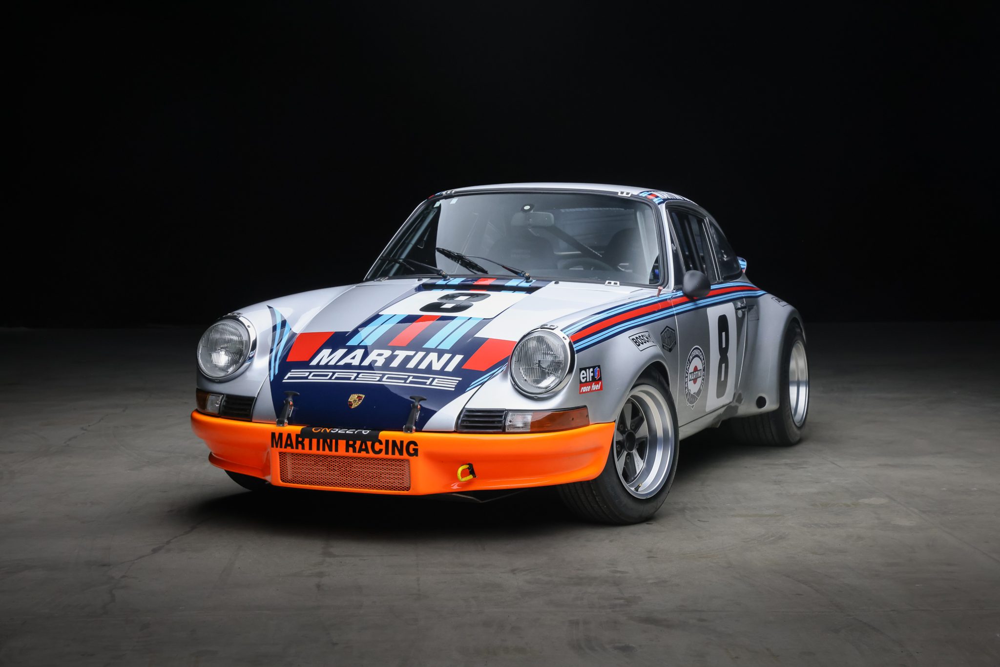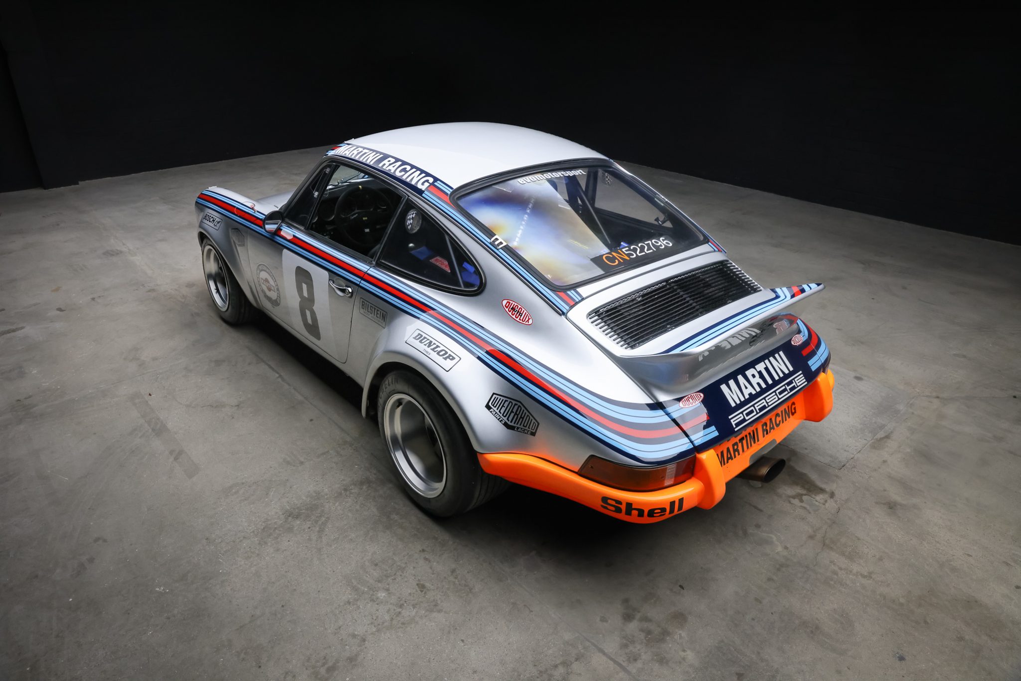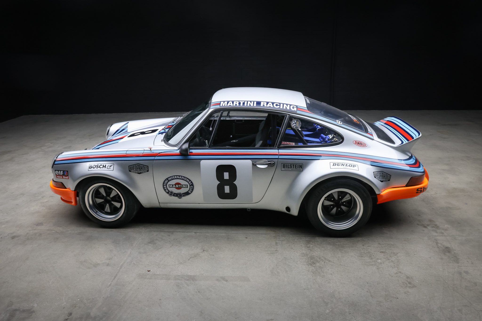 RSR-style 15″ Fuchs wheels are mounted with Michelin TB15 tires measuring 18/60 up front and 26/61 out back. The car rides on Bilstein dampers, and stopping power is provided by 917-style finned calipers over cross-drilled rotors at all four corners.