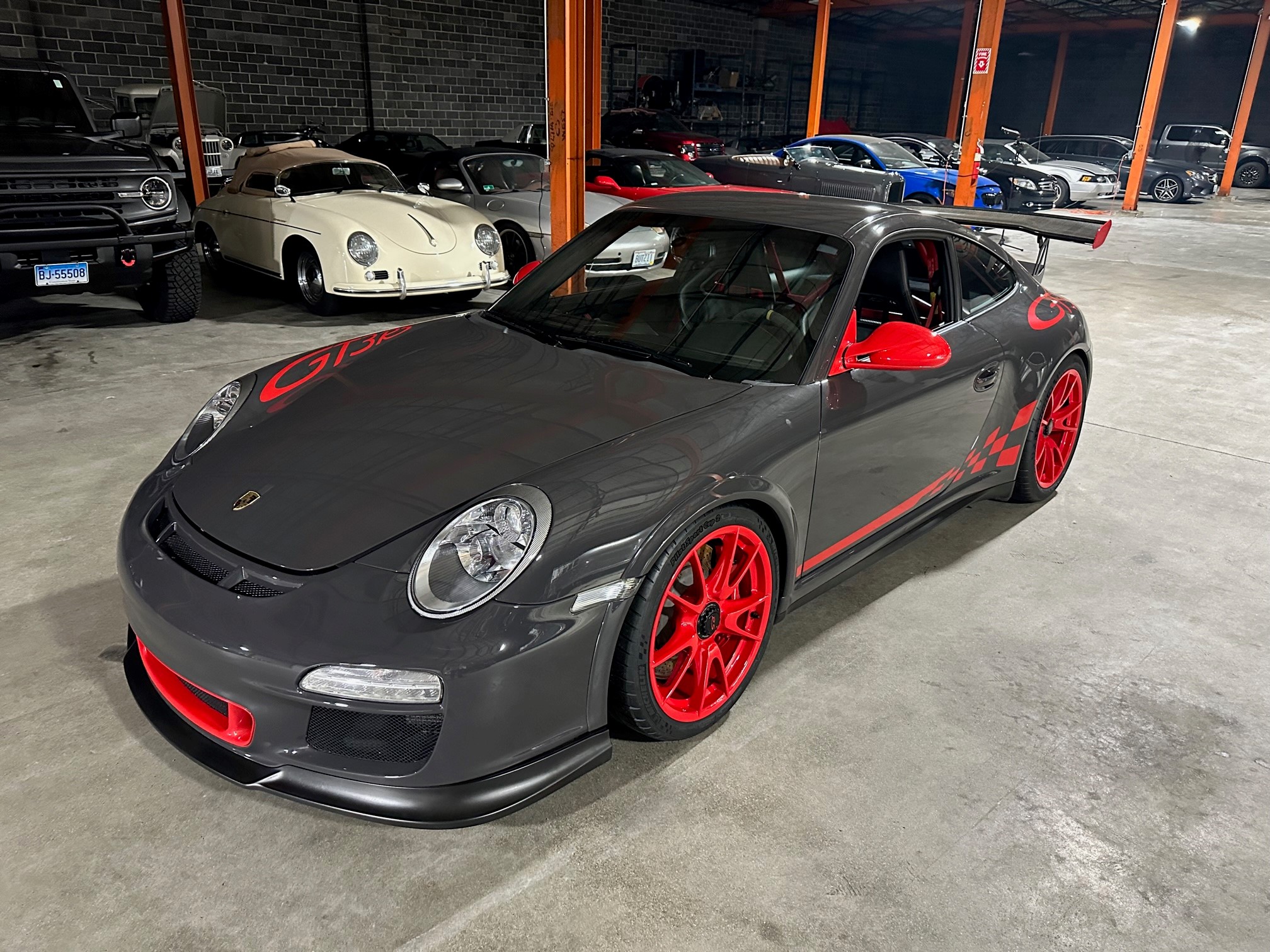 Red 19″ center-locking multi-spoke wheels are mounted with Michelin Pilot Sport Cup 2 tires showing date codes from 2022. Braking is handled by red Porsche-branded six-piston front and four-piston rear calipers over rotors measuring 15″ and 13.8″ front and rear, respectively. It was factory equipped with Porsche Active Suspension Management (PASM) featuring adjustable coilovers. Noted recent service included rebuilding the brake calipers and replacing the rotors in July 2020 as well as replacing the brake pads and flushing the brake fluid in June 2023.