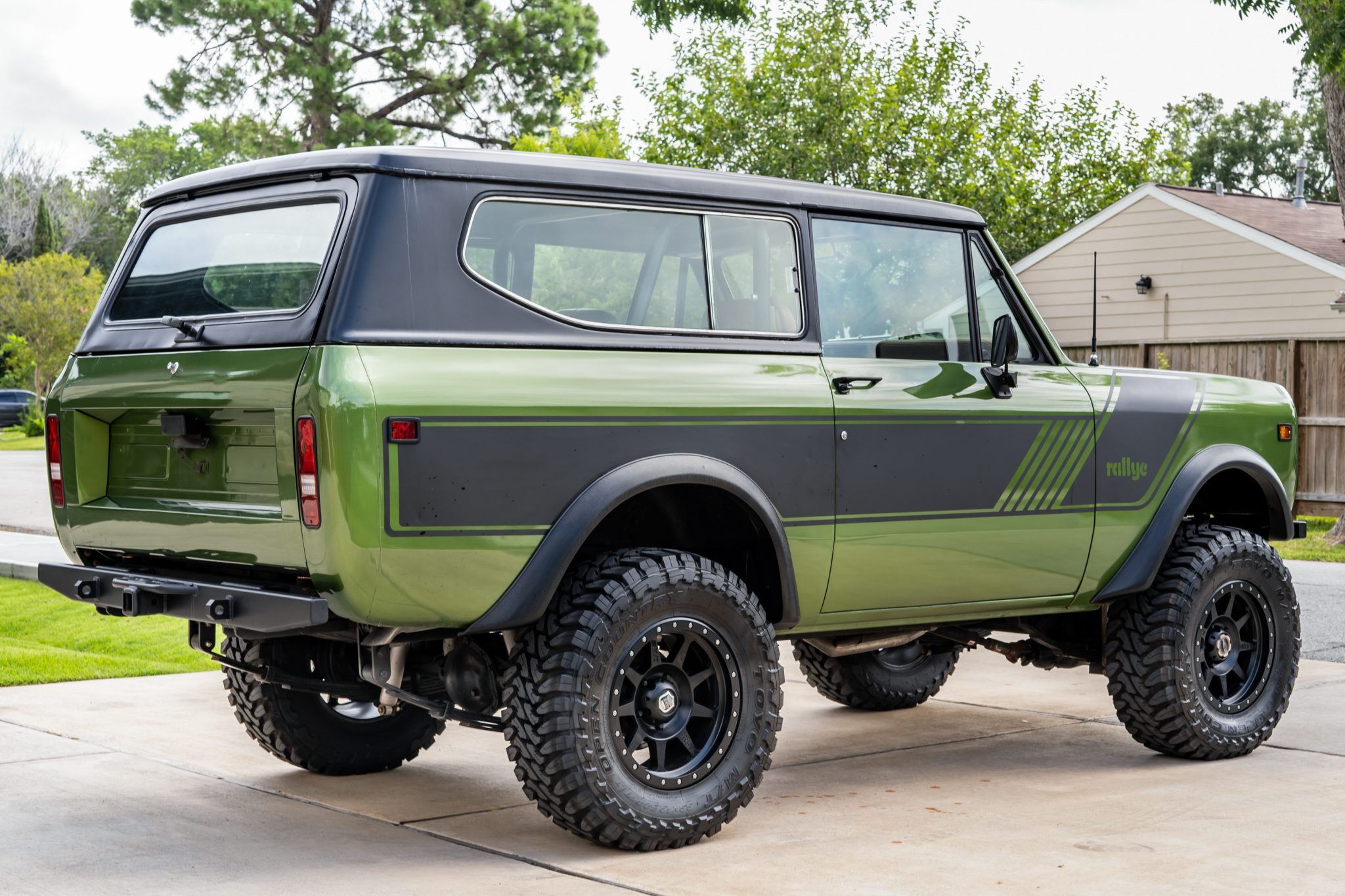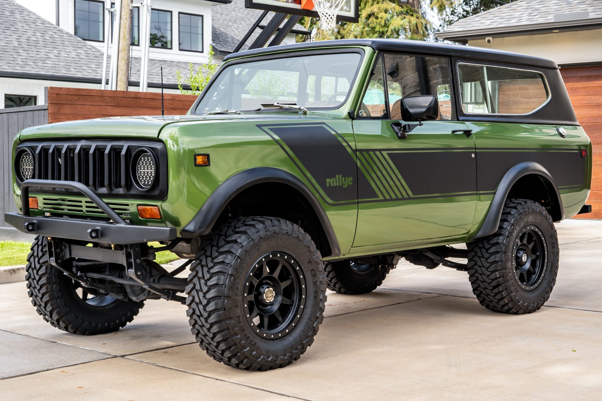 The 17″ Mickey Thompson Deegan 38 beadlock wheels are mounted with 33×12.5″ Toyo M/T Open Country tires. The truck is fitted with a 4″ suspension lift kit, power-assisted steering, and manually locking front hubs. Braking is handled by power-assisted front discs and rear drums.