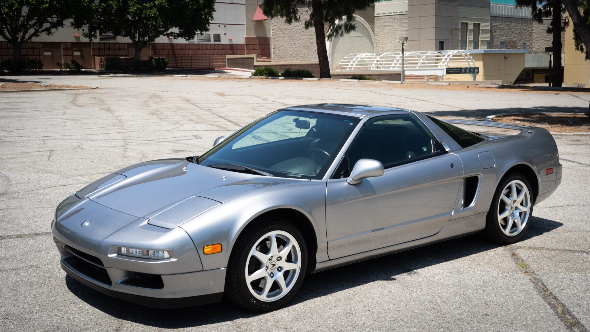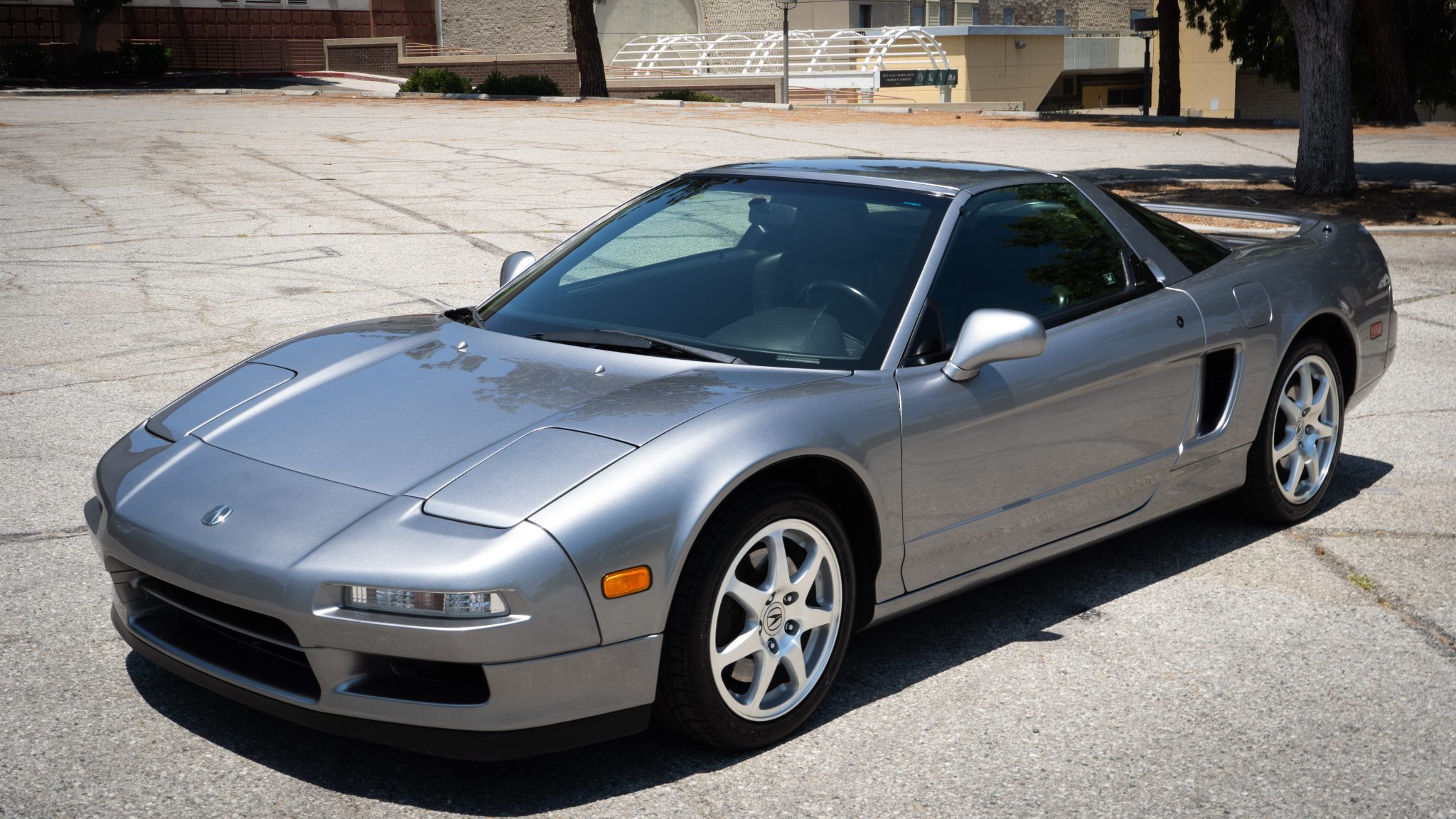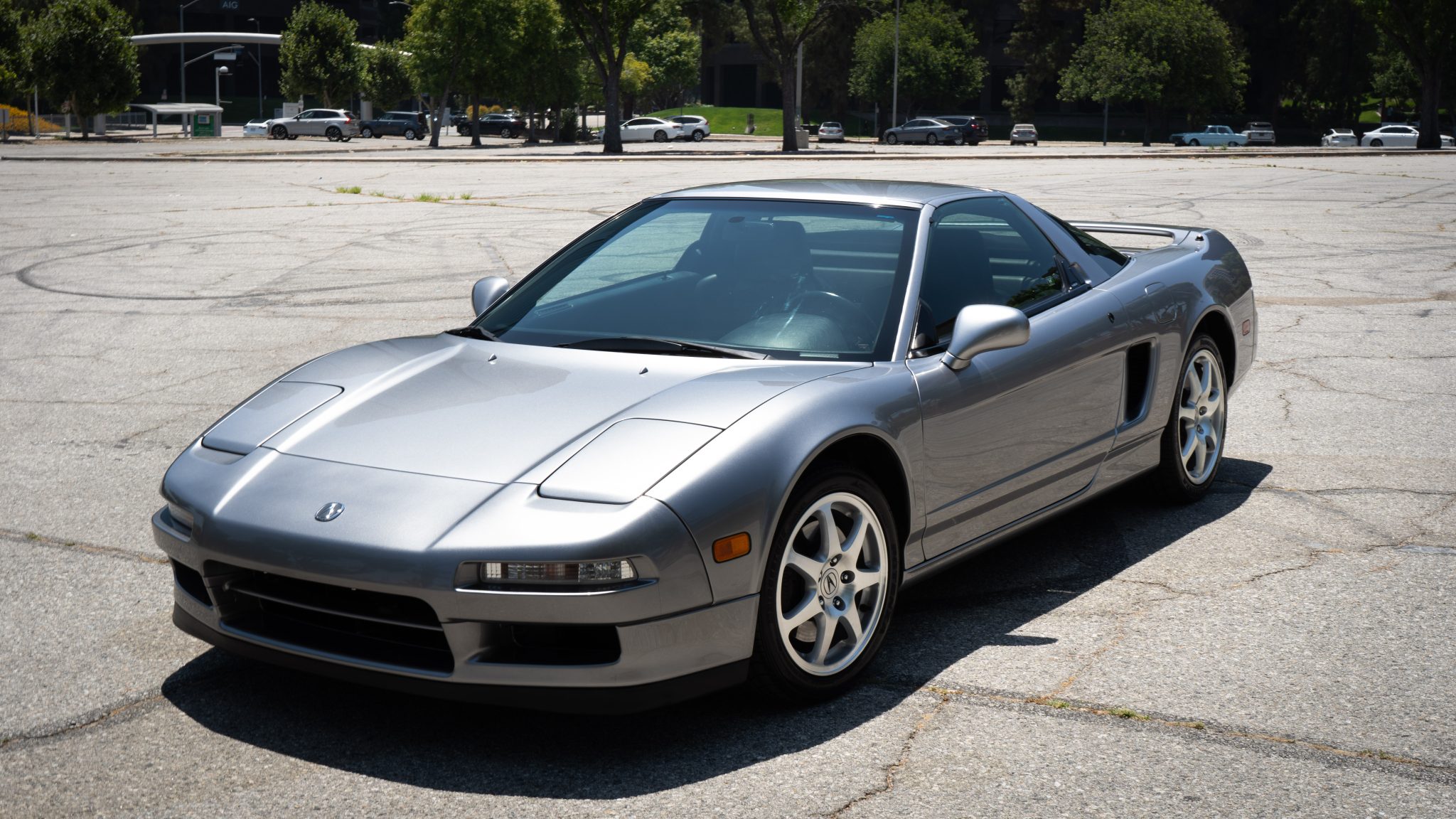 Staggered-diameter 16” and 17” seven-spoke aluminum wheels are mounted with Bridgestone Potenza tires installed in 2019 and measuring 215/45 up front and 245/40 out back. The car features a four-wheel double-wishbone suspension with front and rear stabilizer bars, and braking is handled by NSX-branded calipers over vented rotors at each corner.