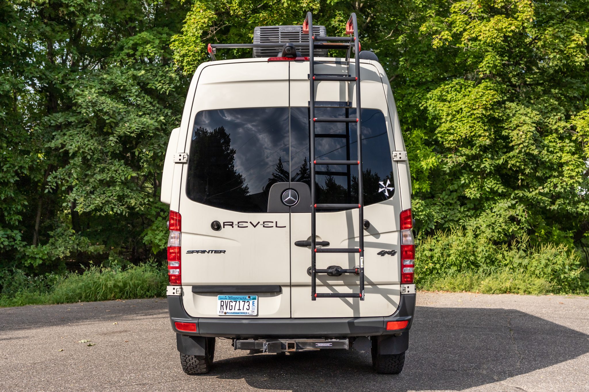 Black-finished 17” Method wheels are mounted with 245/70 BFGoodrich All-Terrain T/A K02 tires, and a full-size spare is housed under the rear of the van. Stopping power is provided by four-wheel disc brakes.