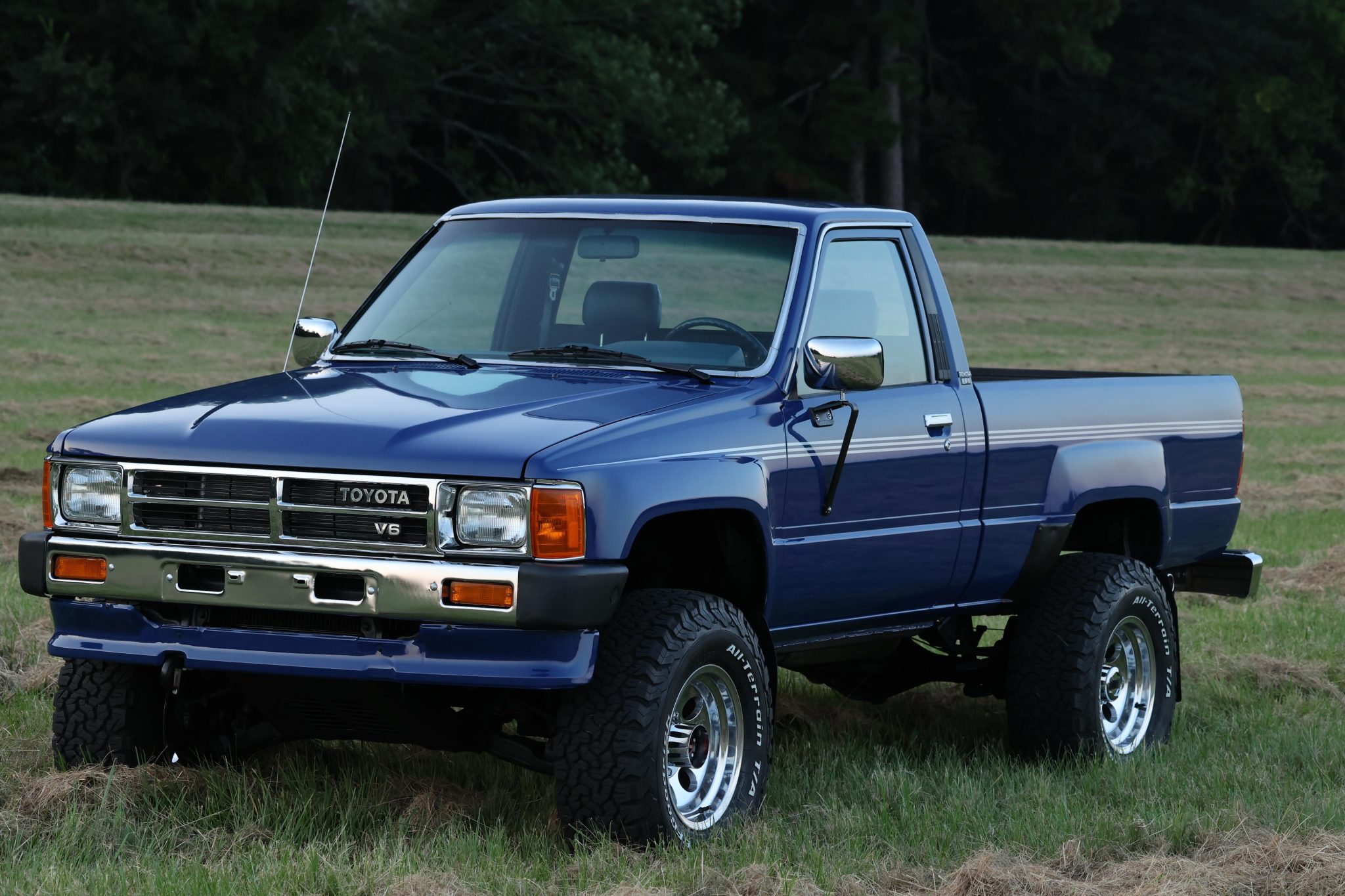 Polished 15″ Mickey Thompson Classic III wheels are mounted with 31×10.5″ BFGoodrich All-Terrain T/A K02 that were mounted in 2023. The truck is equipped with manually locking front hubs, and braking is handled by power-assisted front discs and rear drums. The shocks, steering stabilizer, and sway bar links were replaced in May 2023.