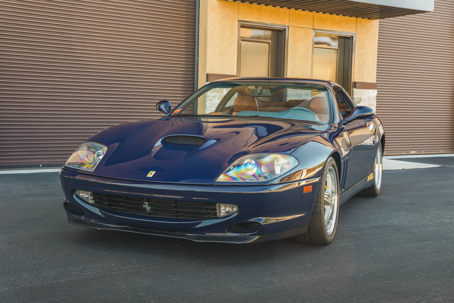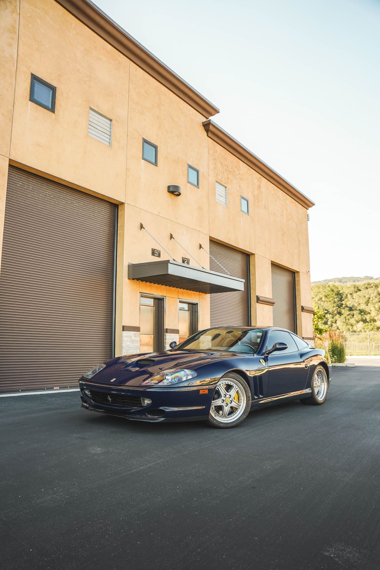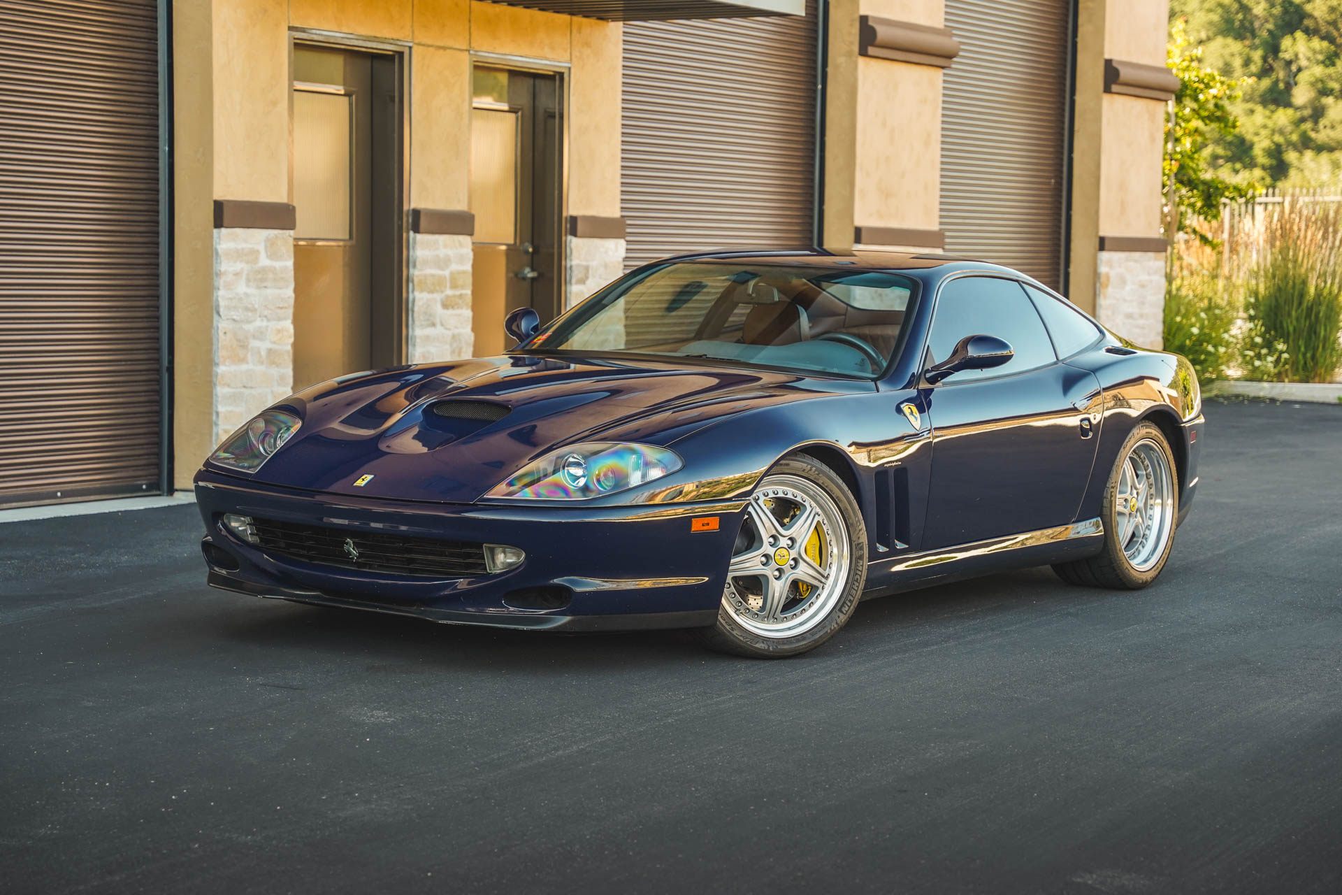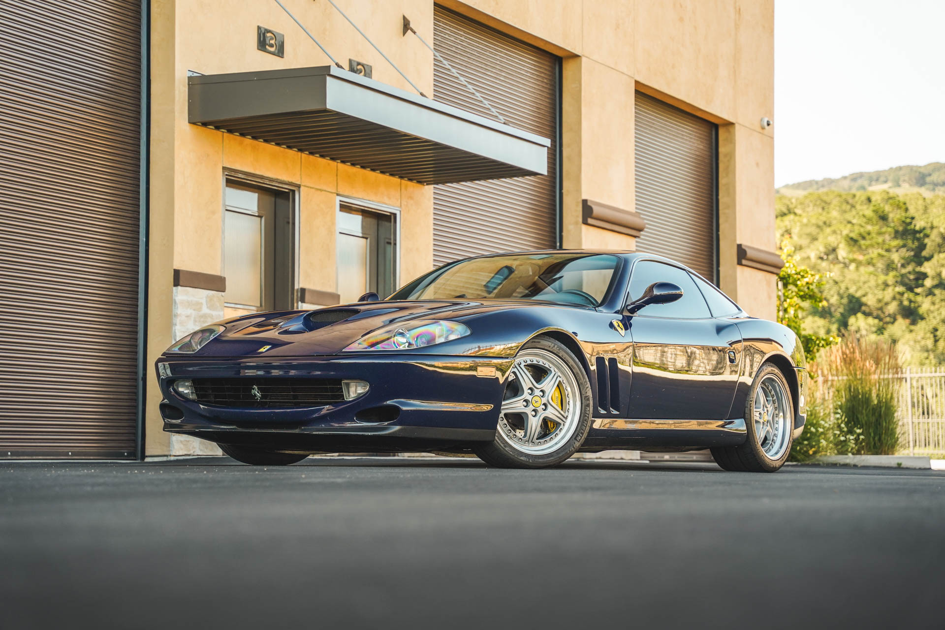 Optional 18″ modular wheels are mounted with 255/40 front and 295/35 rear Michelin Pilot Sport tires. The car is equipped with the Fiorano handling package, and braking is handled by yellow-finished Ferrari-branded calipers over cross-drilled rotors at all four corners.