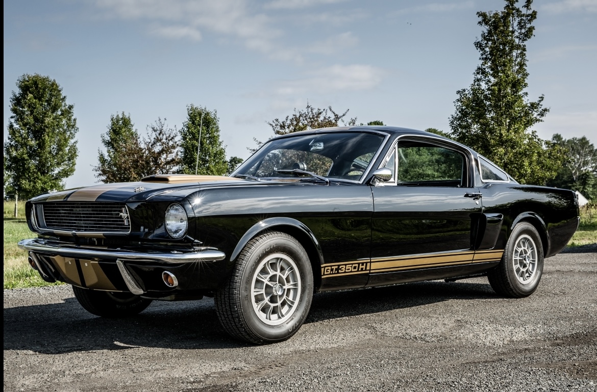 Silver 14″ ten-spoke alloy wheels were optional for the GT350 in 1966 and wear 205/70 BFGoodrich Radial T/A tires, while a full-size spare is mounted in the trunk. Shelby chassis modifications included revised front suspension geometry, Kelsey-Hayes front disc brakes, and larger rear brake drums when compared to the contemporary standard Mustang. The selling dealer states that the brake system was overhauled in 2023.