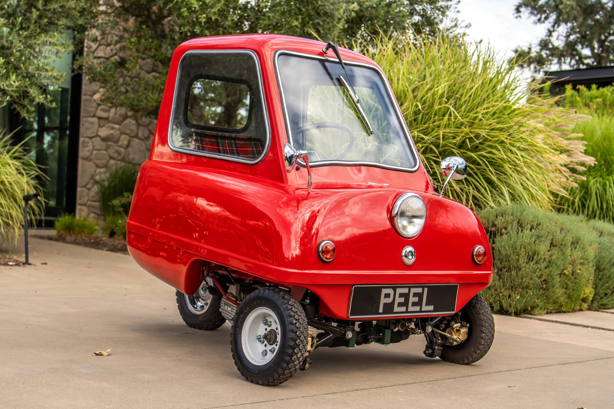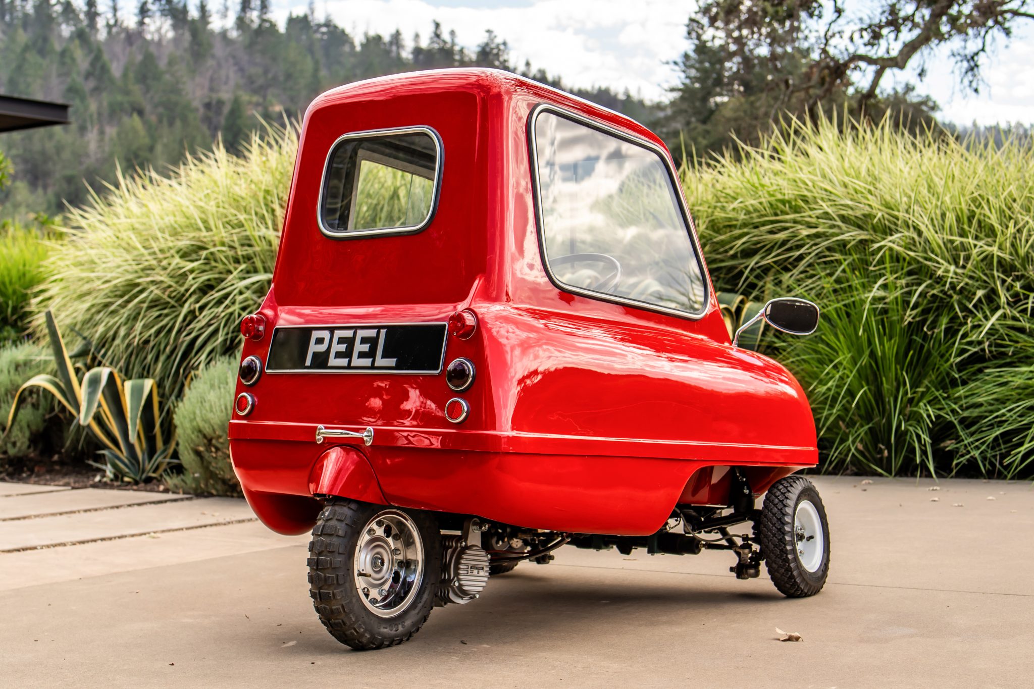 Steel 6″ wheels wear Trelleborg T-533 High-Speed tires measuring 4.10/3.50. Braking comes from cross-drilled discs up front.