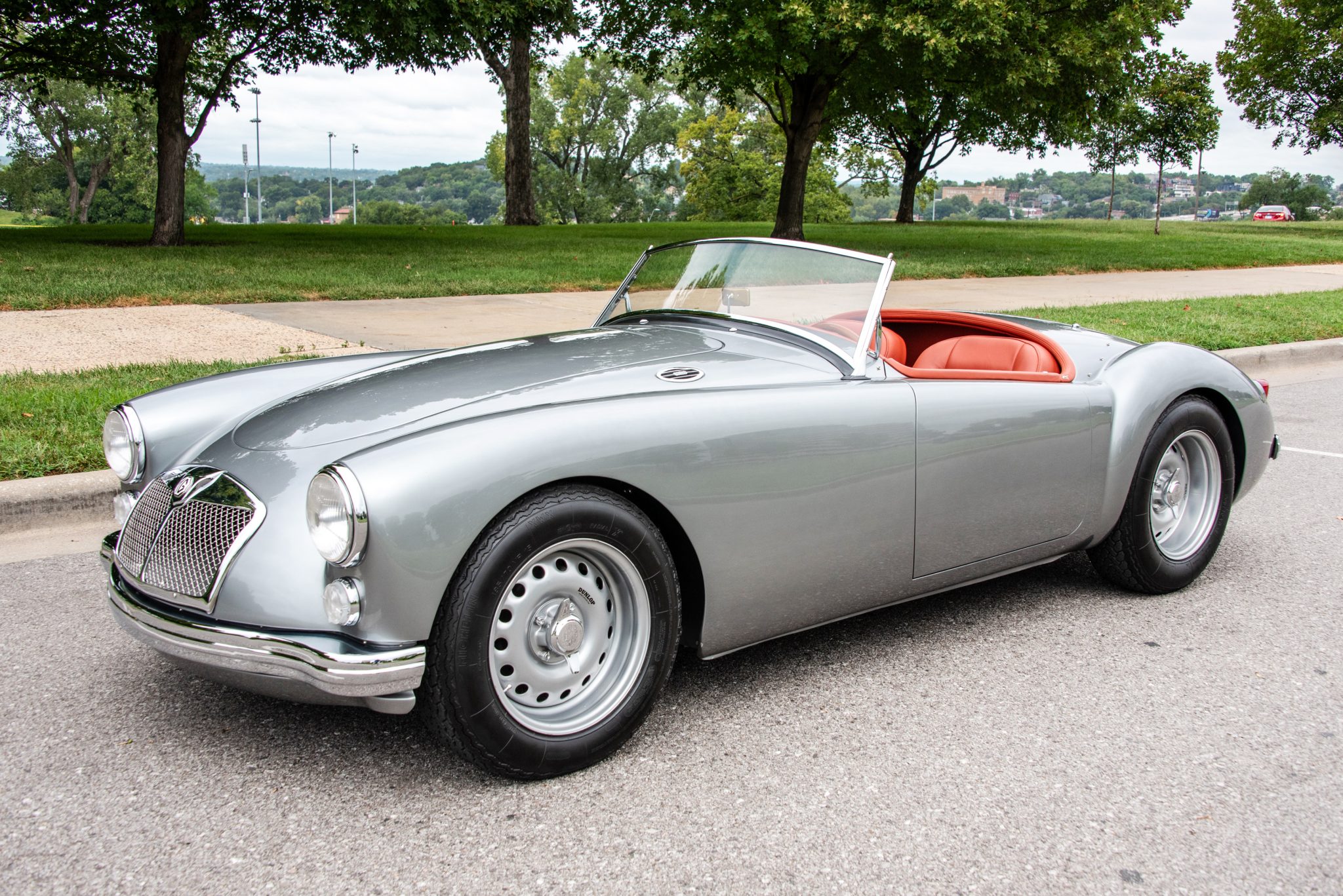 The 15” Twin Cam-spec steel wheels have been widened and wear Dunlop decals as well as two-ear knockoffs. The Michelin XWX tires measure 185/70 up front and 205/70 out back. The car rides on a double-wishbone front suspension and triangulated rear suspension with Carrera adjustable coilovers at all four corners. Braking is handled by Wilwood four-piston calipers over 12″ cross-drilled rotors, and a Wilwood rear parking brake as well as a quick-ratio Caterham steering rack have been installed. The seller reports that the suspension components have been ceramic-coated.