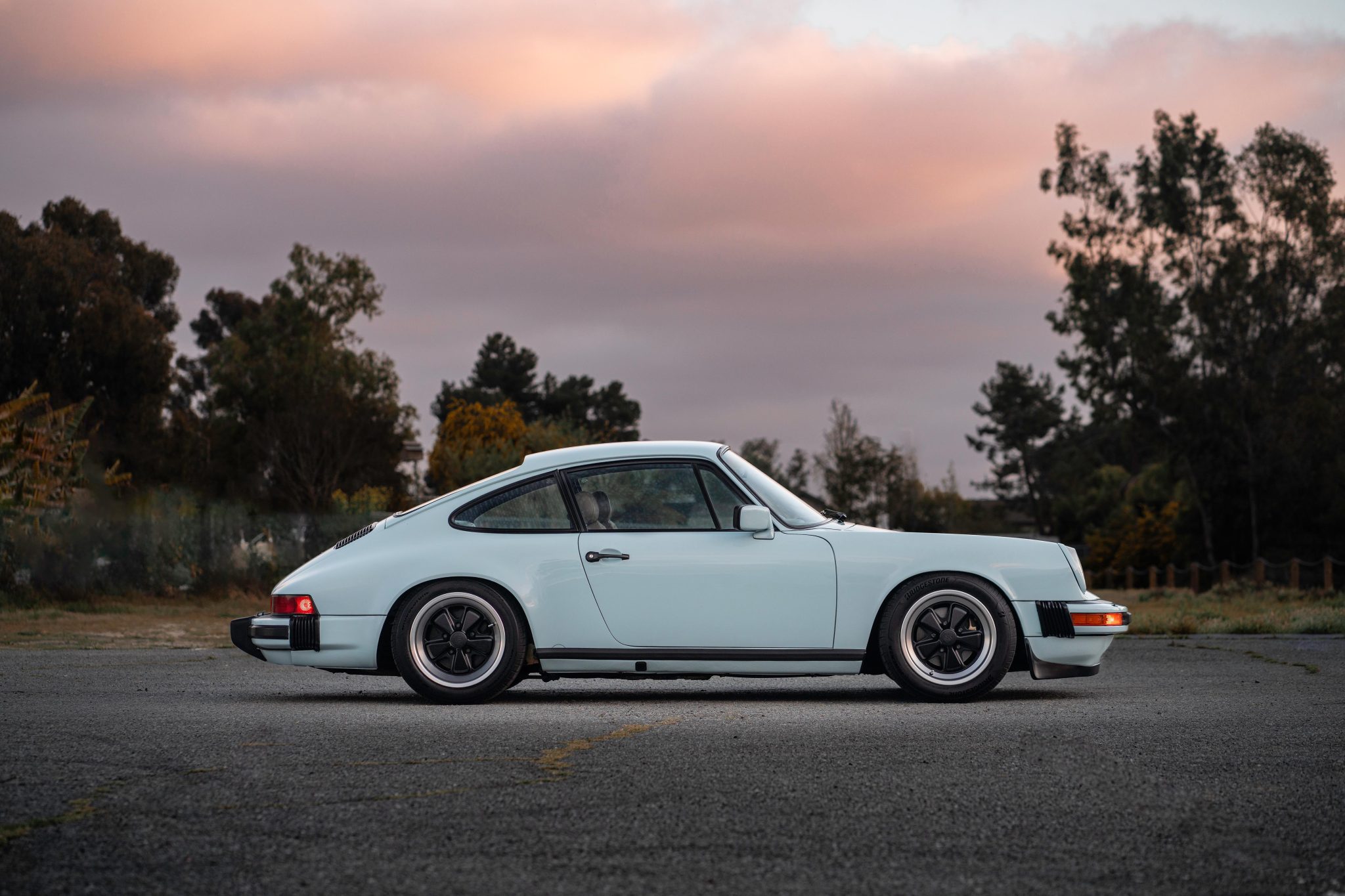 Staggered-width 16″ reproduction Fuchs-style alloy wheels are mounted with Bridgestone tires measuring 205/55 up front & 245/45 out back with 2021 date codes all around. Braking is handled by four-wheel discs, and the front calipers were reportedly rebuilt and the lines replaced under current ownership. According to the seller, the spring plate and torsion bar bushings were replaced and the car was lowered to Euro ride height.