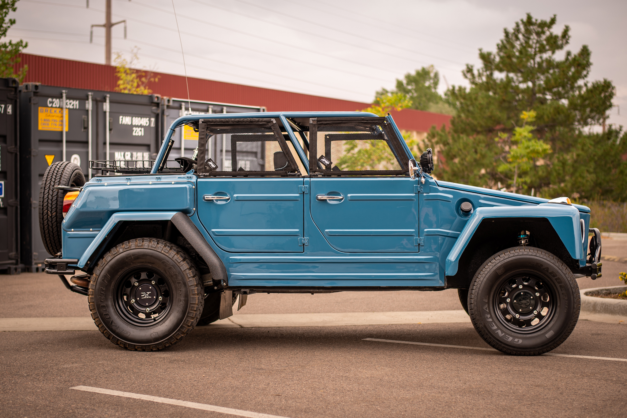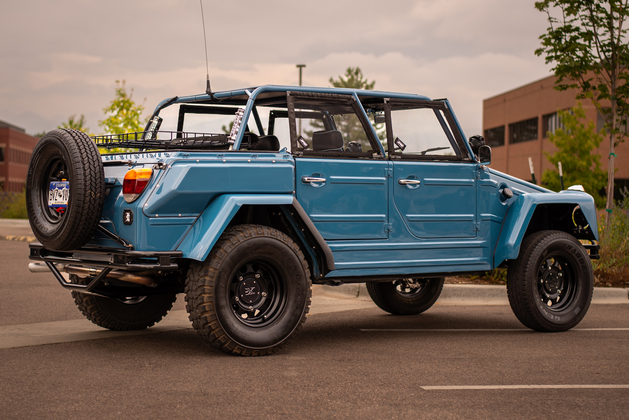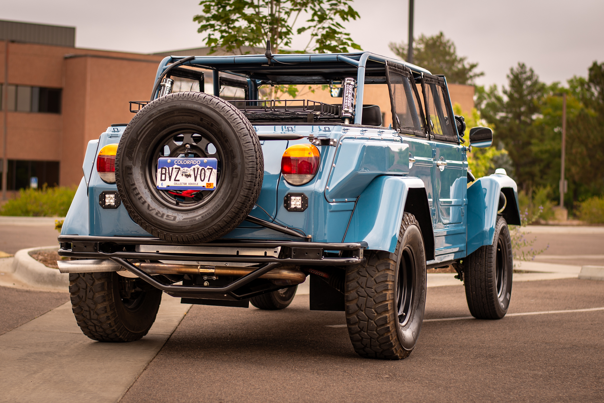 The 15″ Method wheels are mounted with General Grabber HTS up front and 31×10.5″ General Grabber M/T rear rubber. The car has been fitted with King Shocks coilovers with remote reservoirs, along with Sway-A-Way rear axles and custom front spindles and trailing arms. Braking is handled by discs at each corner, with a Jamar kit fitted up front. The seller states a Saco steering rack has been installed.