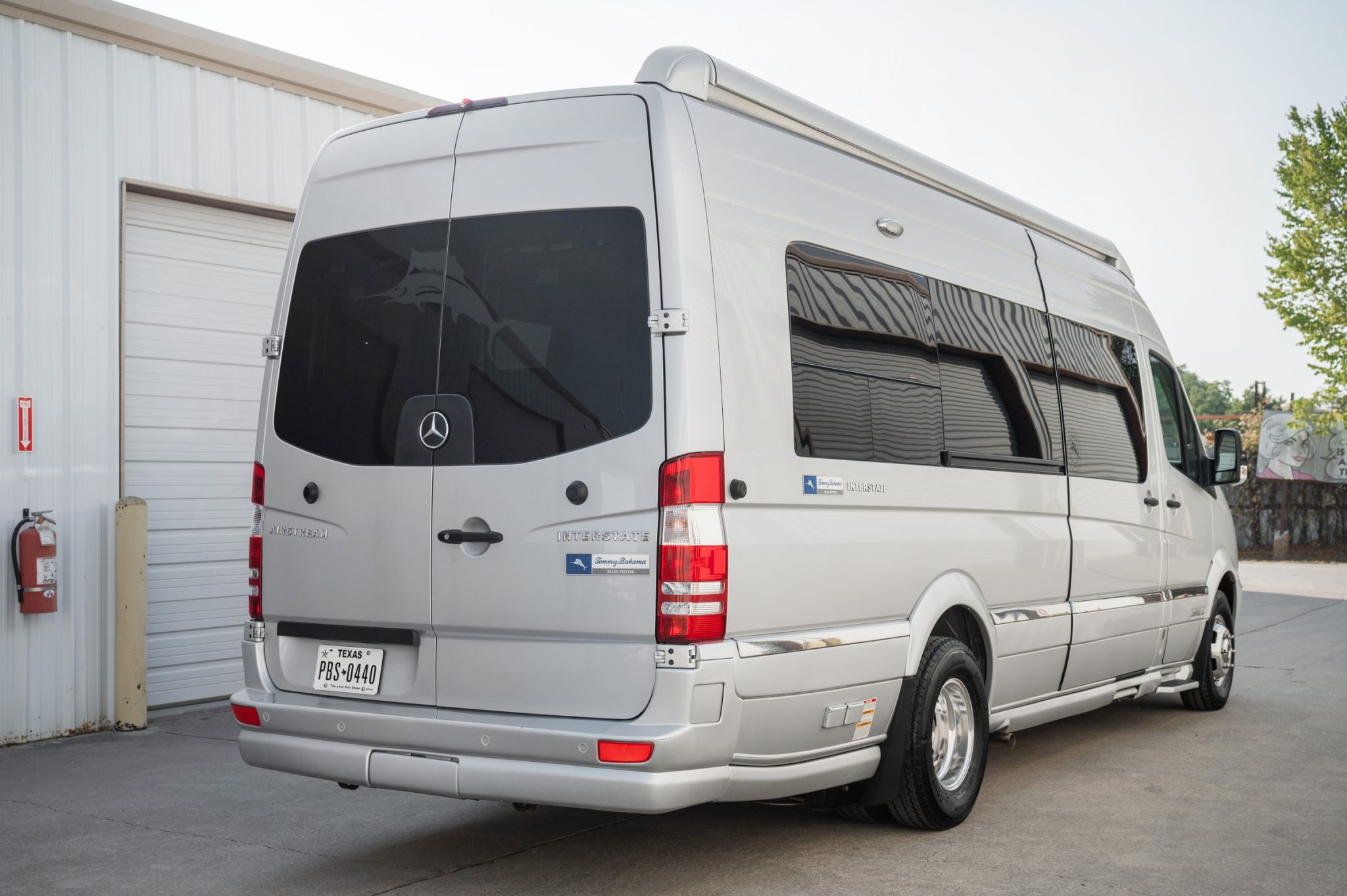 Bright-finished 16″ Alcoa wheels are fitted with 215/85 Continental Vanco Four Season tires bearing 2017 manufacturing date codes. The sliding side door has a retractable screen insert, and the rear and side windows are tinted. The vehicle measures approximately 293″ long, 80″ wide, and 116″ tall.