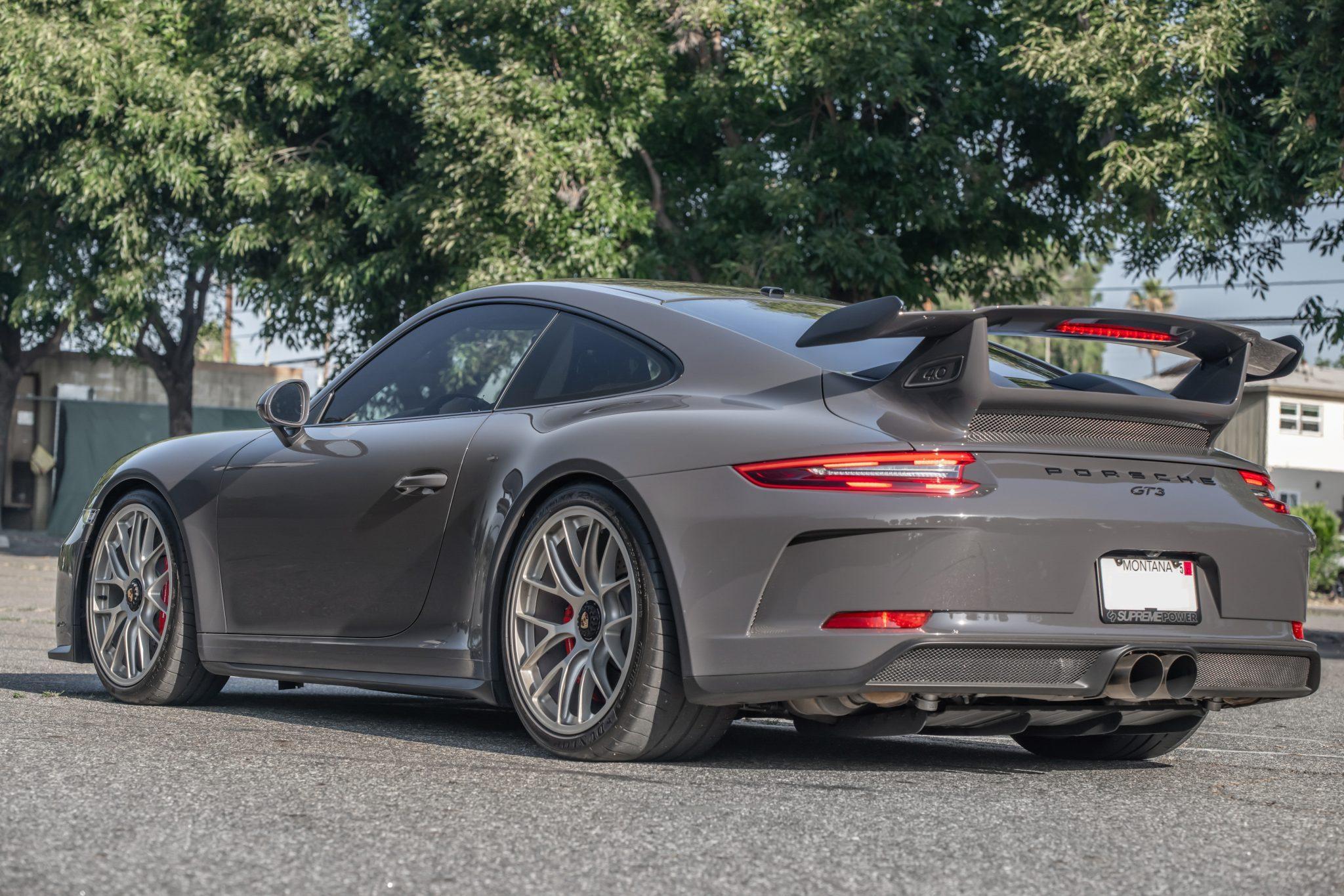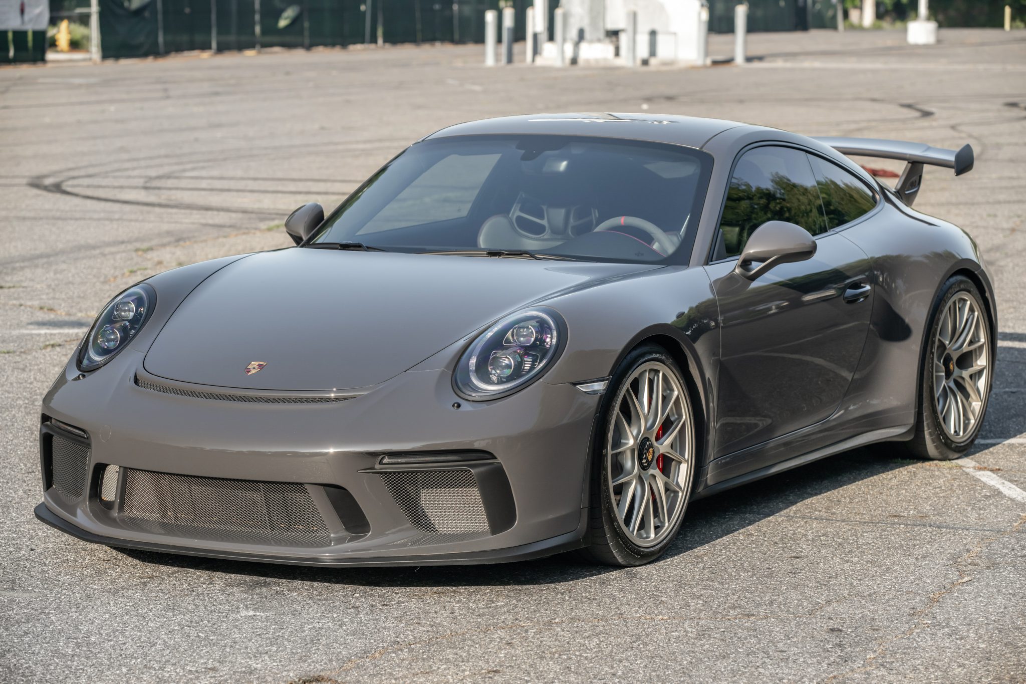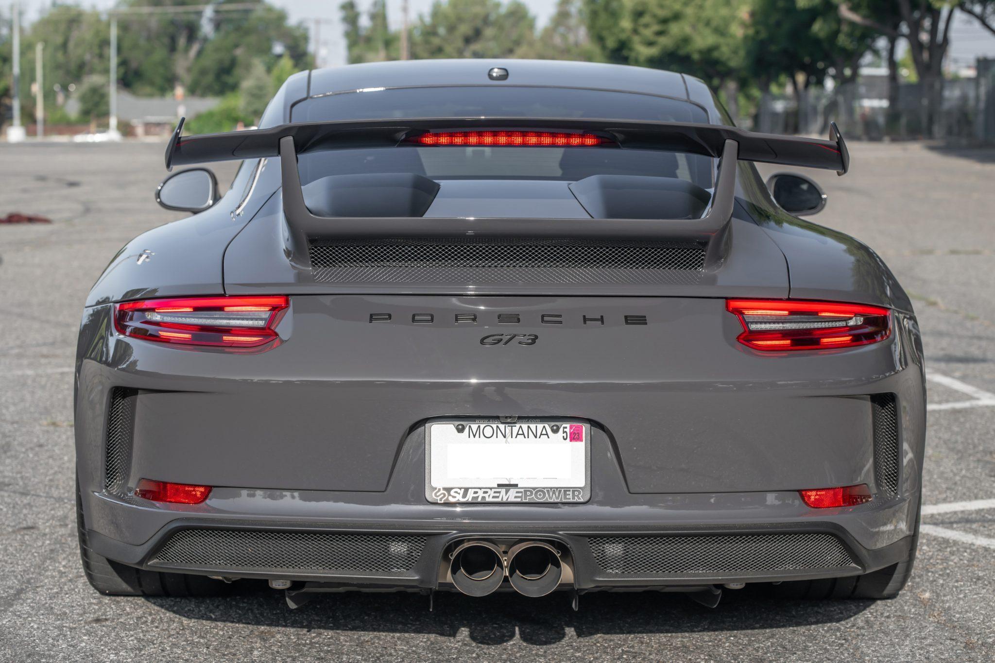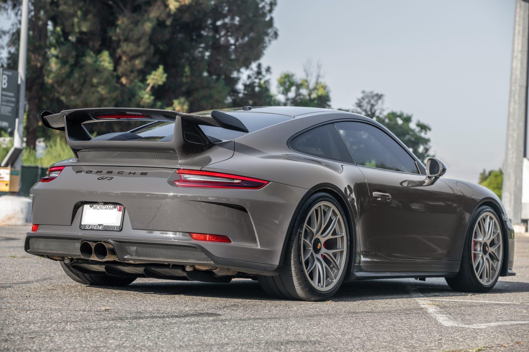 The 20″ BBS center-lock forged wheels are mounted with 245/45 front and 305/30 rear Dunlop Sport Maxx Race 2 tires. Braking is handled by red Porsche-branded calipers over cross-drilled and ventilated discs. The car is equipped with a front-axle lift system, rear-axle steering, and Porsche Active Suspension Management.