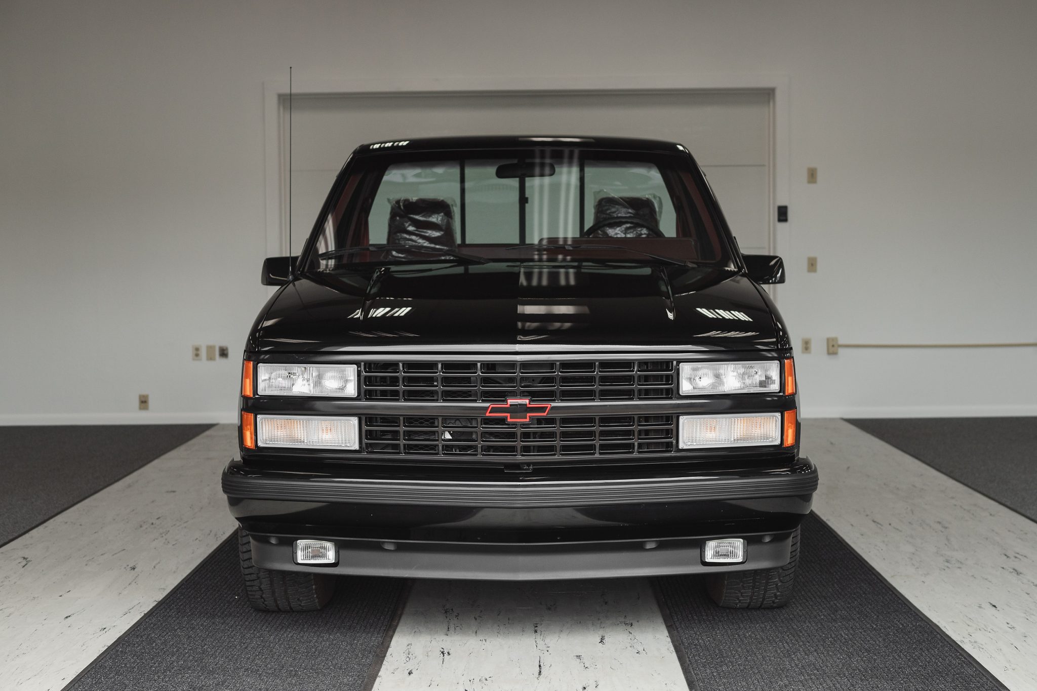 Chrome-finished 15″ steel wheels are mounted with 275/60 BFGoodwrich Comp T/A tires. All 454 SS examples were equipped with the Performance Handling Package, which included a 32mm front sway bar, a 12.7:1 steering ratio, and Bilstein dampers. Stopping power is provided by front discs and rear drums.