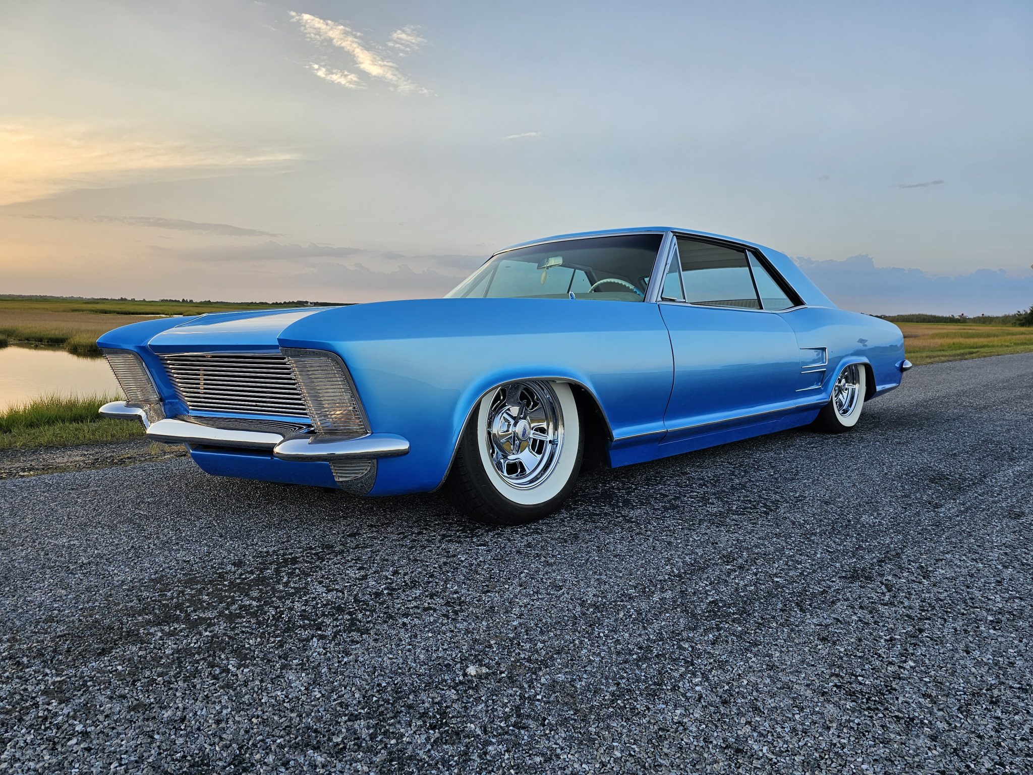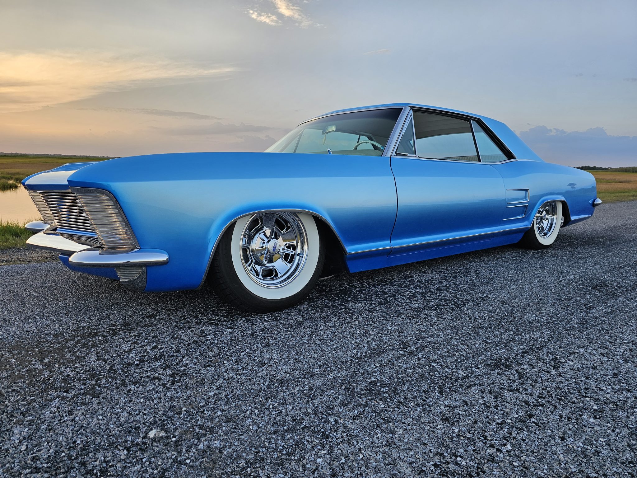 Chrome 15″ Cragar wheels wear spinner-style center caps and are mounted with 215/70 BFGoodrich Silvertown Radial wide-whitewall tires. The car has been fitted with an air compressor, an air tank, and four-wheel air springs. Braking is handled by power-assisted finned drums at all four corners.