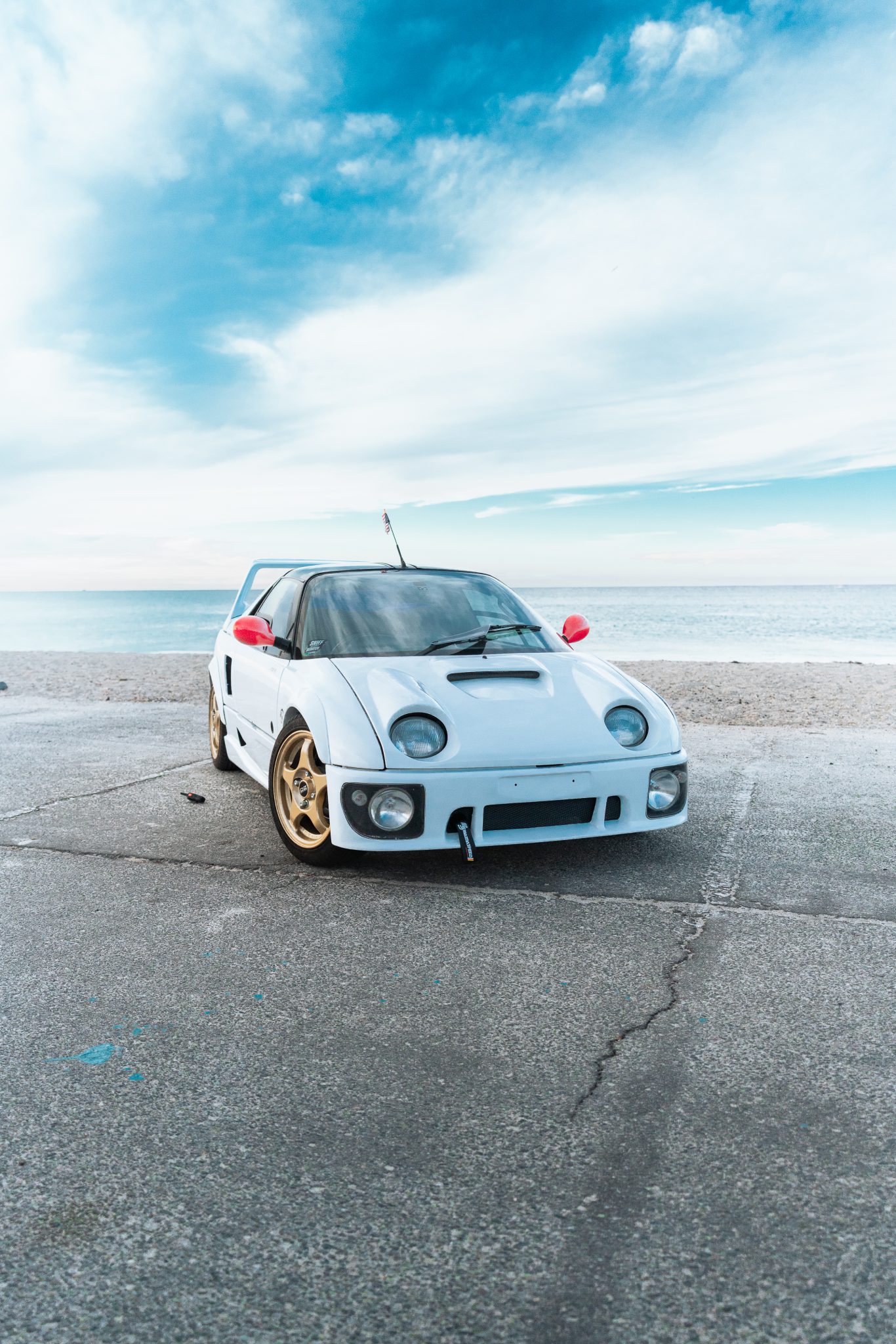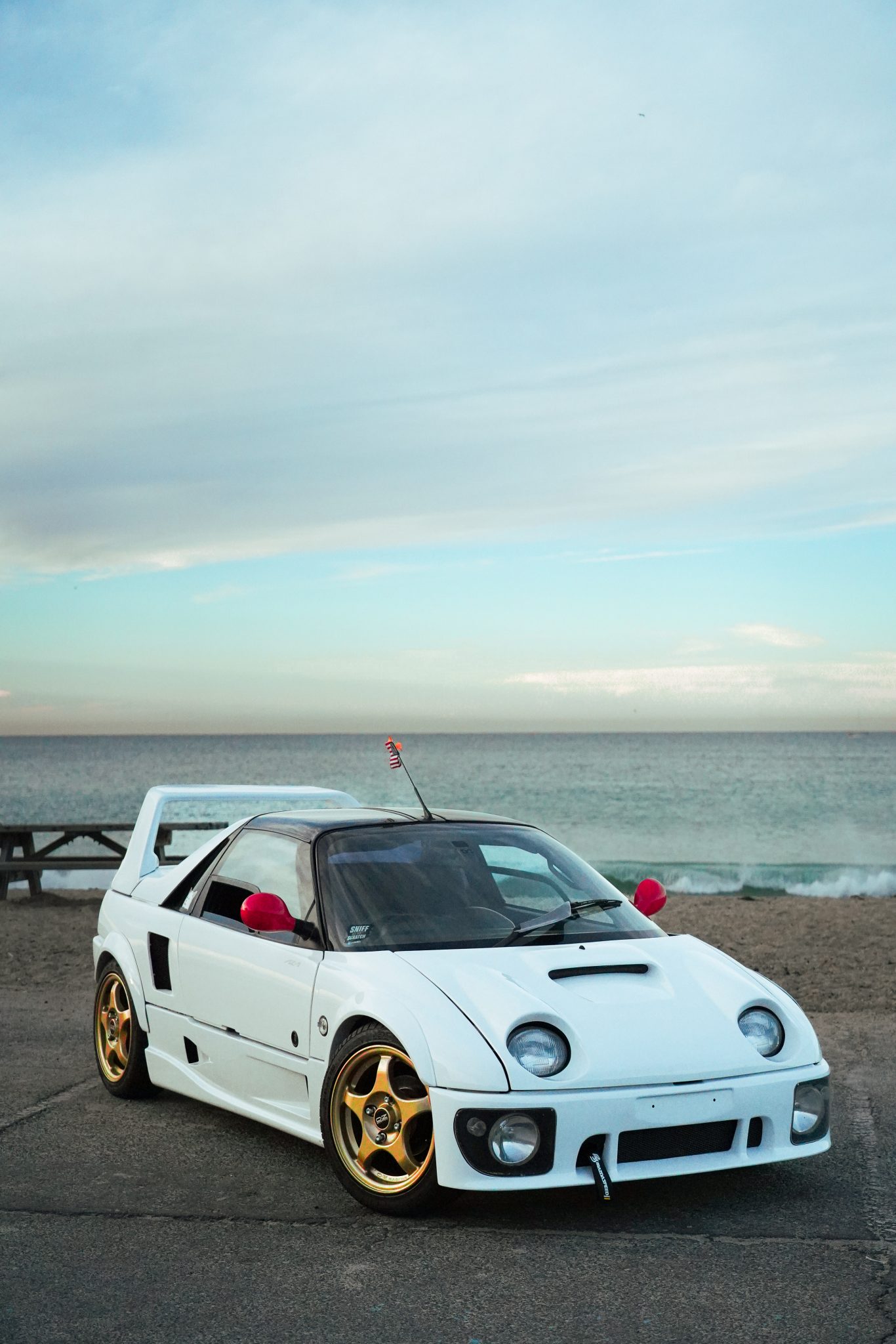 Gold-finished 15″ OZ Racing wheels are mounted with 175/50 Accelera PHI-R tires. The seller states that the car has been fitted with adjustable coilovers, and stopping power is provided by four-wheel disc brakes.