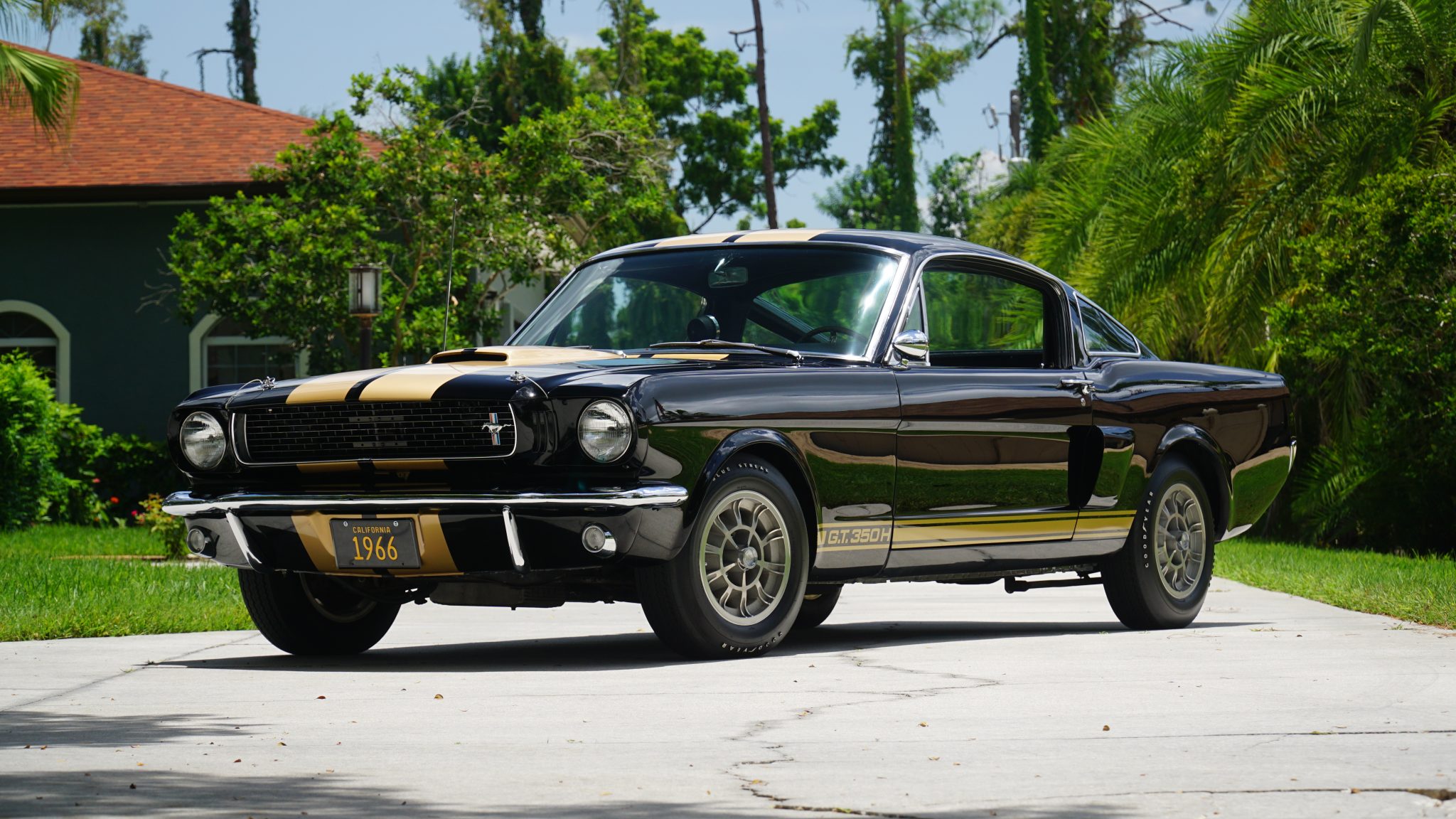 The 14″ 10-spoke alloy wheels are mounted with Goodyear Blue Streak white-letter tires. Shelby chassis modifications included revised front suspension geometry, and Koni shocks have been fitted. Stopping power is provided by front discs and rear drums.