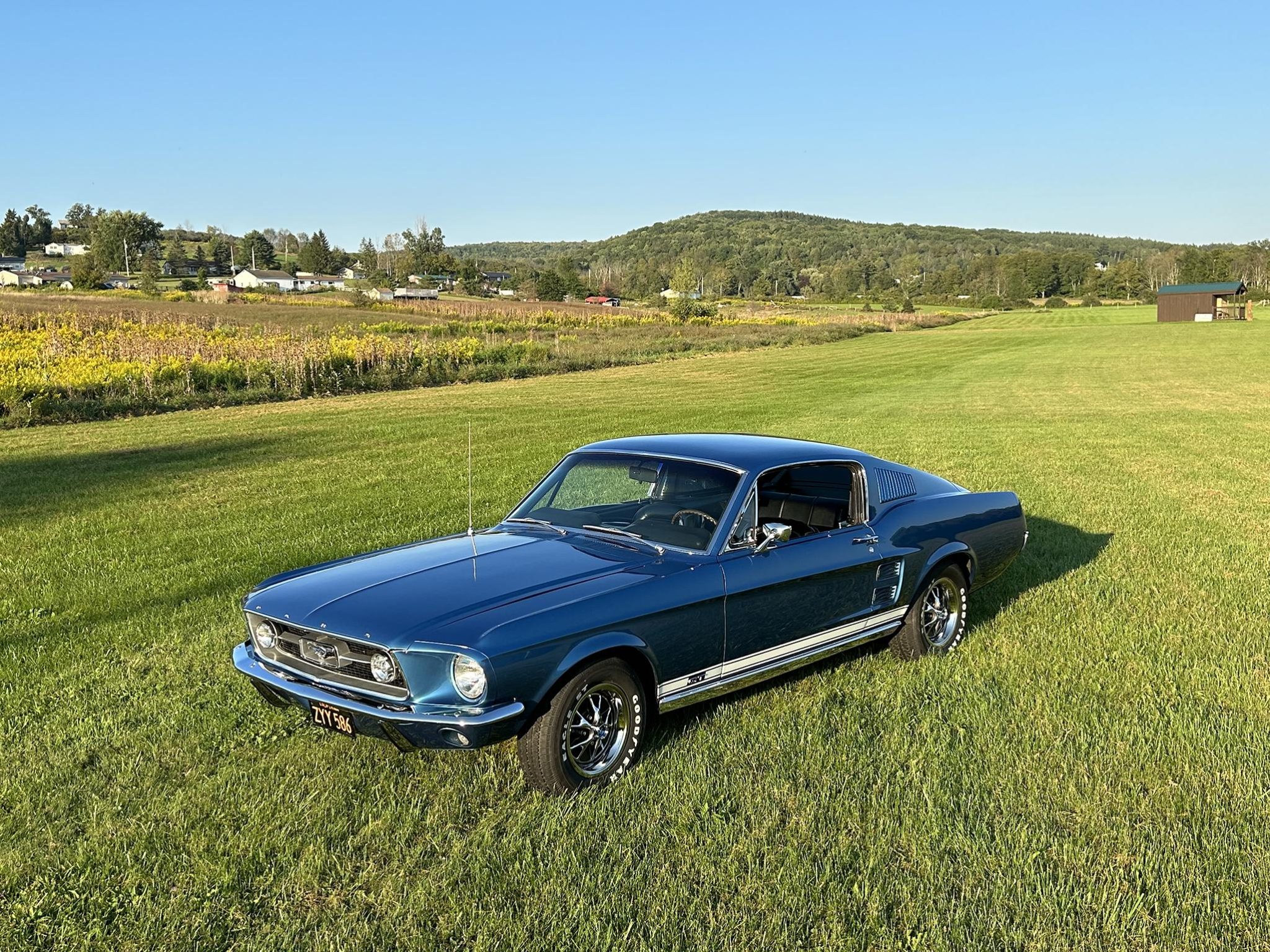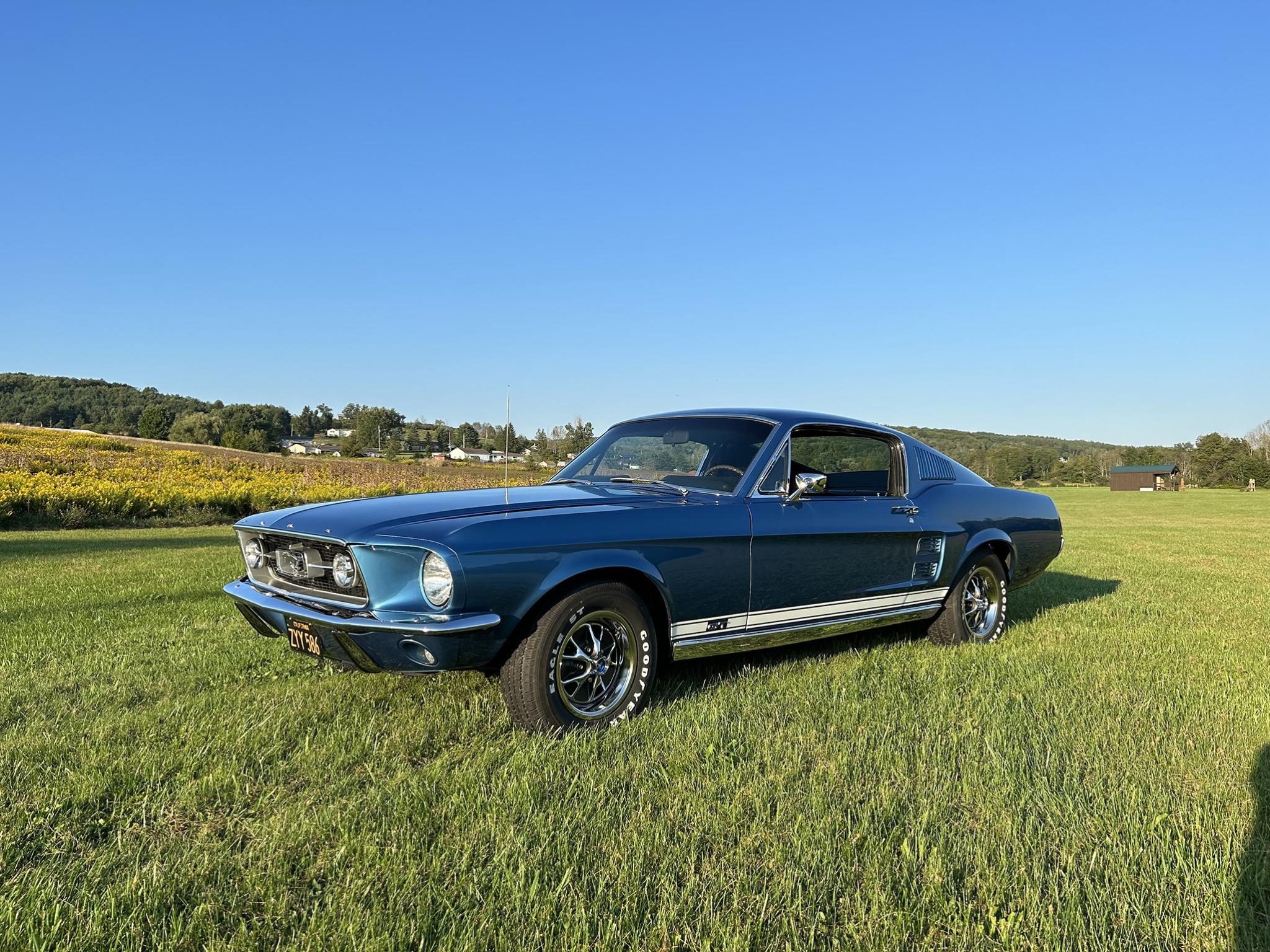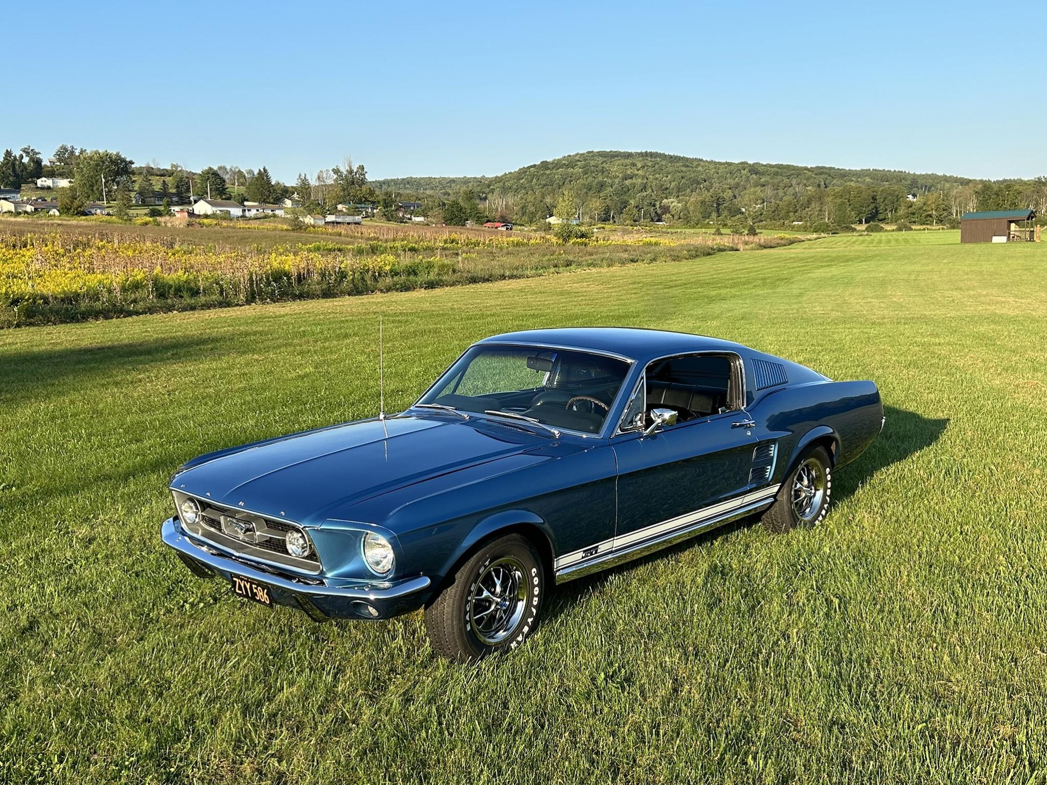 Styled steel 14″ wheels with blue Mustang center logos are mounted with 205/70 Goodyear Eagle ST tires. Braking is handled by power-assisted front discs and rear drums.