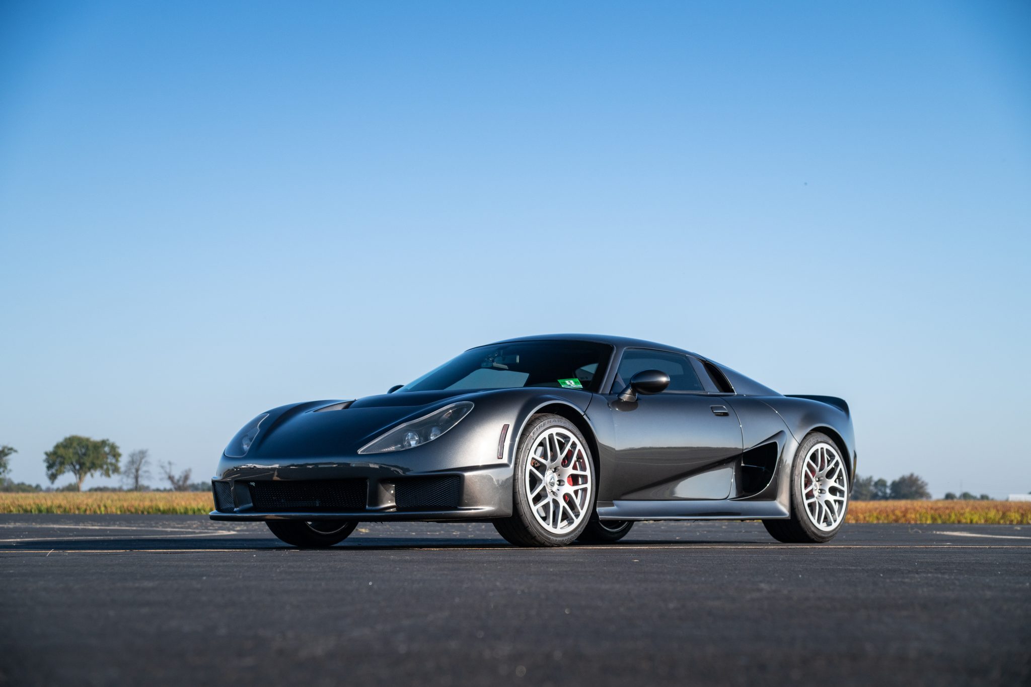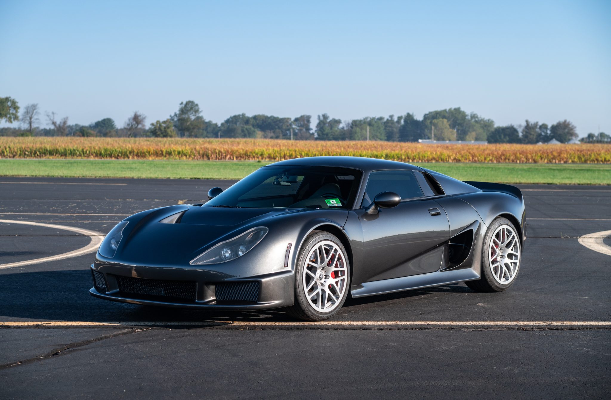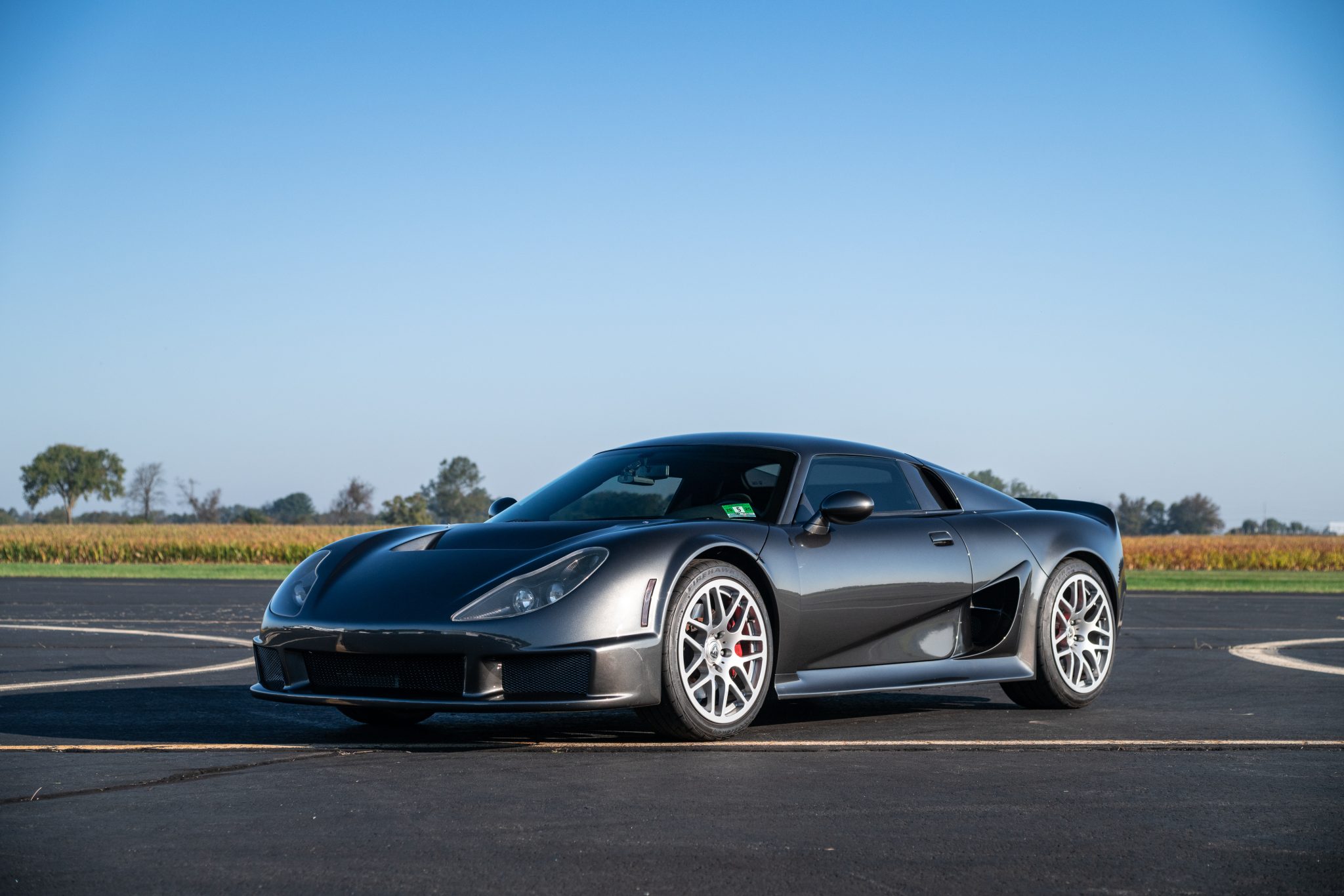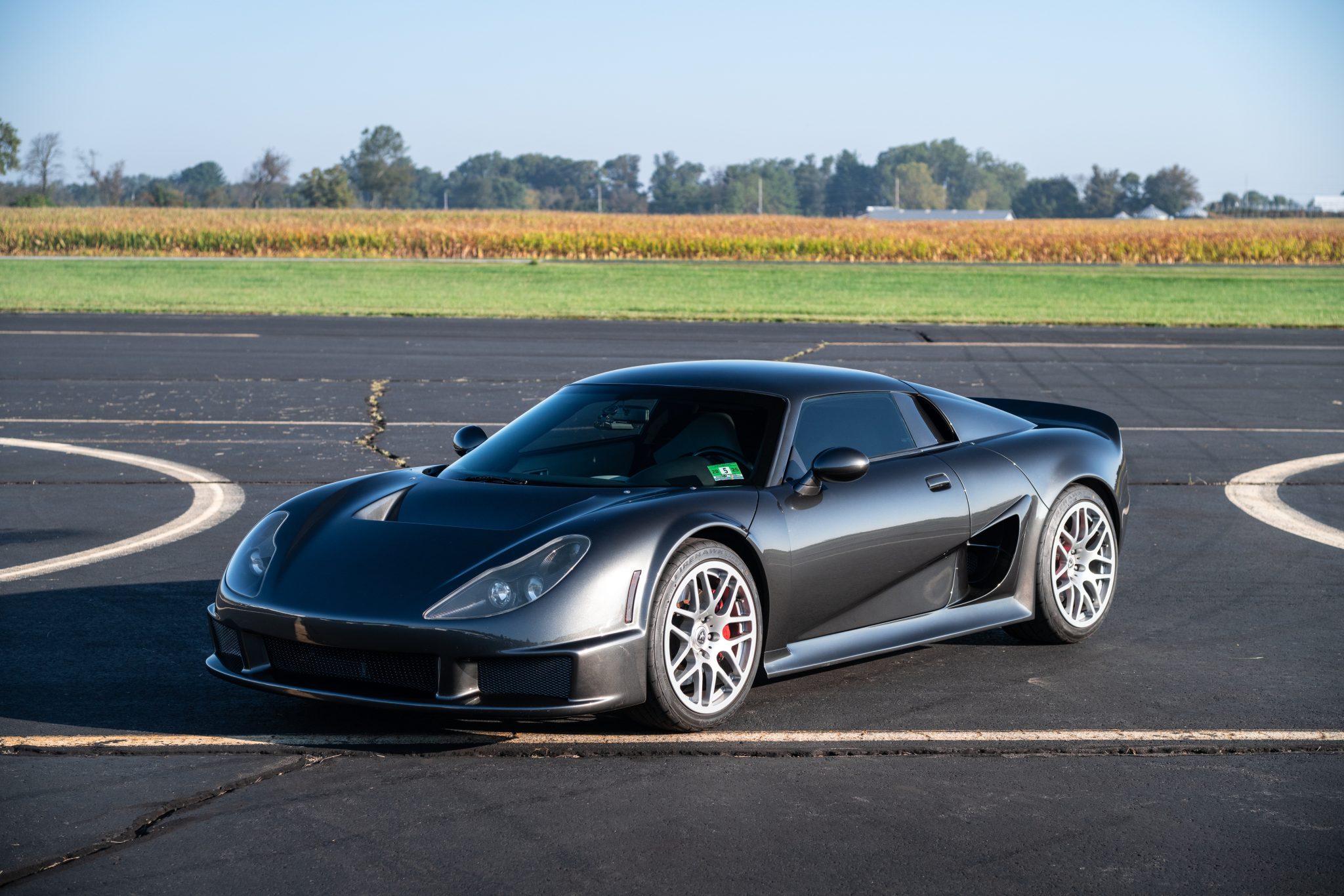 Silver-finished forged 18″ Rossion wheels are mounted with 225/40 front and 275/35 rear Firestone Firehawk Indy 500 tires. Braking is handled by red Rossion-branded calipers over slotted discs at all four corners, and the brake pads and rotors were reportedly replaced in April 2023. The car is equipped with adjustable Koni coilovers.
