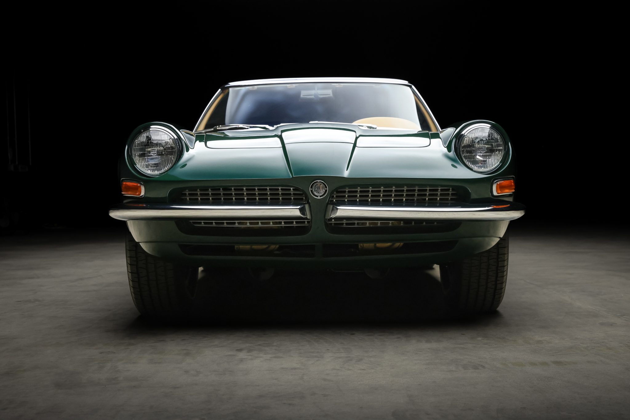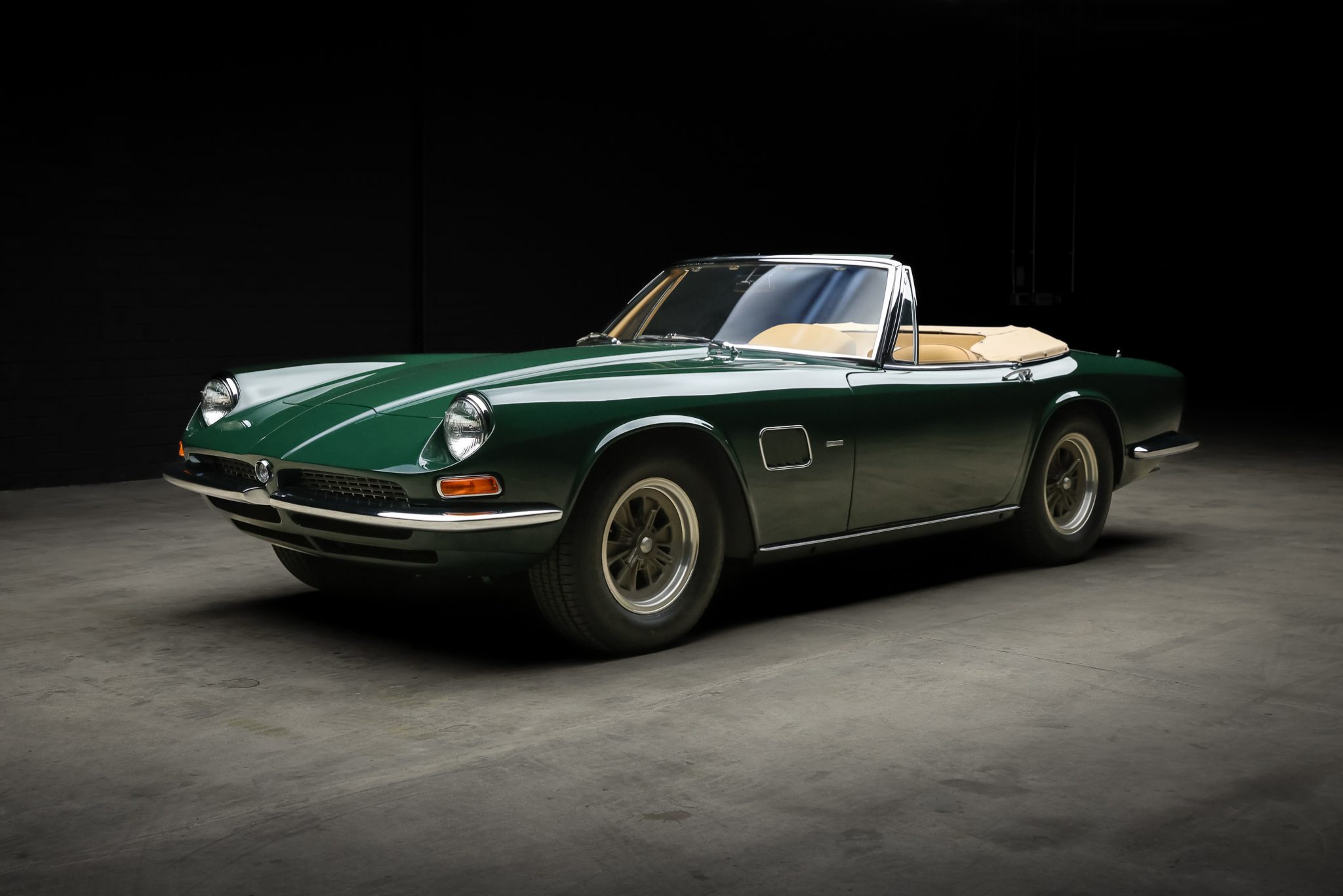 This example is finished in green and is said to have received a repaint during the 1990s refurbishment. Cracks in the finish on the hood are shown up close in the photo gallery below, as is a touched-up area near the driver-side door handle. Features include a split front bumper, louvered fender vents, a tan canvas convertible top, and a blue California vanity tag reading “AC 428.” Tears in the convertible top along the B-pillar area of the top frame were repaired under current ownership.
