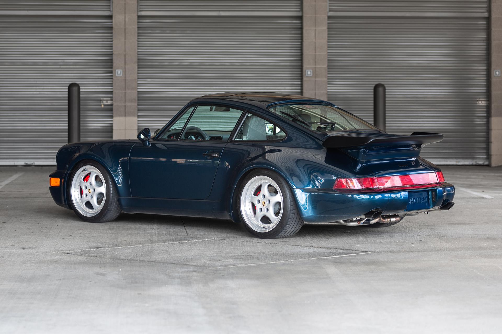 Multi-piece 18″ Speedline wheels were reportedly installed under previous ownership and are mounted with 225/40 front and 265/35 rear Michelin Pilot Sport tires that show date codes from 2021. The Turbo features uprated brakes compared to the standard 964, including larger calipers and cross-drilled rotors at each corner. The suspension was fitted with Bilstein PSS10 coilovers in 2021, at which time the front control arms were overhauled. Additional modifications included installing an ERP front bump-steer kit and rear spring plate set. A set of removed 17″ Cup 1 wheels are included and pictured in the gallery below.