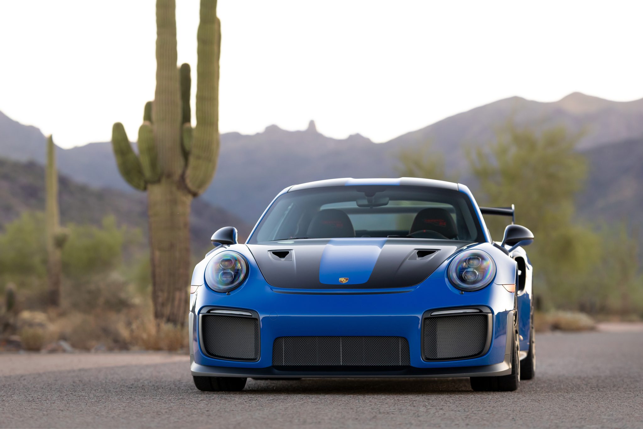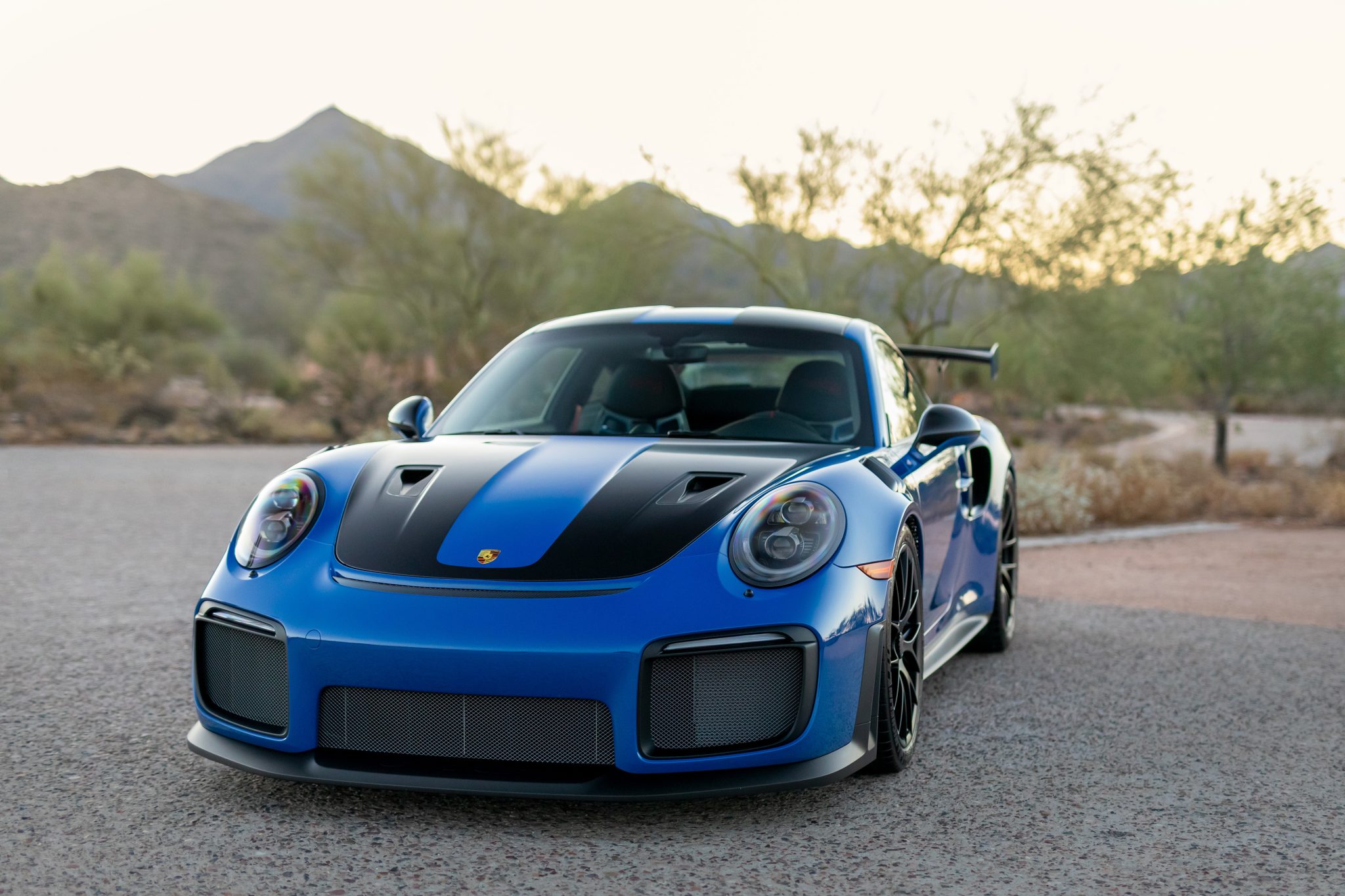 Staggered-diameter 20″ and 21″ magnesium wheels feature center-locking hubs and are mounted with Michelin Pilot Sport Cup 2 tires measuring 265/35 up front and 325/30 at the rear. The car is equipped with adjustable dampers and anti-roll bars, Porsche Active Suspension Management, Porsche Stability Management, and rear-axle steering. Porsche Ceramic Composite Brakes were standard on the GT2 RS and feature yellow calipers and cross-drilled rotors. The optional front-axle lift raises the car on command to help prevent scraping.