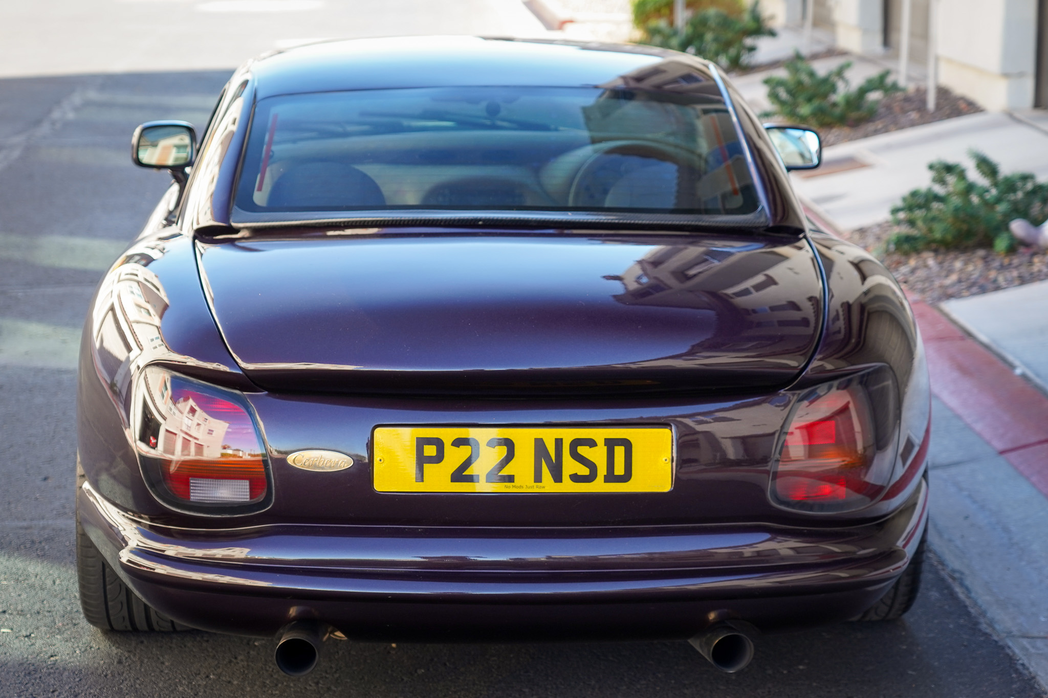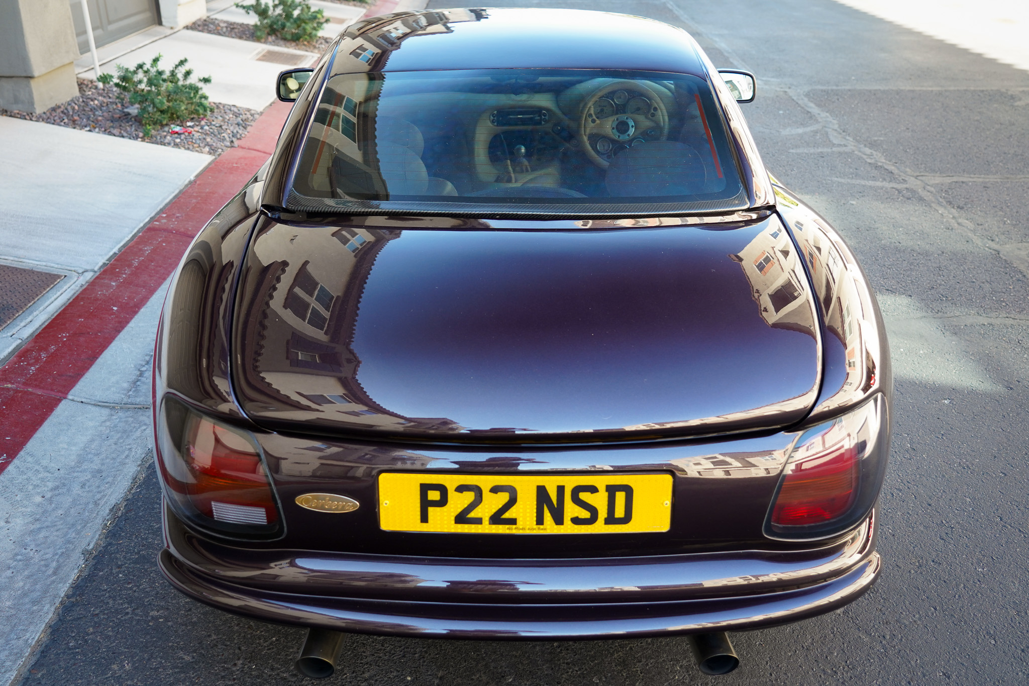 Silver-finished 18″ wheels feature TVR center caps and are mounted with 225/35 front and 255/35 rear Hankook Ventus V12 Evo2 tires. The fully independent suspension has been modified with GAZ coilovers, and the Cerbera was not offered with an anti-lock brake system or traction control. The hand brake cable was reportedly replaced in April 2022.