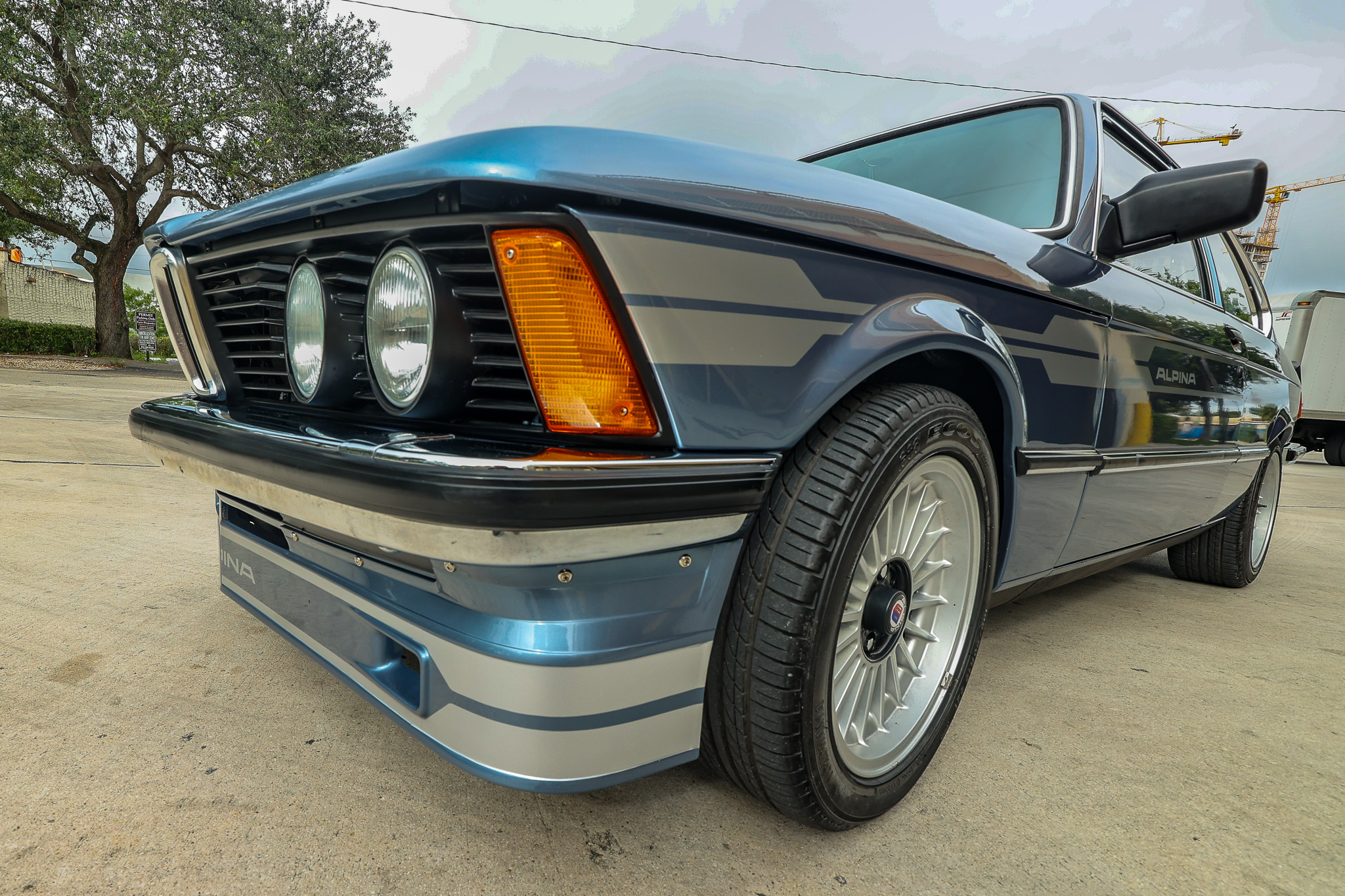 Silver 15″ Alpina wheels are mounted with 195/50 Yokohama DNA ECOS ES300 tires, and a steel spare is stowed in the trunk. Braking is provided by drilled and slotted rotors at each corner with four-piston Wilwood calipers up front. The car rides on Bilstein shocks and is fitted with adjustable front and rear sway bars.