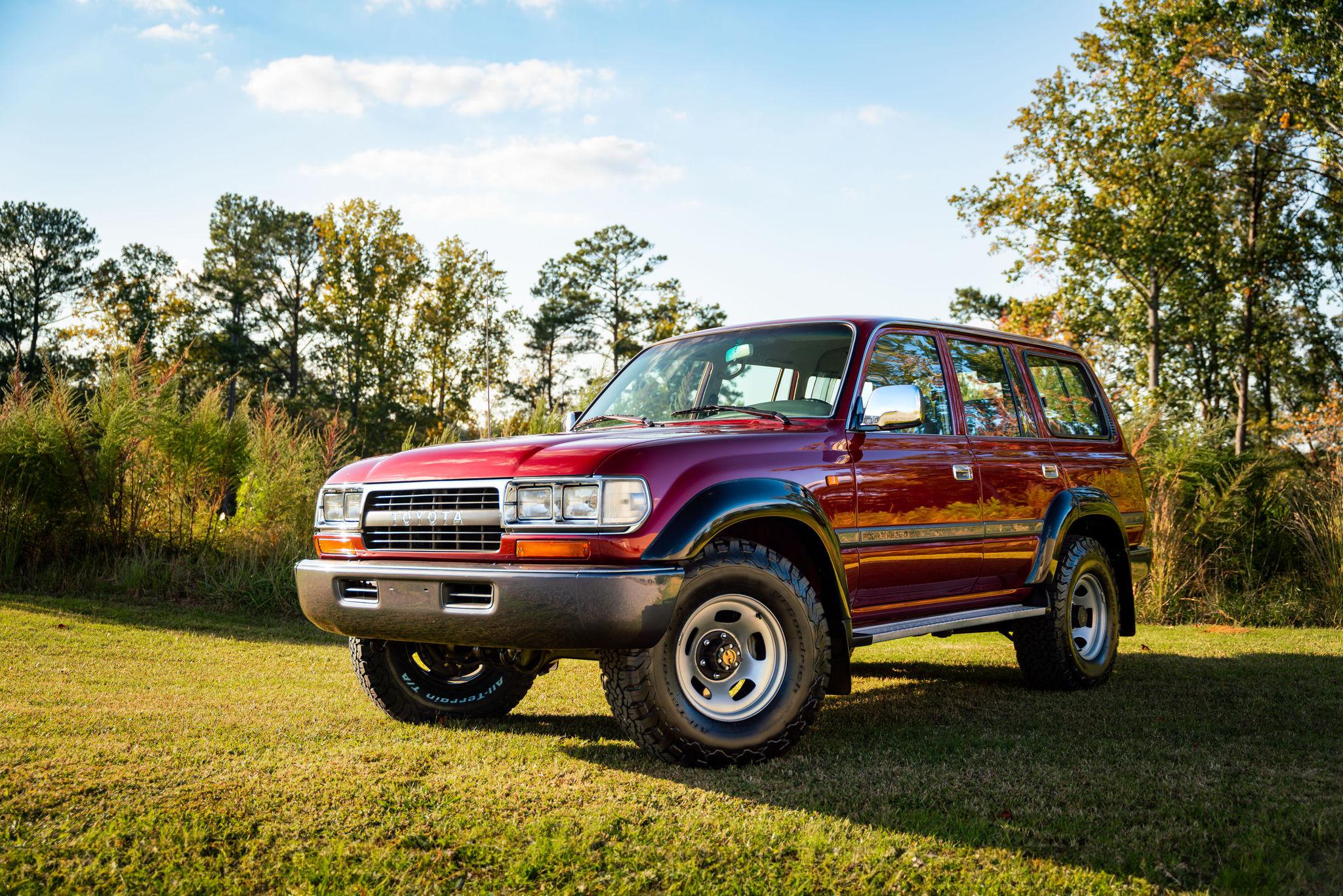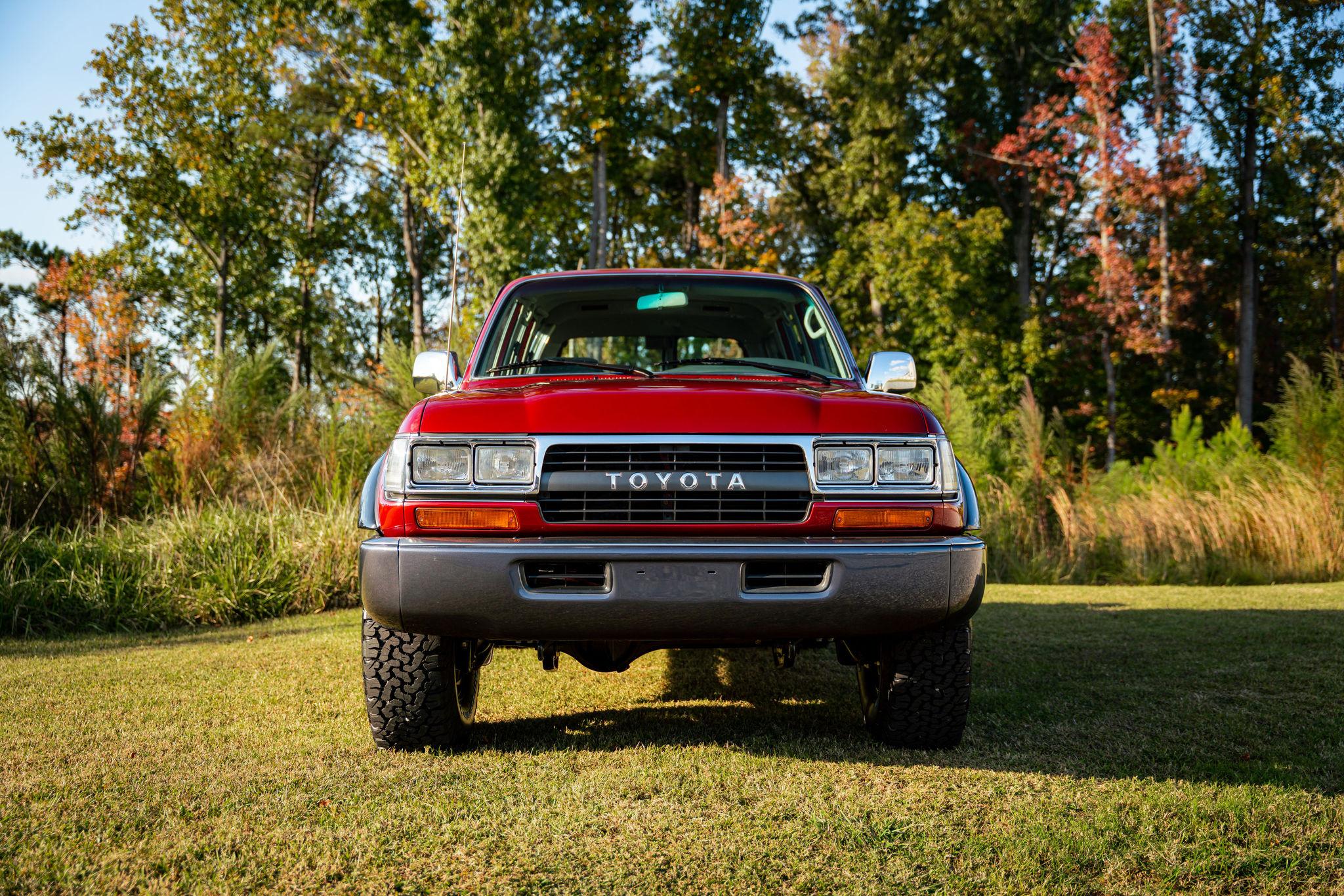 Silver-finished 16″ steel wheels were reportedly mounted with 285/75 BFGoodrich All-Terrain T/A KO2 tires, and a matching spare is affixed to a swing-away carrier at the rear. The truck is equipped with manually locking front hubs. Stopping power is provided by front disc brakes and rear drum brakes, which were reportedly serviced in 2023.