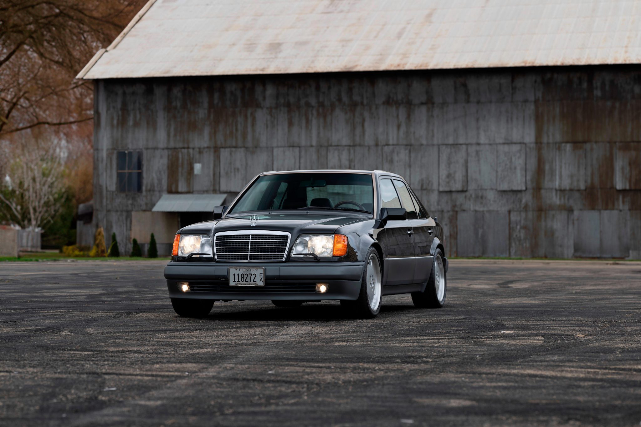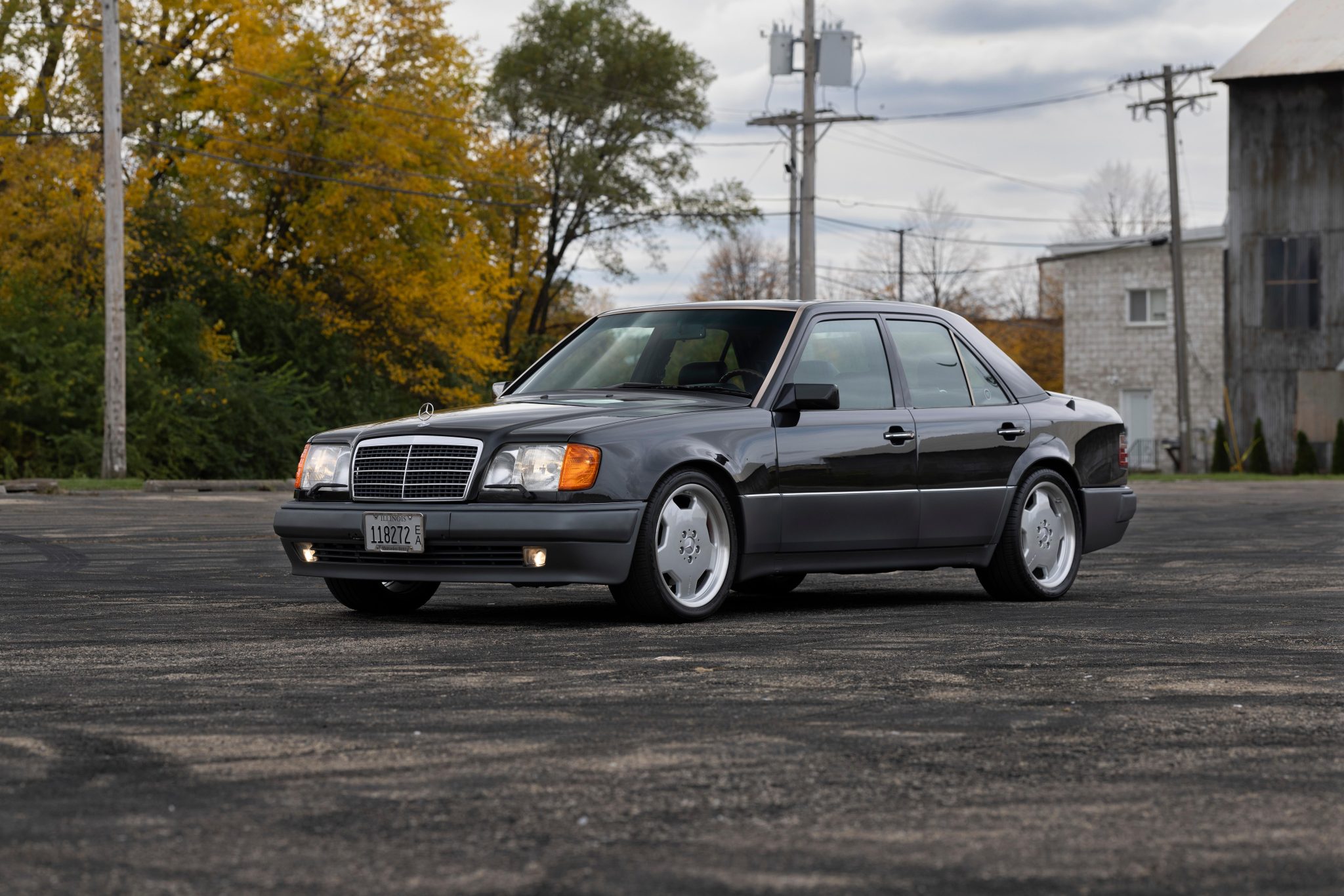 The 18” AMG Monoblock wheels wear 245/40 front and 275/35 rear Toyo Proxes Sport tires that were mounted in 2023. The car is equipped with Automatic Slip Control (ASR) as well as a self-leveling rear suspension. The E500 featured a wider track and lower ride height when compared with other W124 models, and it shared its front disc brakes with the contemporary R129 SL. The tie rod assembly was replaced in 2023, and work completed in preparation for the sale is said to have included replacement of the drag link, brake hoses, and brake fluid.