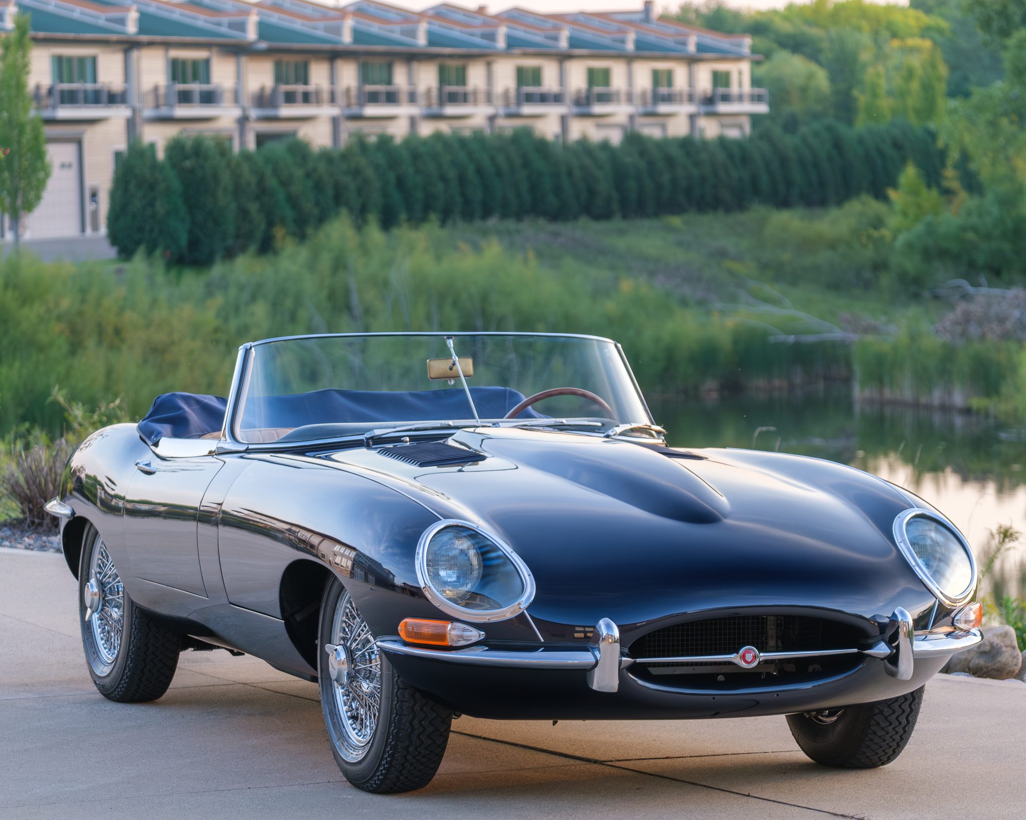 Chrome-finished 15″ wire wheels are secured via two-eared knock-offs and are wrapped in 185-width Michelin XVS tires, as is a matching spare housed in the trunk. Stopping is handled by four-wheel disc brakes with the rear units situated inboard.