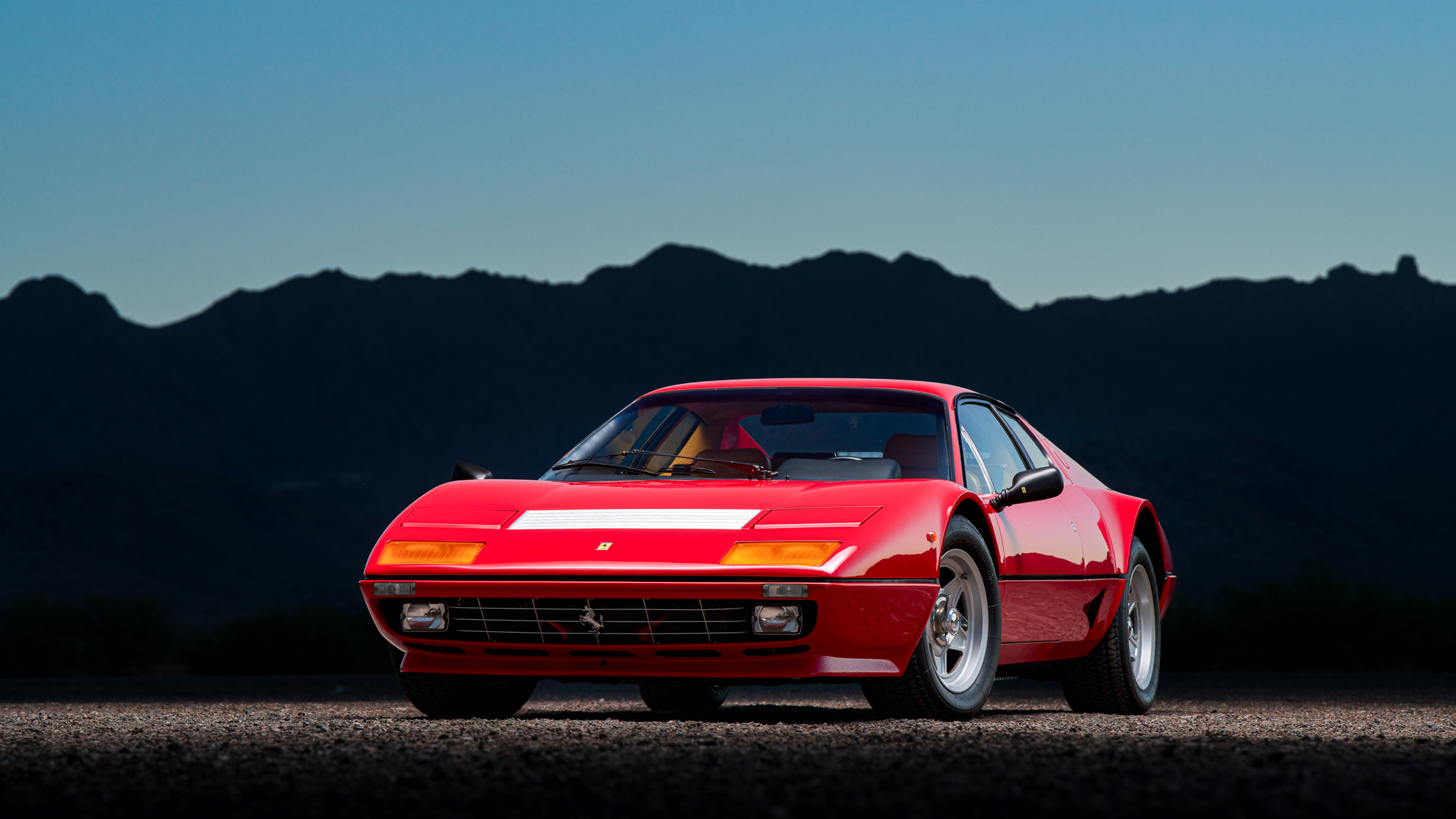 This example is finished in Rosso Corsa with matching lower panels and features pop-up headlights, fog lights, a front spoiler, NACA side ducts, and quad exhaust outlets.