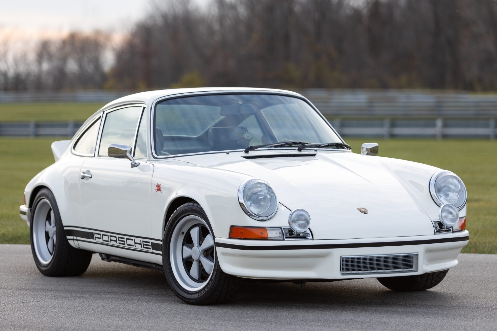The staggered-width 16″ Fuchs wheels are mounted with Toyo Proxes R1R tires measuring 225/45 up front and 245/45 out back. The car rides on Bilstein shocks and is said to be equipped with Sway-A-Way torsion bars, TRG adjustable sway bars, and Elephant Racing rear swingarm bushings. Stopping power is provided by power-assisted four-wheel disc brakes with ventilated rotors.